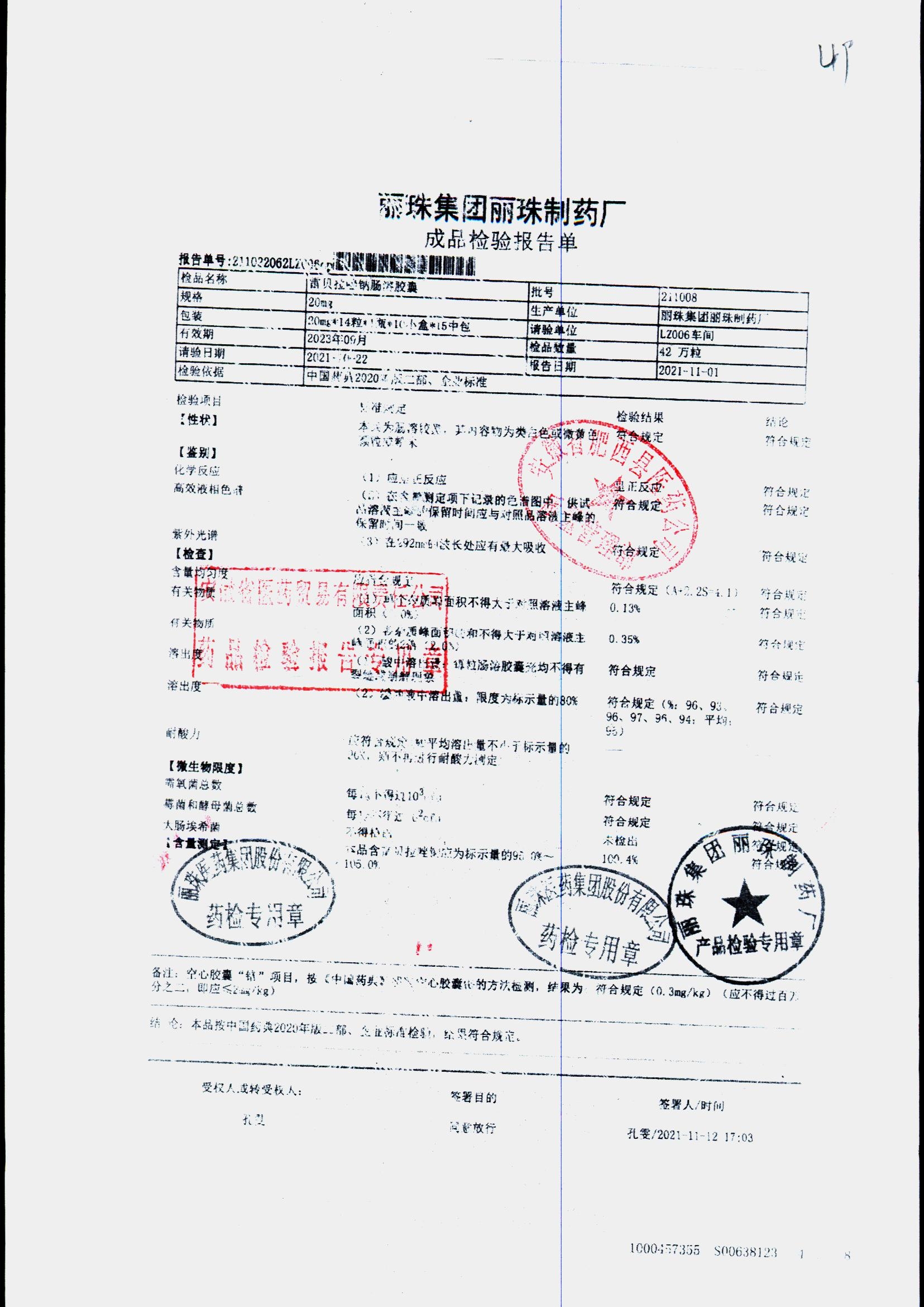 雷贝拉唑钠肠溶胶囊 | 20mg*14粒 | 211008 | 查看详情 |