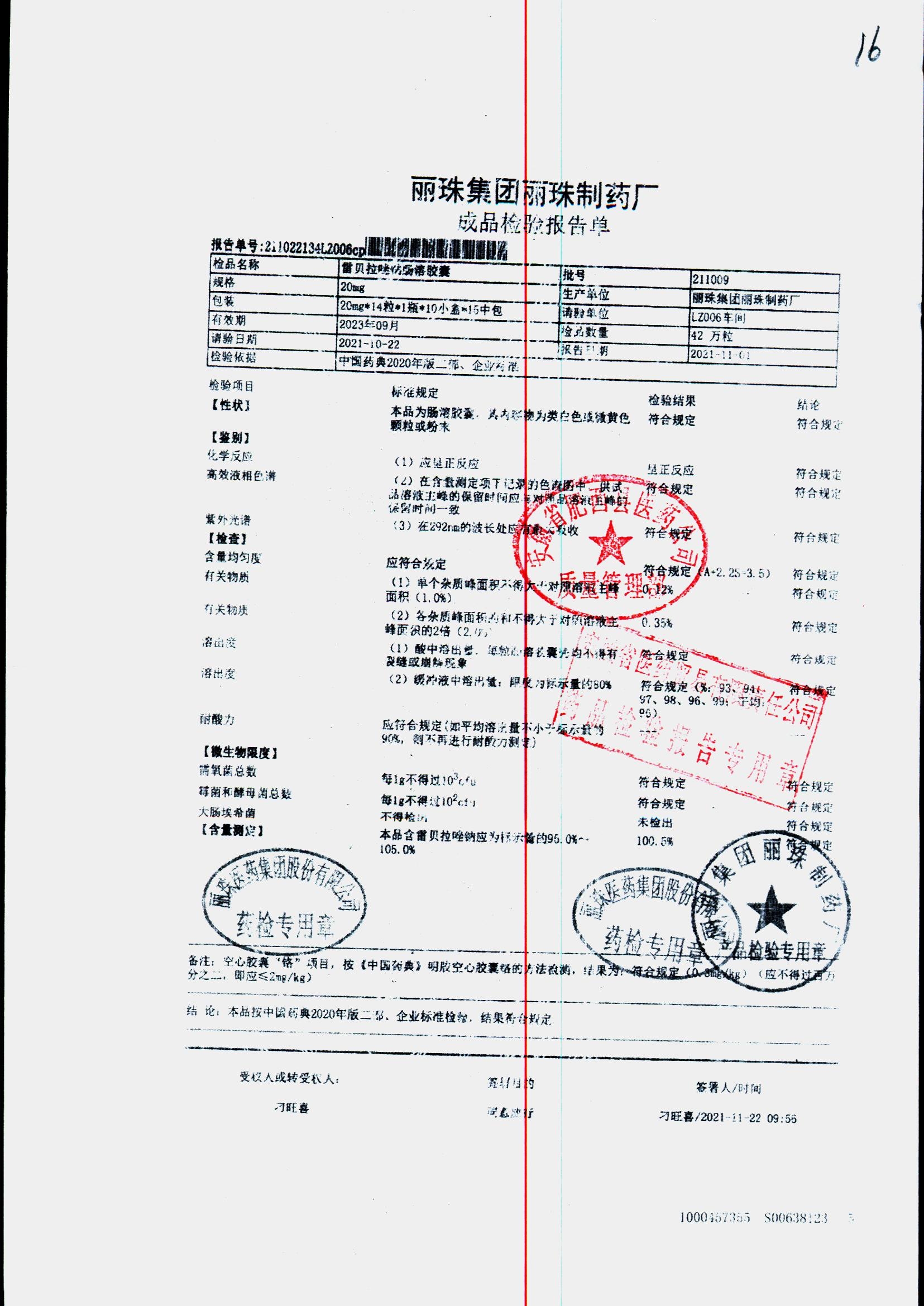 雷贝拉唑钠肠溶胶囊 | 20mg*14粒 | 211009 | 查看详情 |