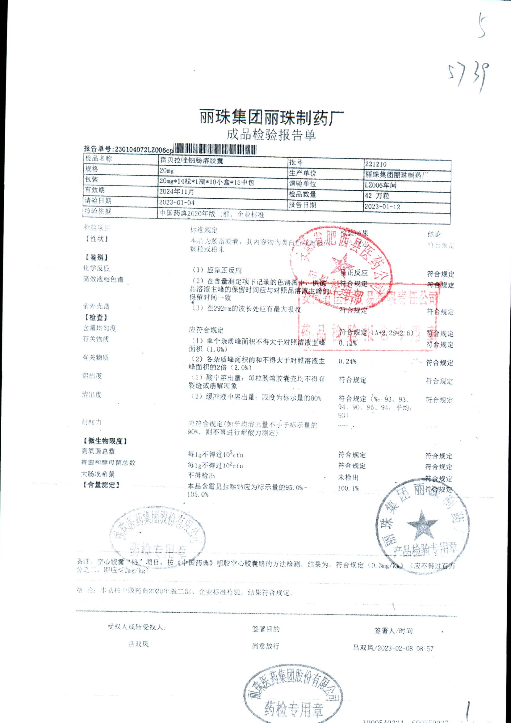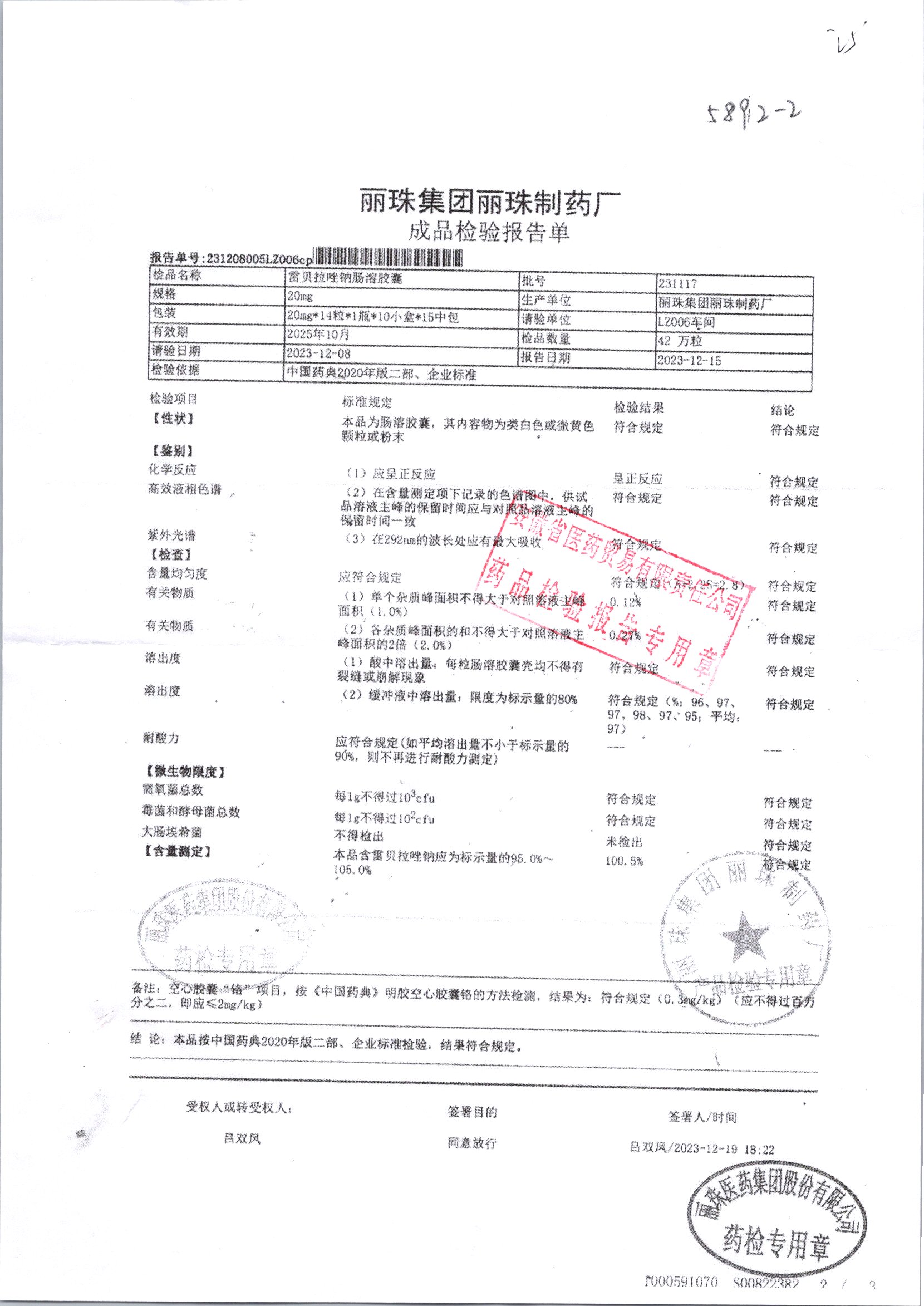 雷贝拉唑钠肠溶胶囊 | 20mg*14粒 | 240204 | 查看详情 |
