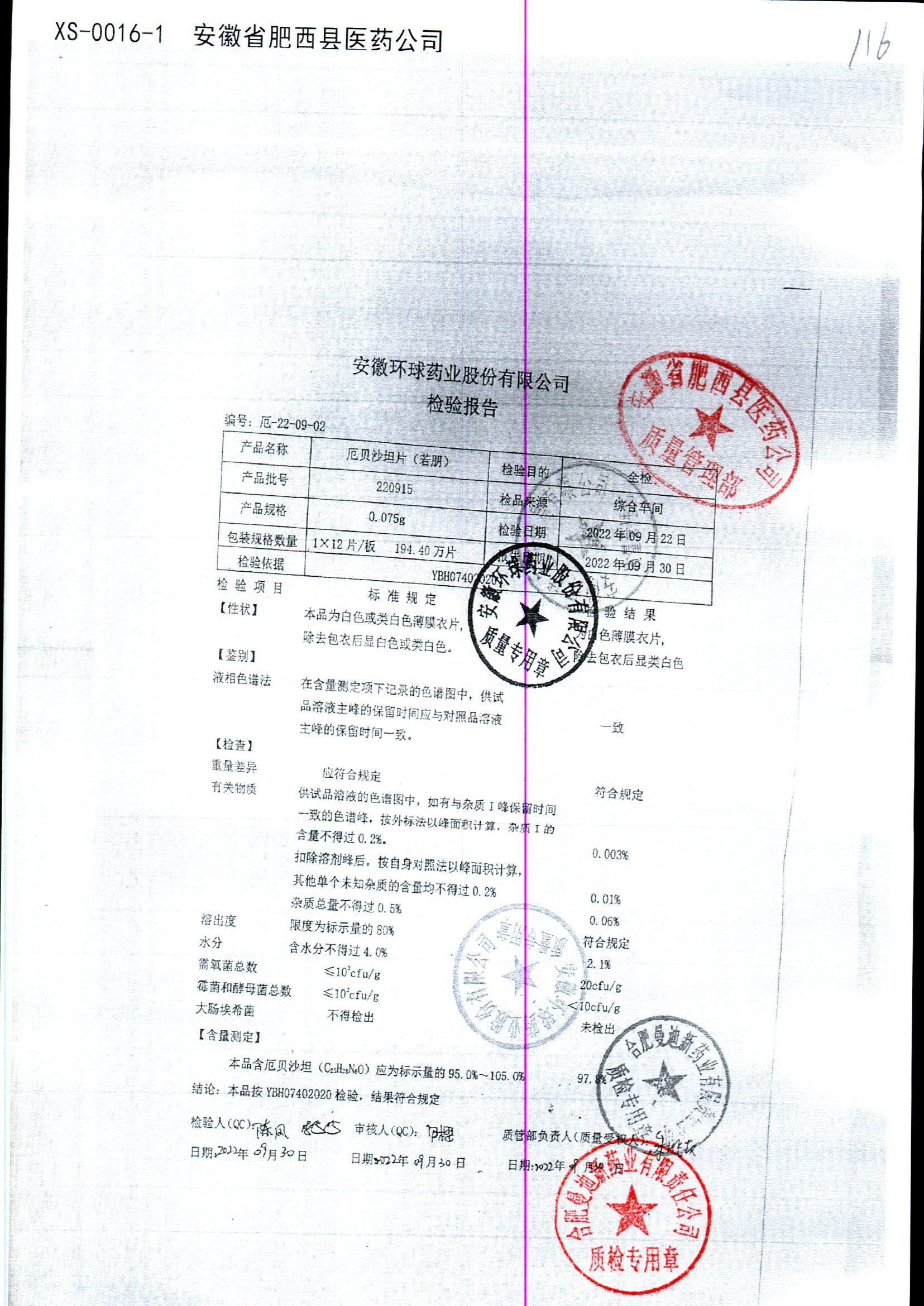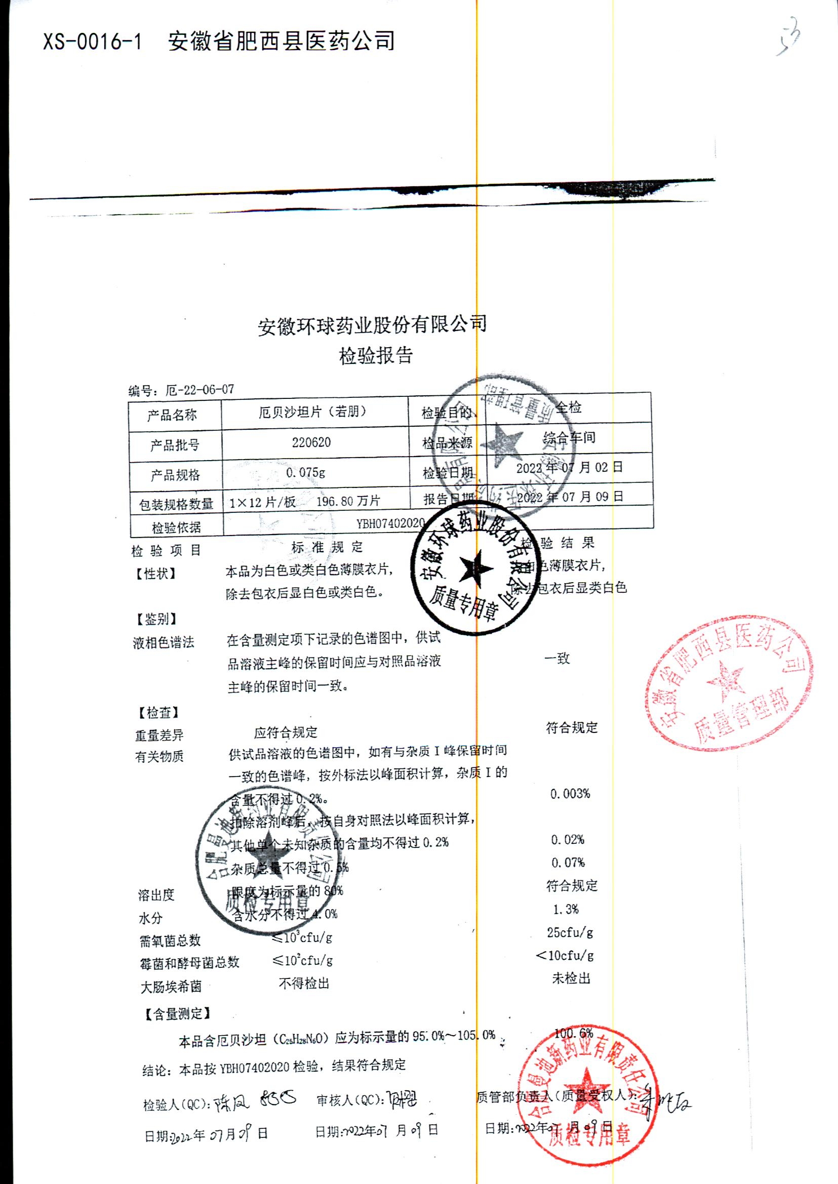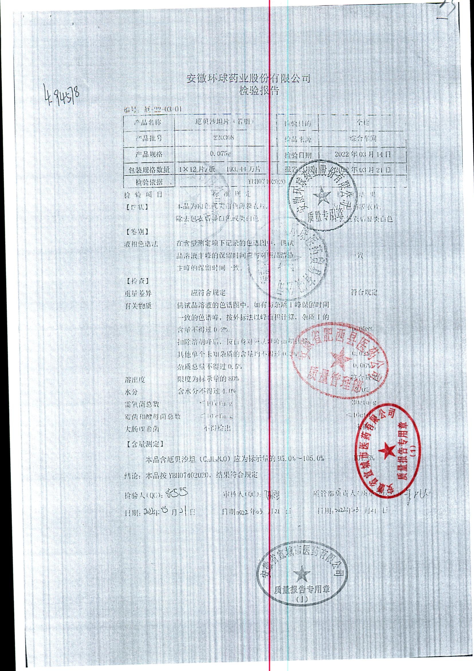 厄贝沙坦片 | 0.075g | 220308 | 查看详情 |