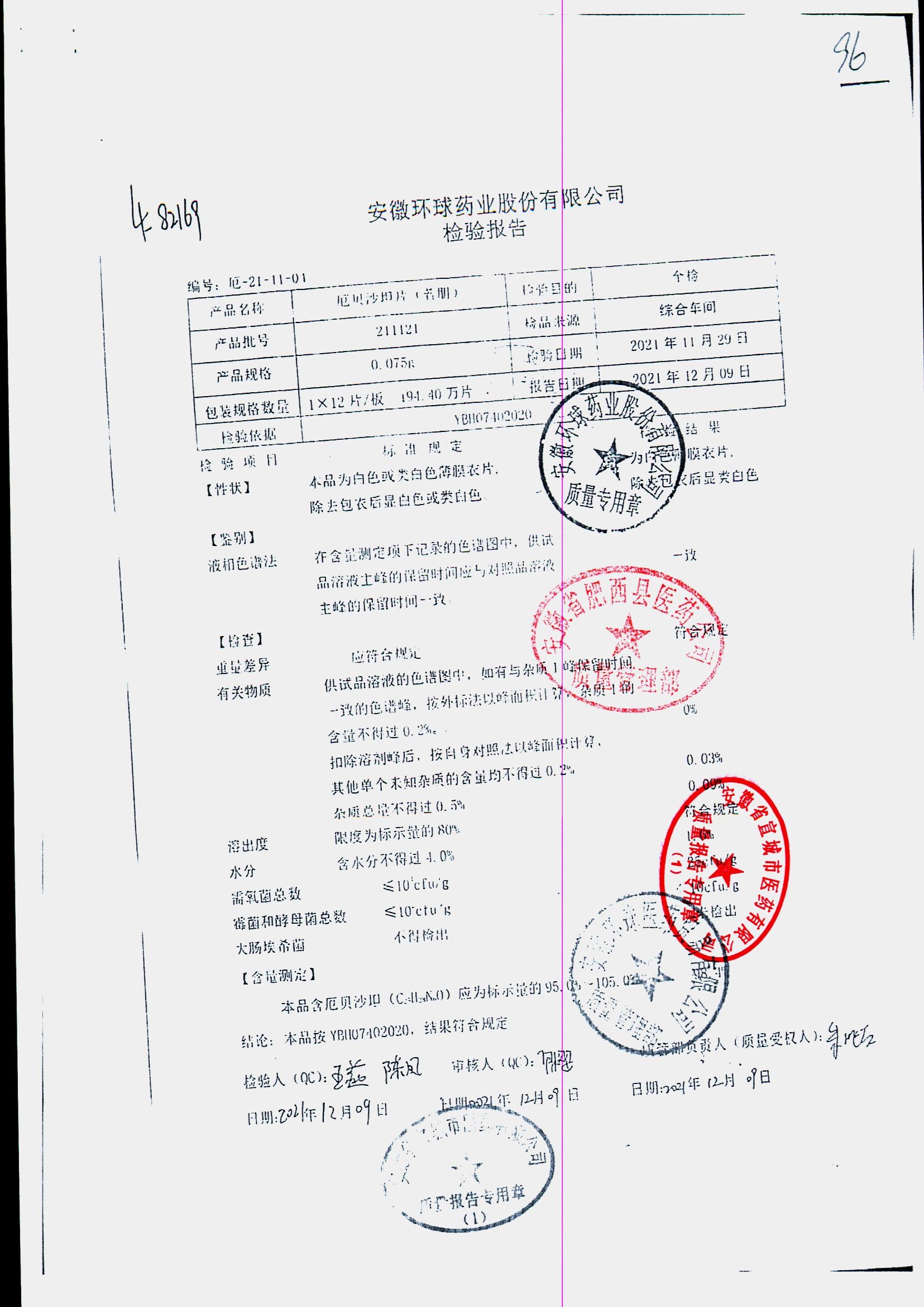 厄贝沙坦片 | 0.075g | 211211 | 查看详情 |