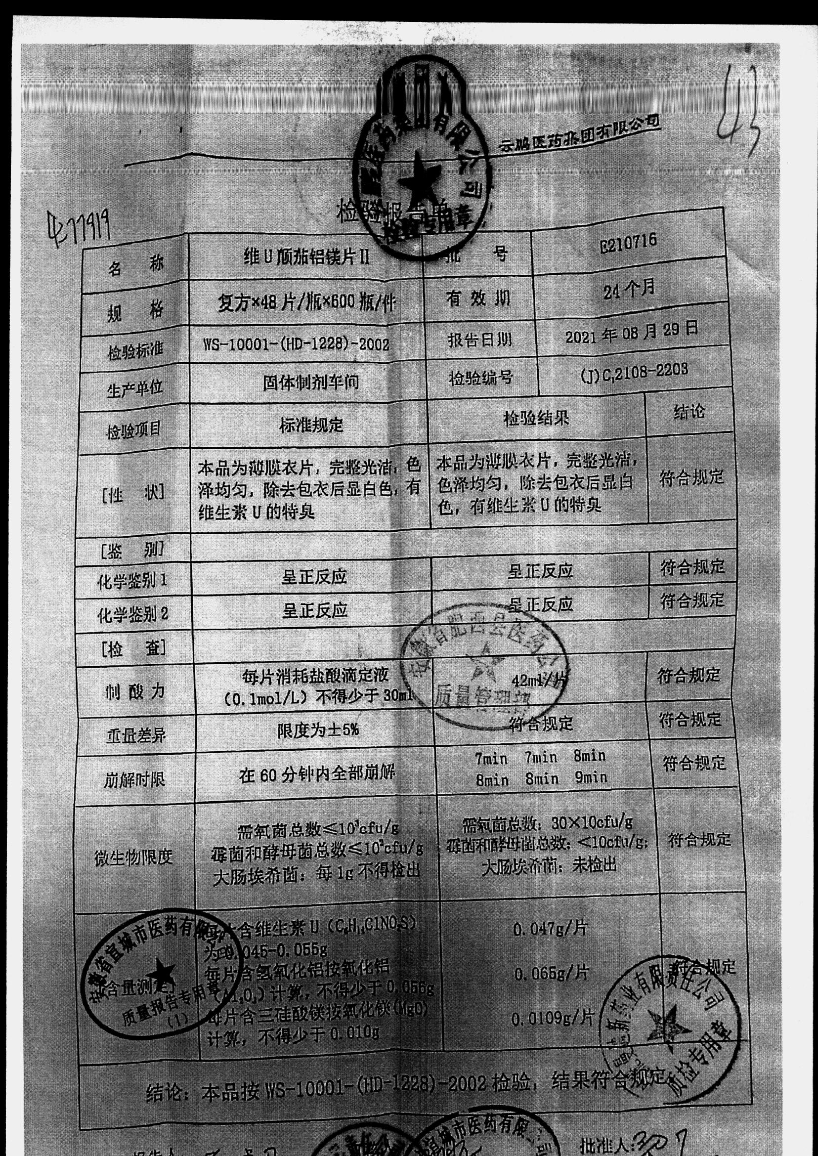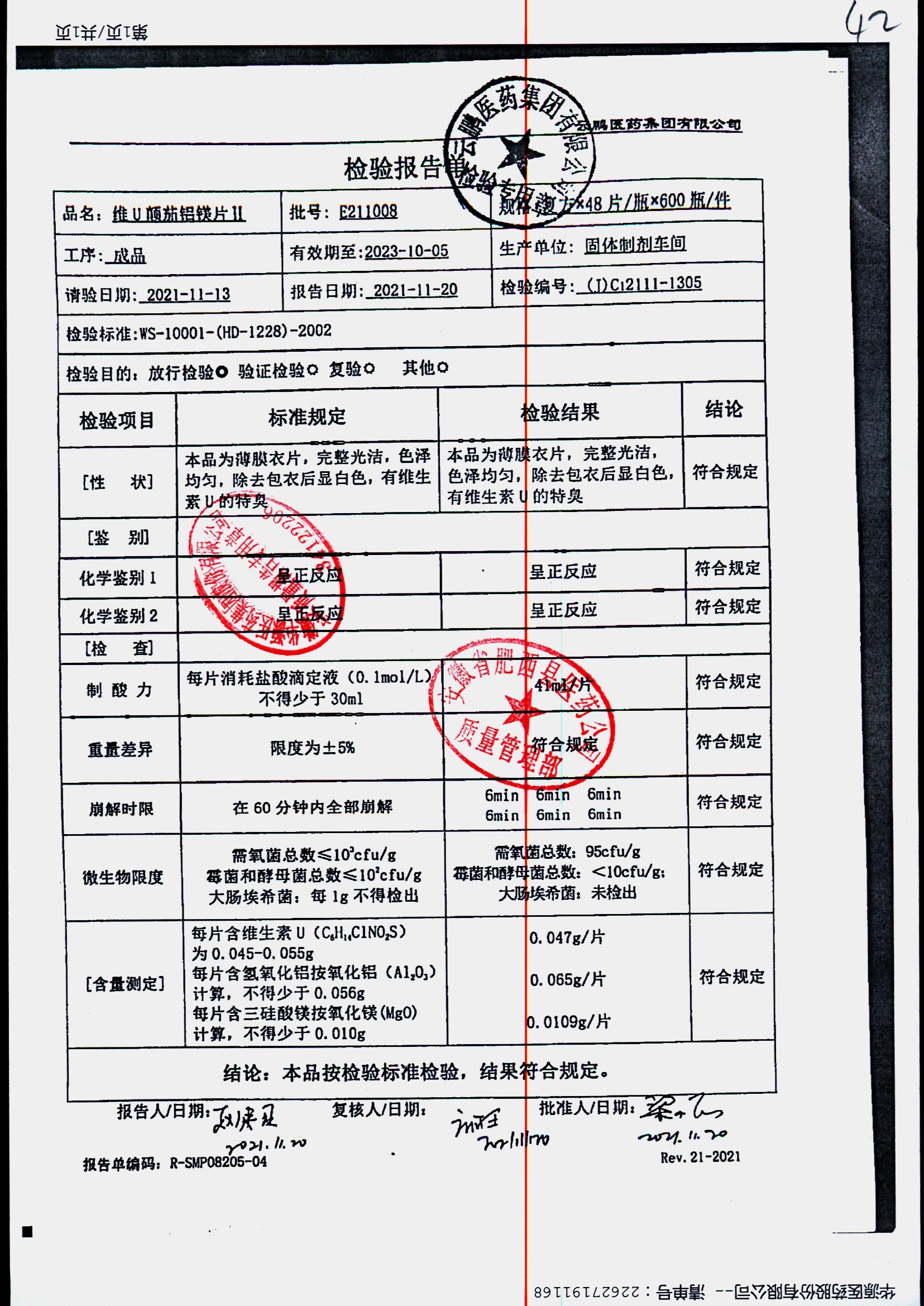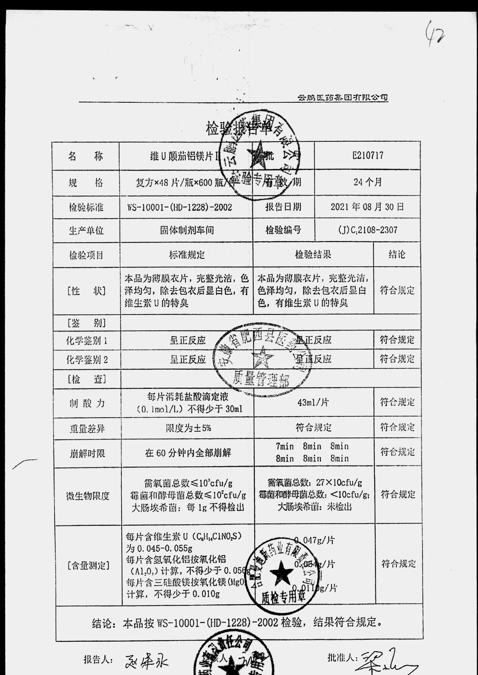 药检报告