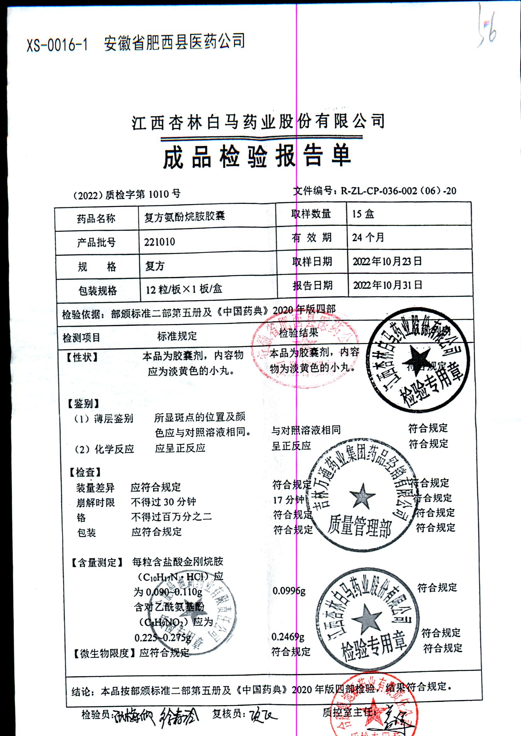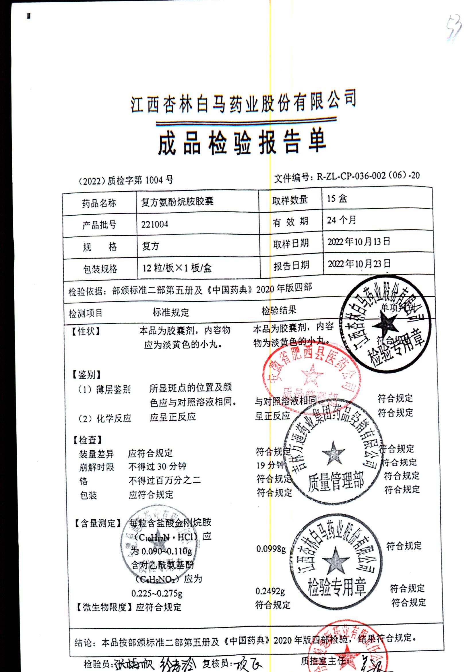 药检报告