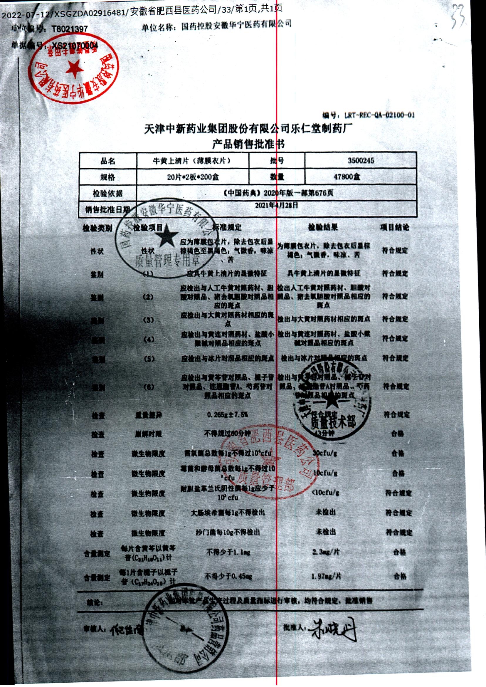牛黄上清片