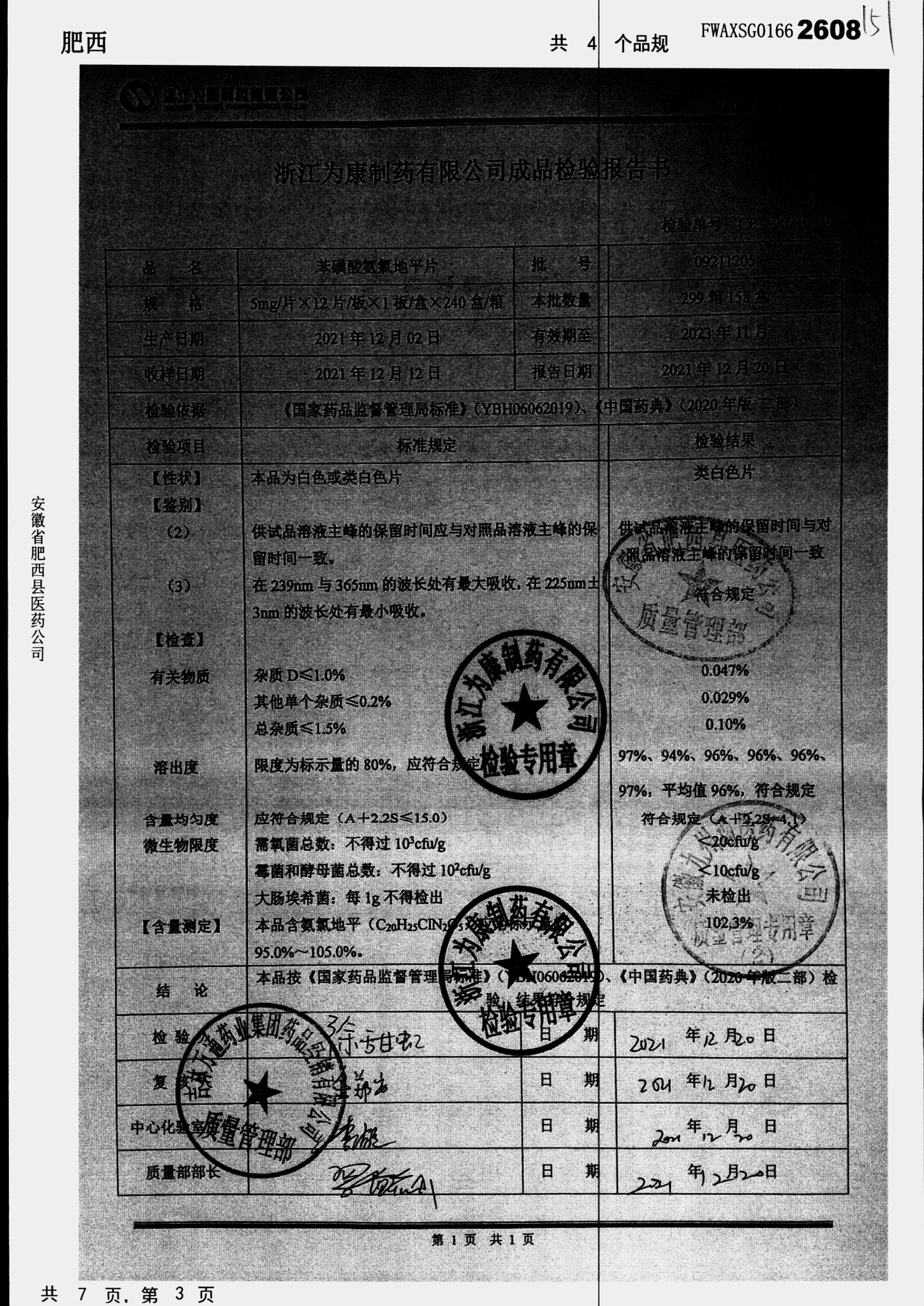 名称 | 规格 | 批号 | 药检报告 |