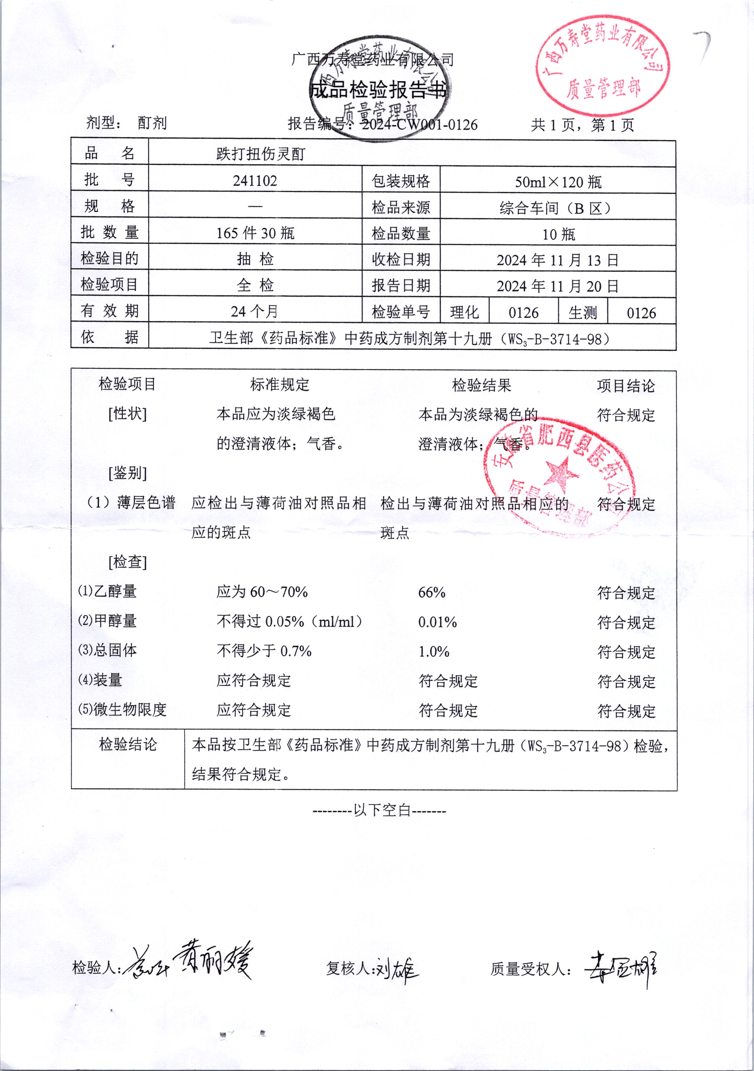 跌打扭伤灵酊 | 50ml | 241102 | 查看详情 |