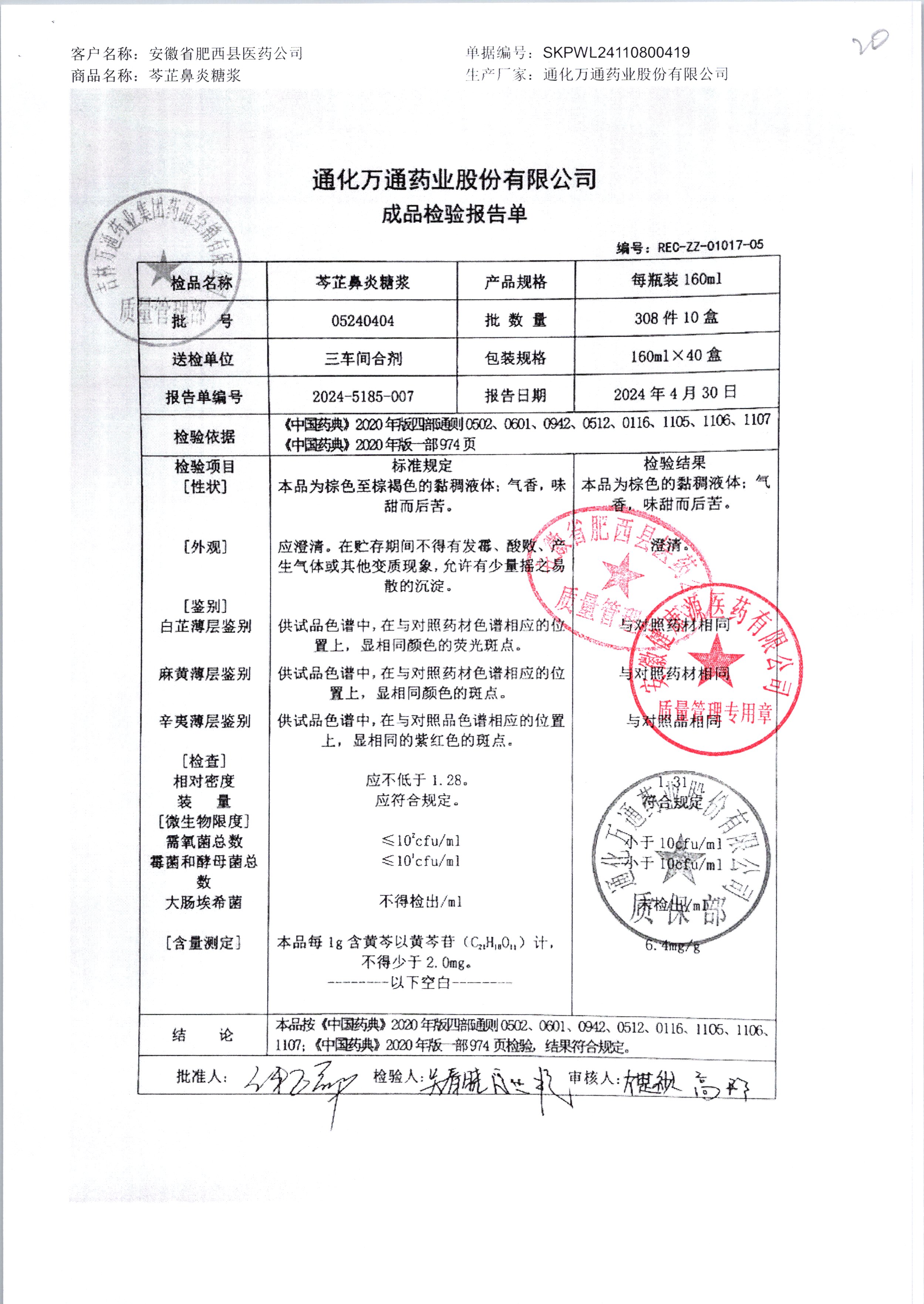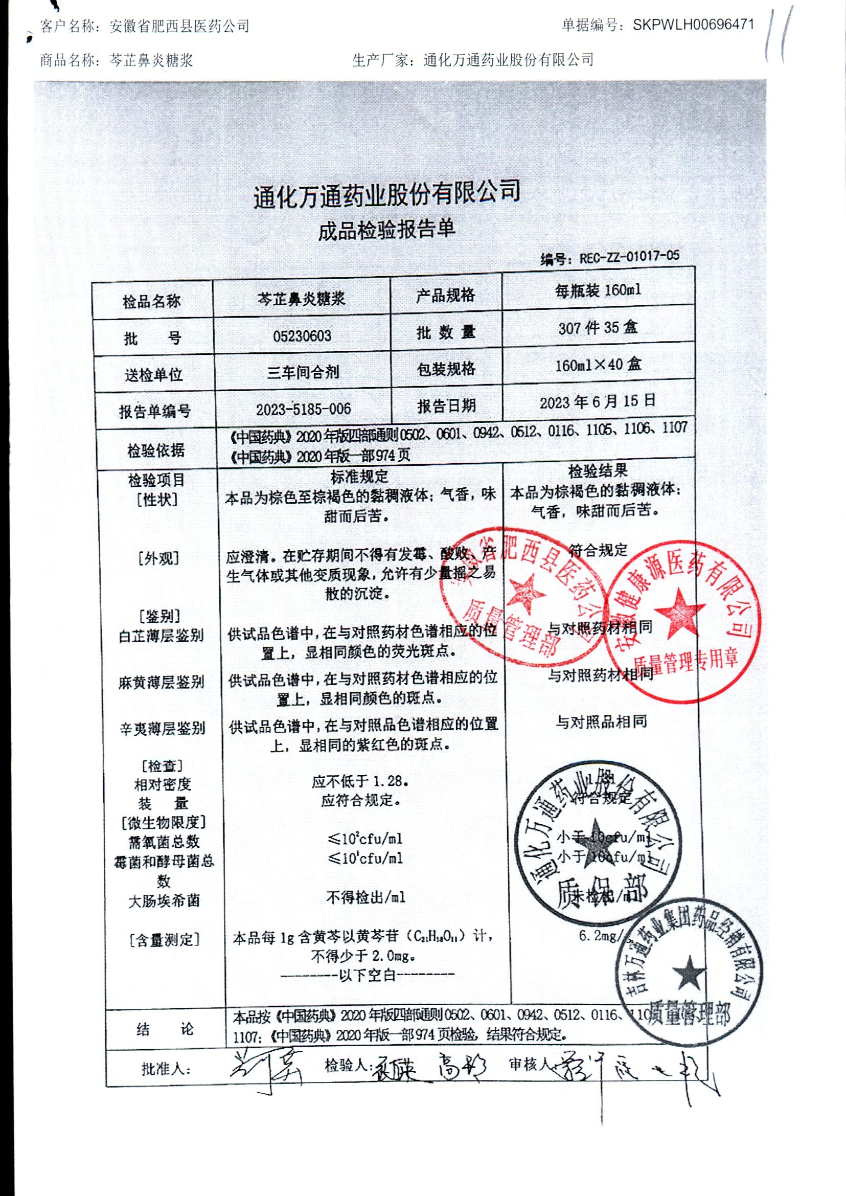 芩芷鼻炎糖浆 | 160ml | 05240404 | 查看详情 |