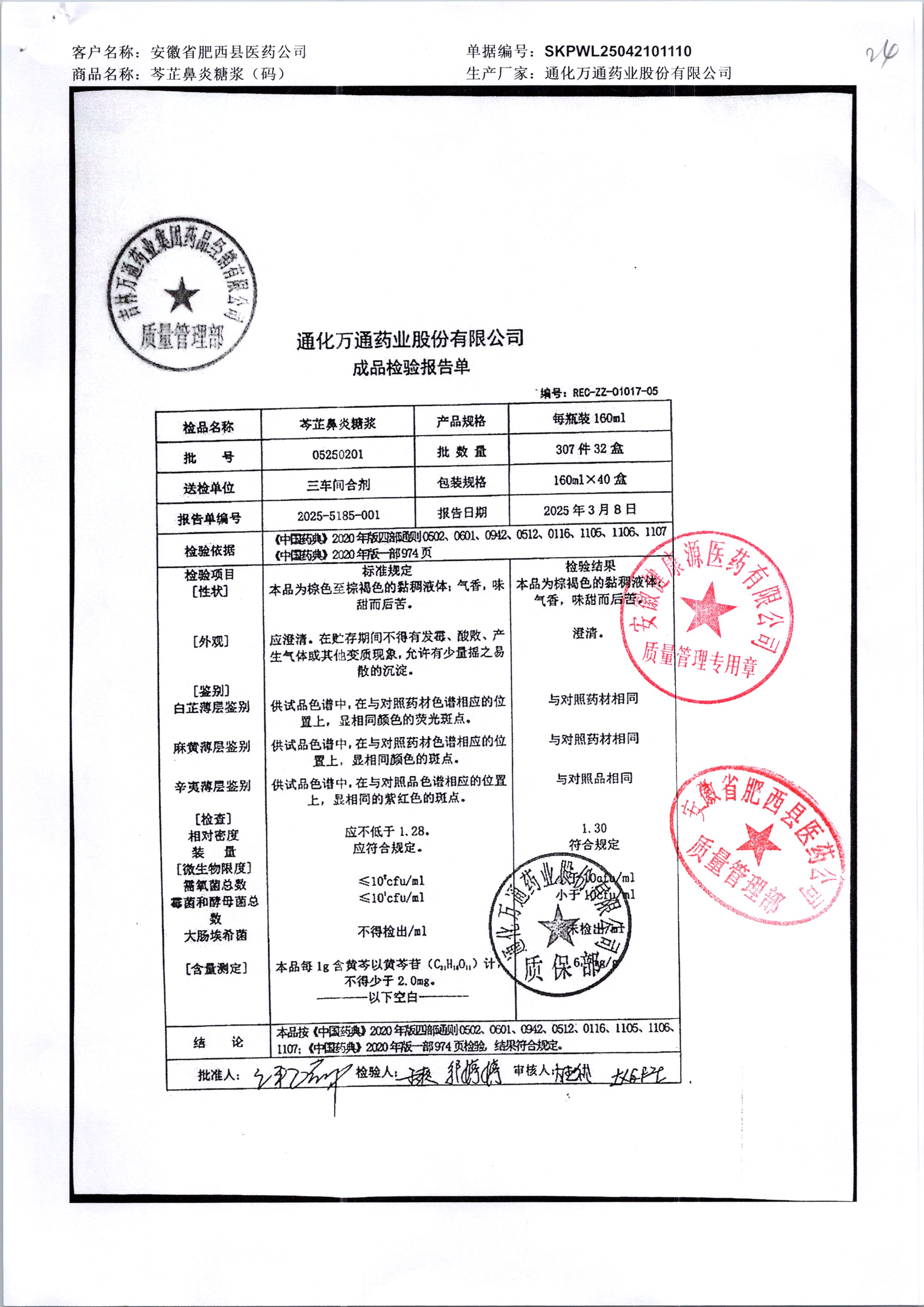 芩芷鼻炎糖浆 | 160ml | 05250201 | 查看详情 |