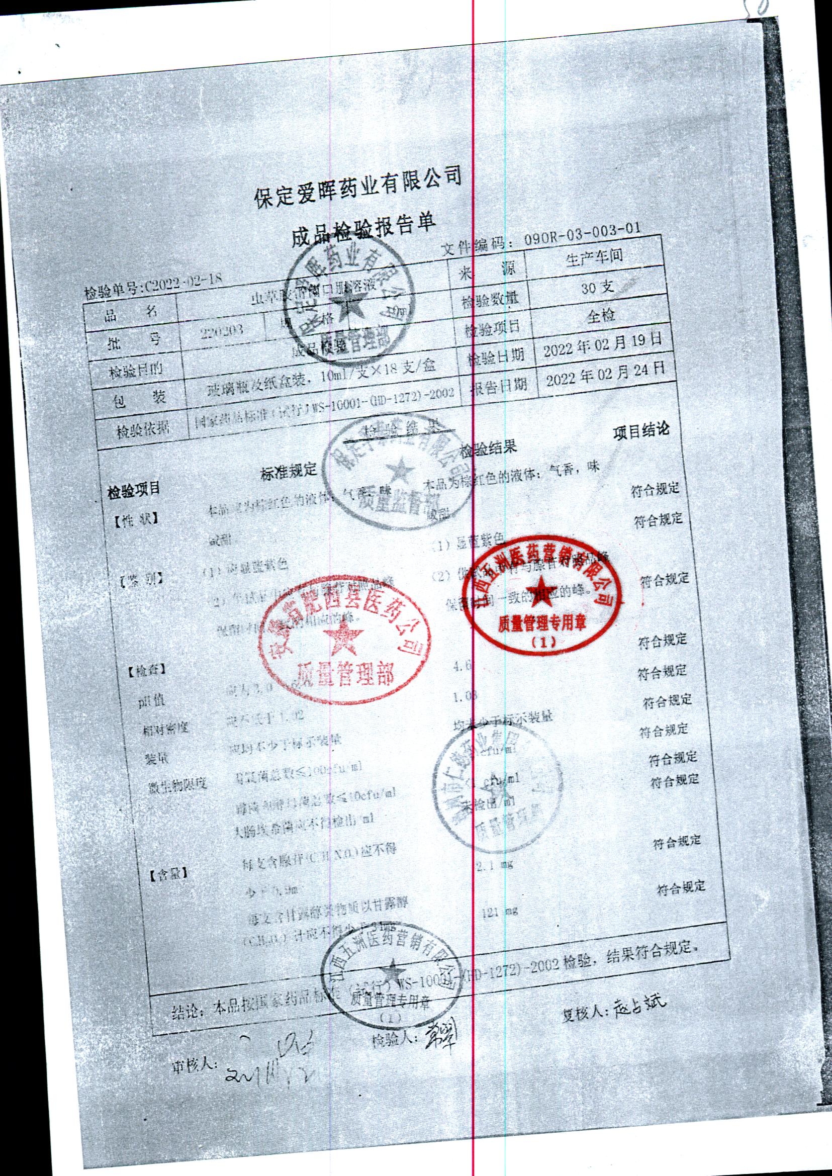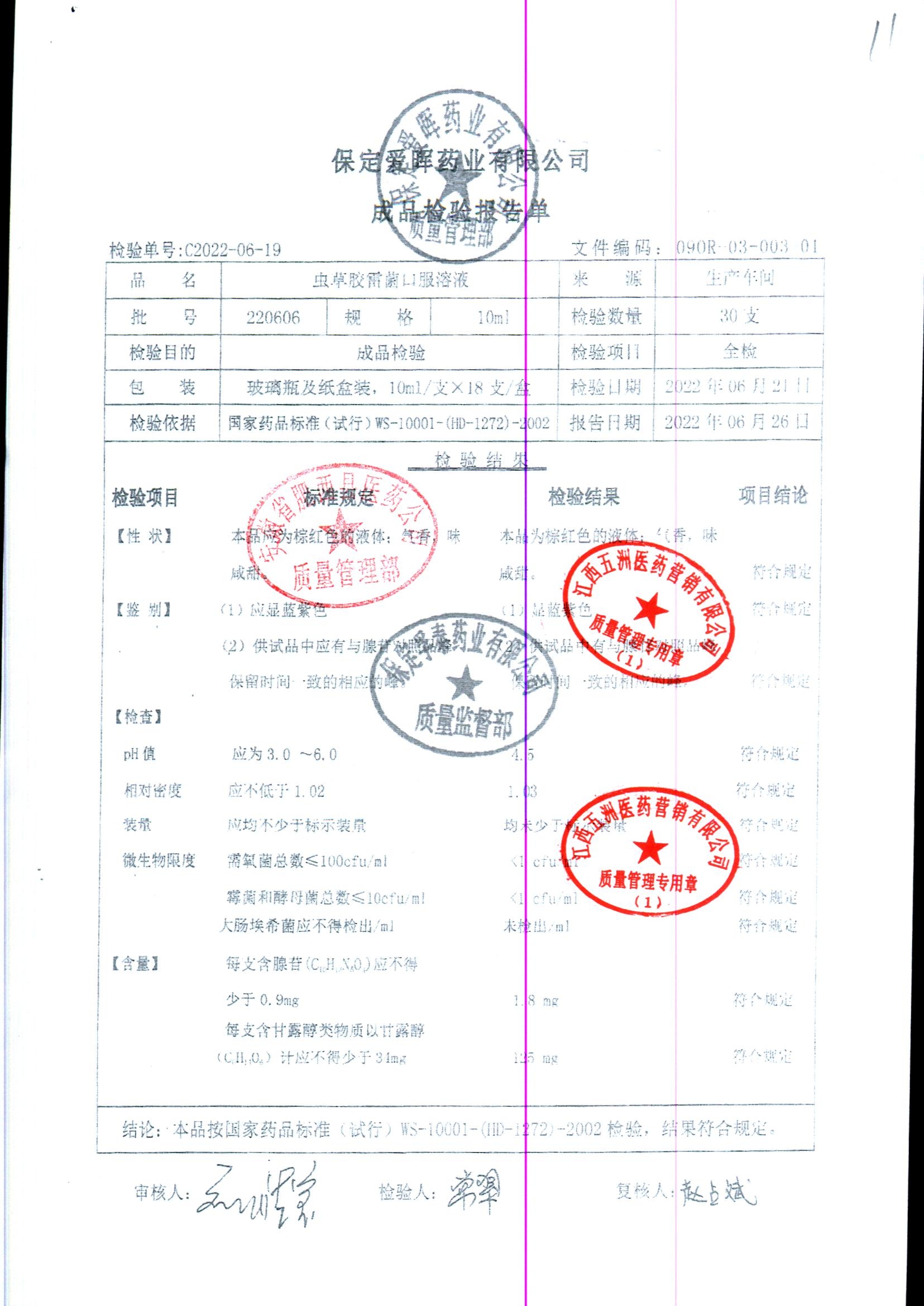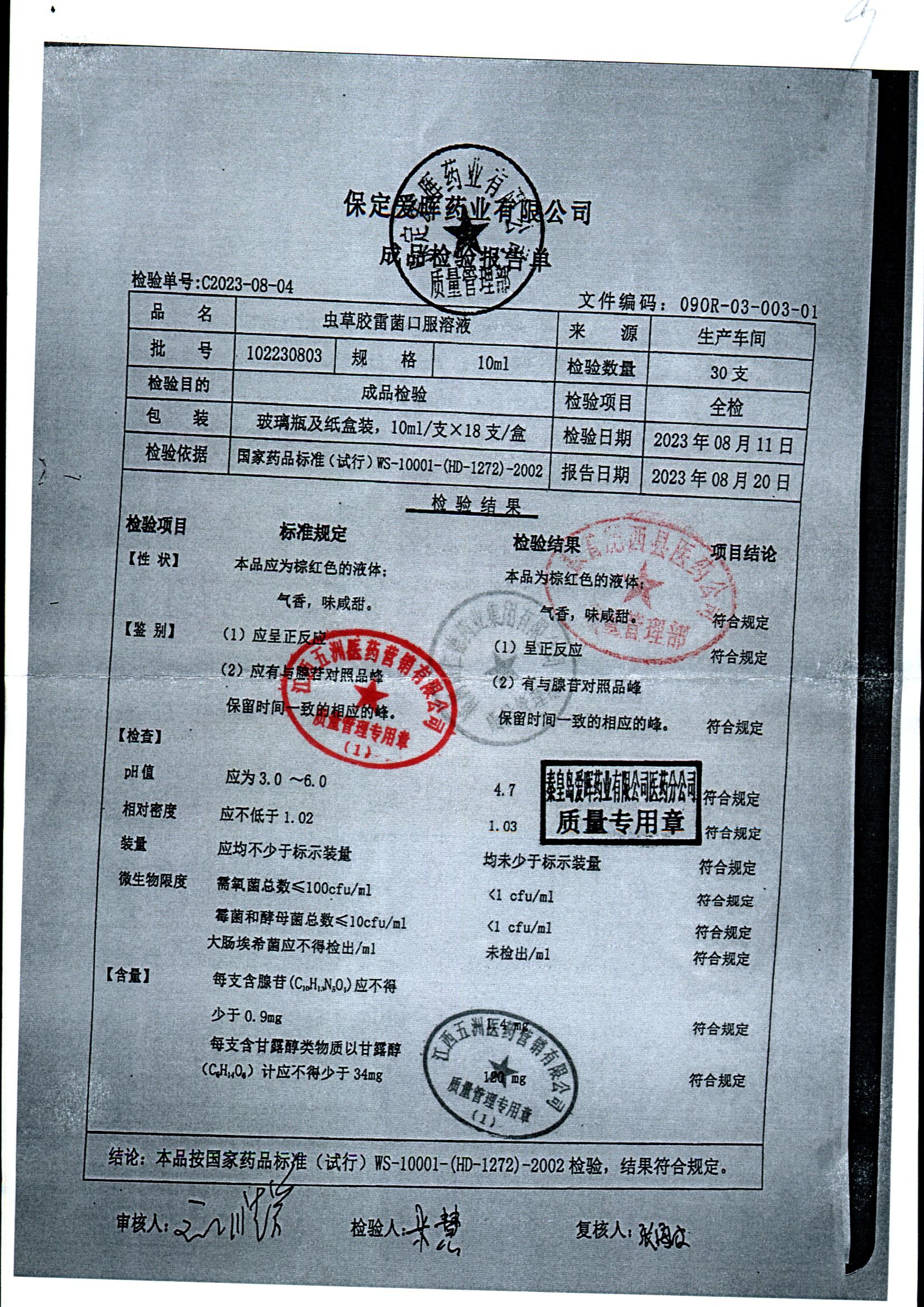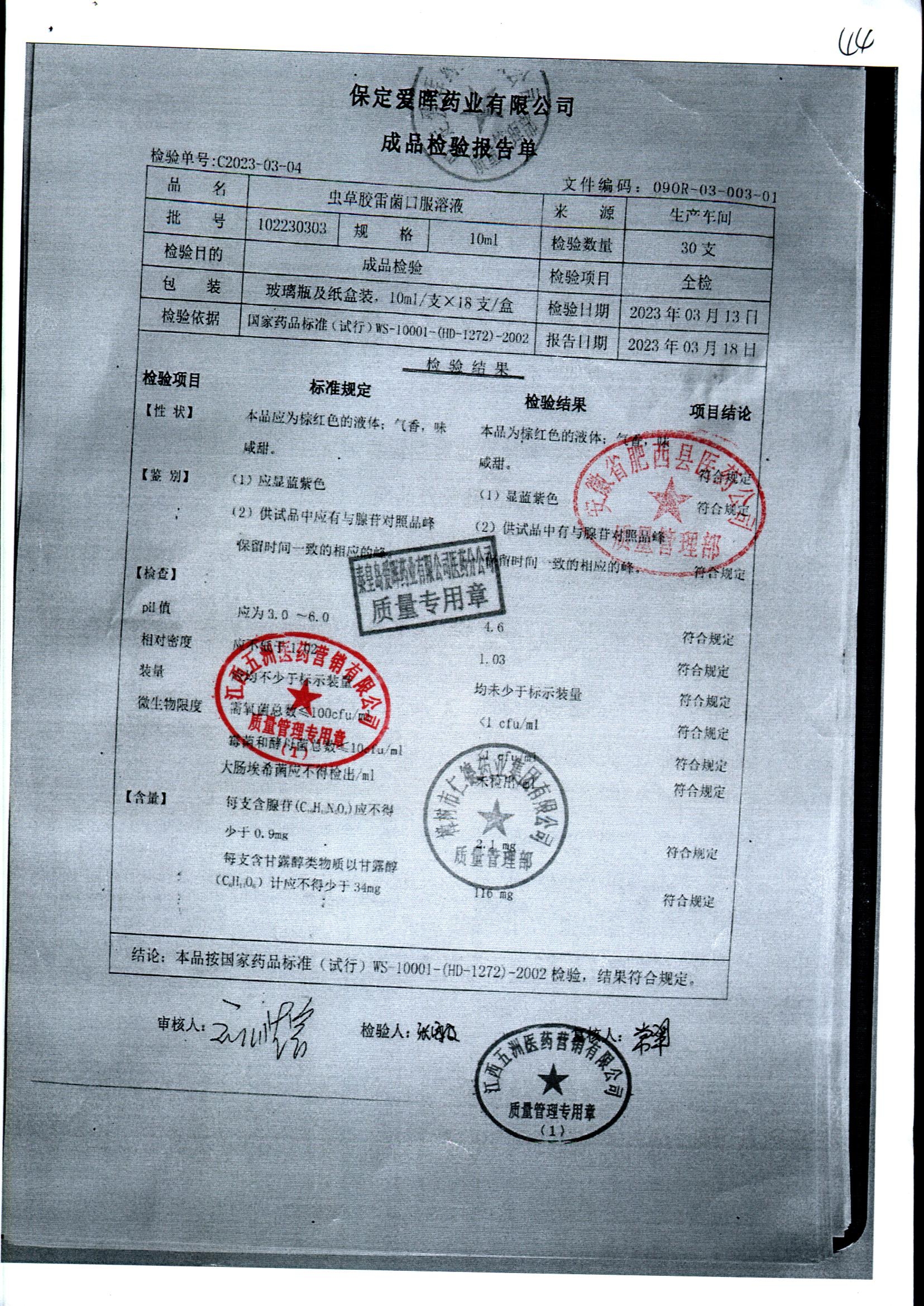 虫草胶雷菌口服溶液 | 10ml*18支 | 220606 | 查看详情 |