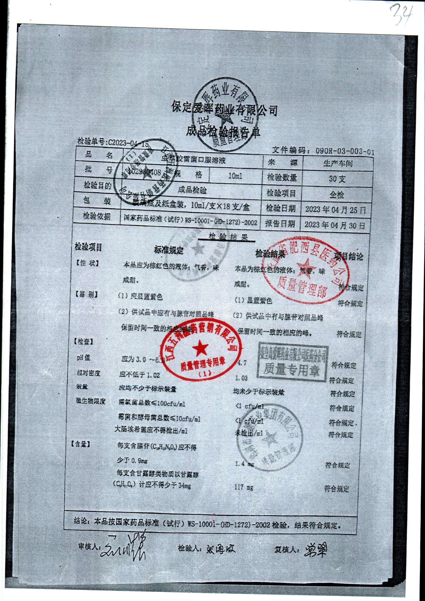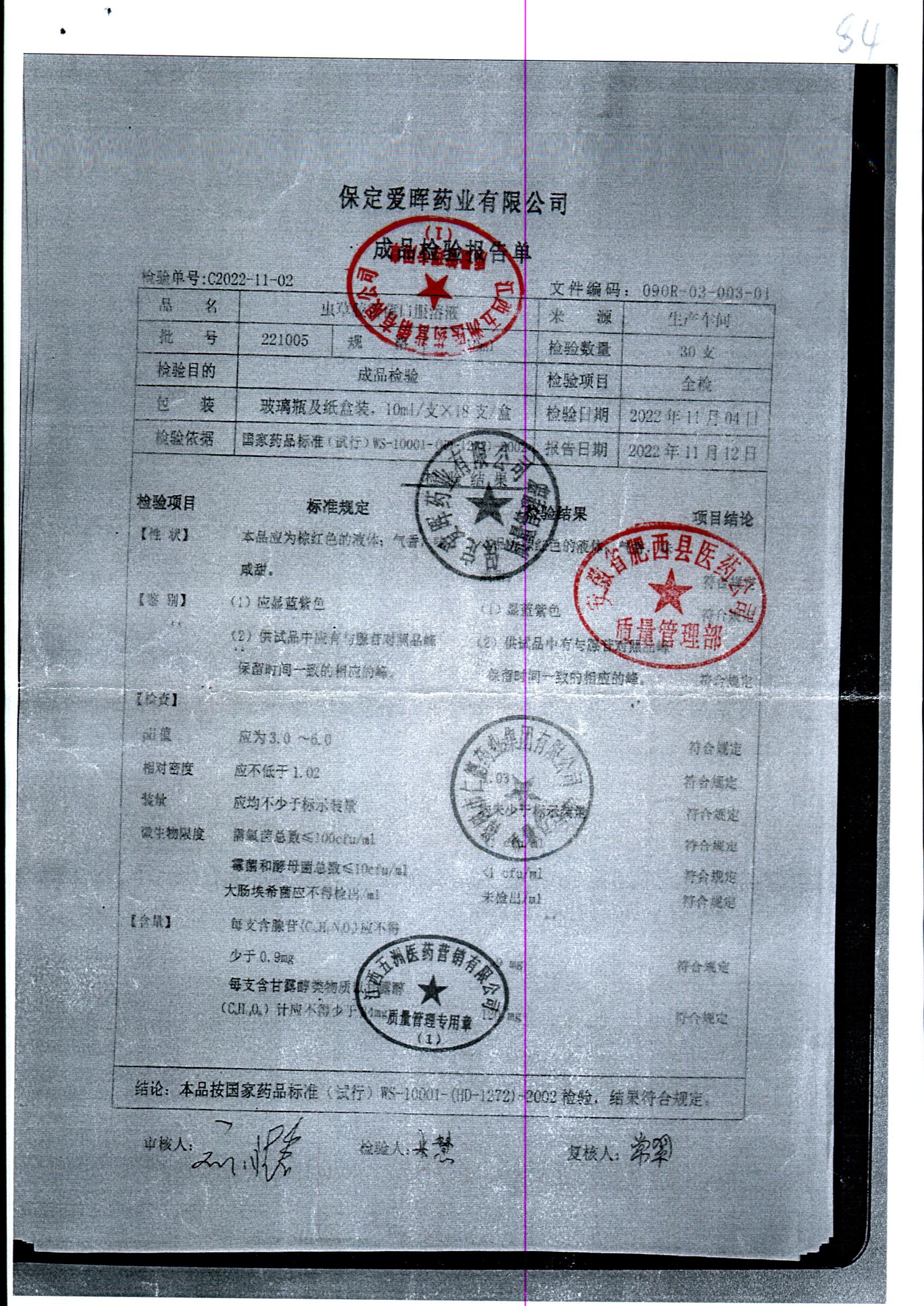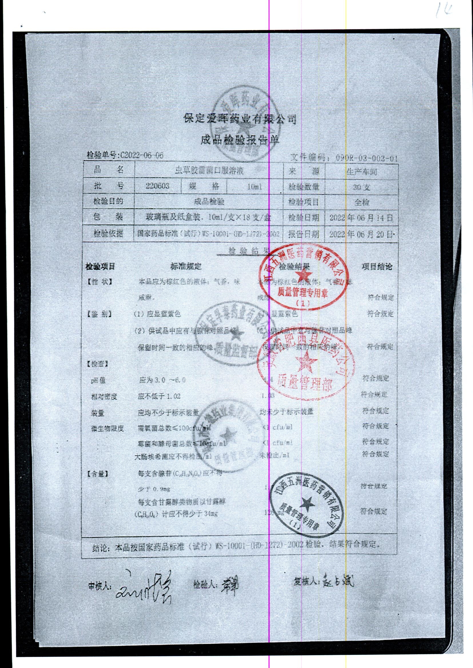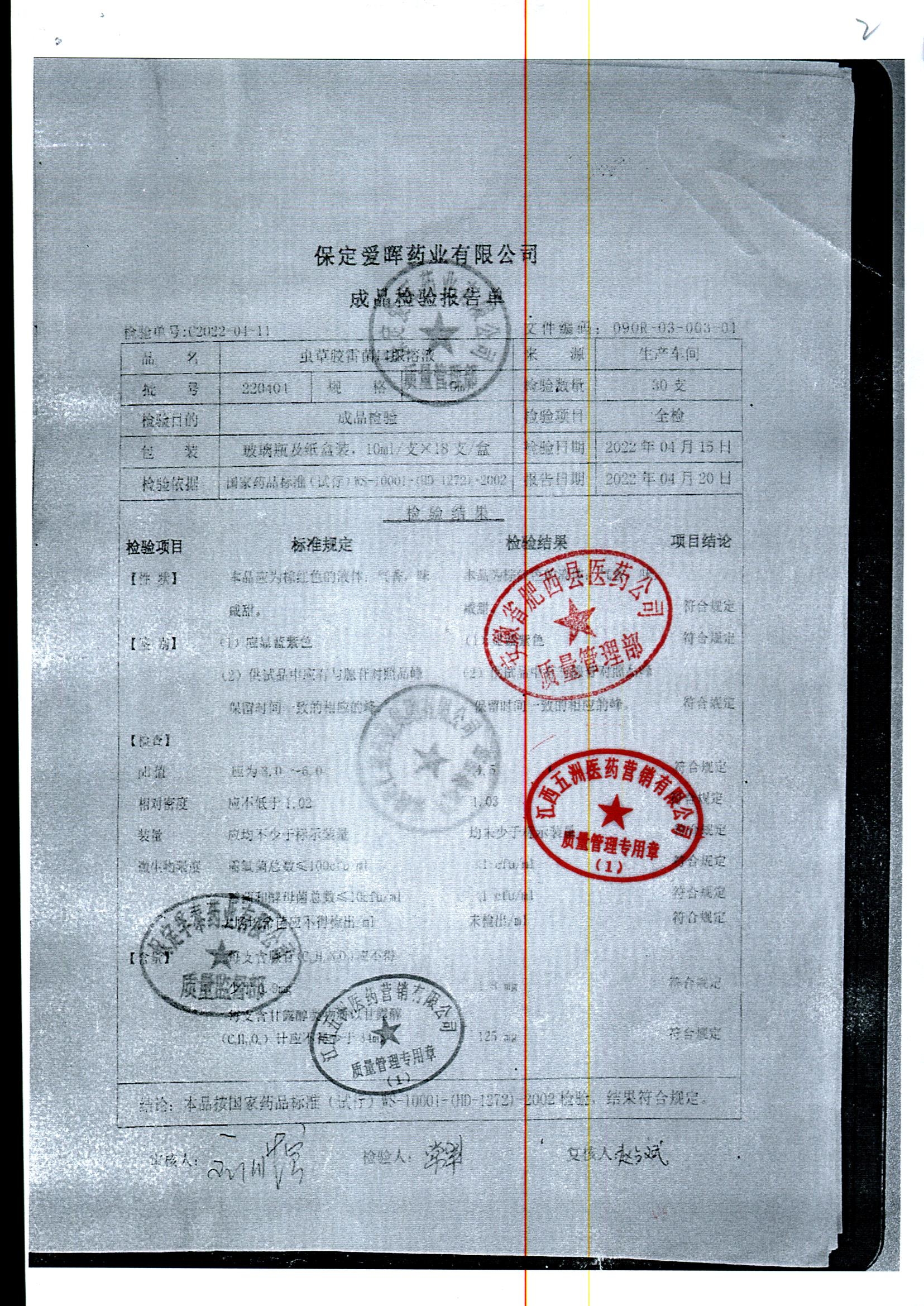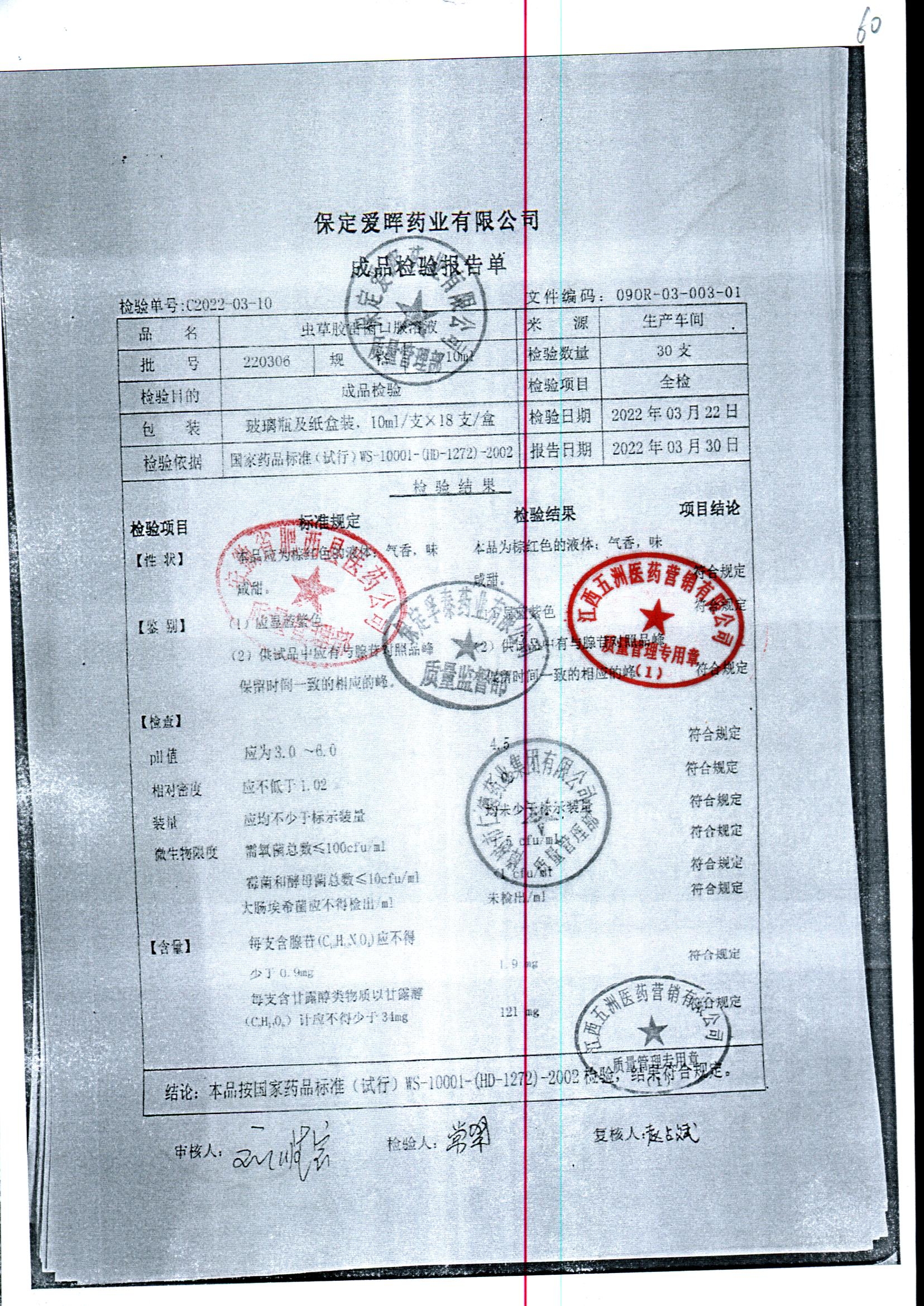 虫草胶雷菌口服溶液 | 10ml*18支 | 220606 | 查看详情 |