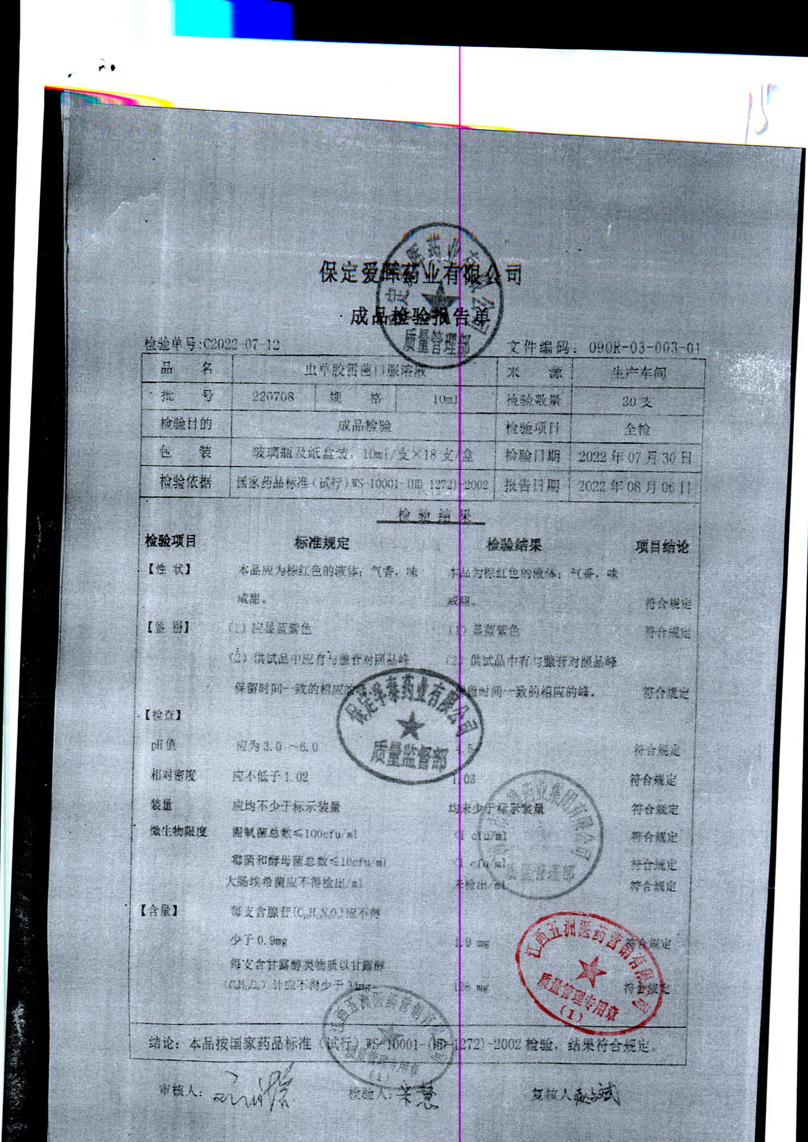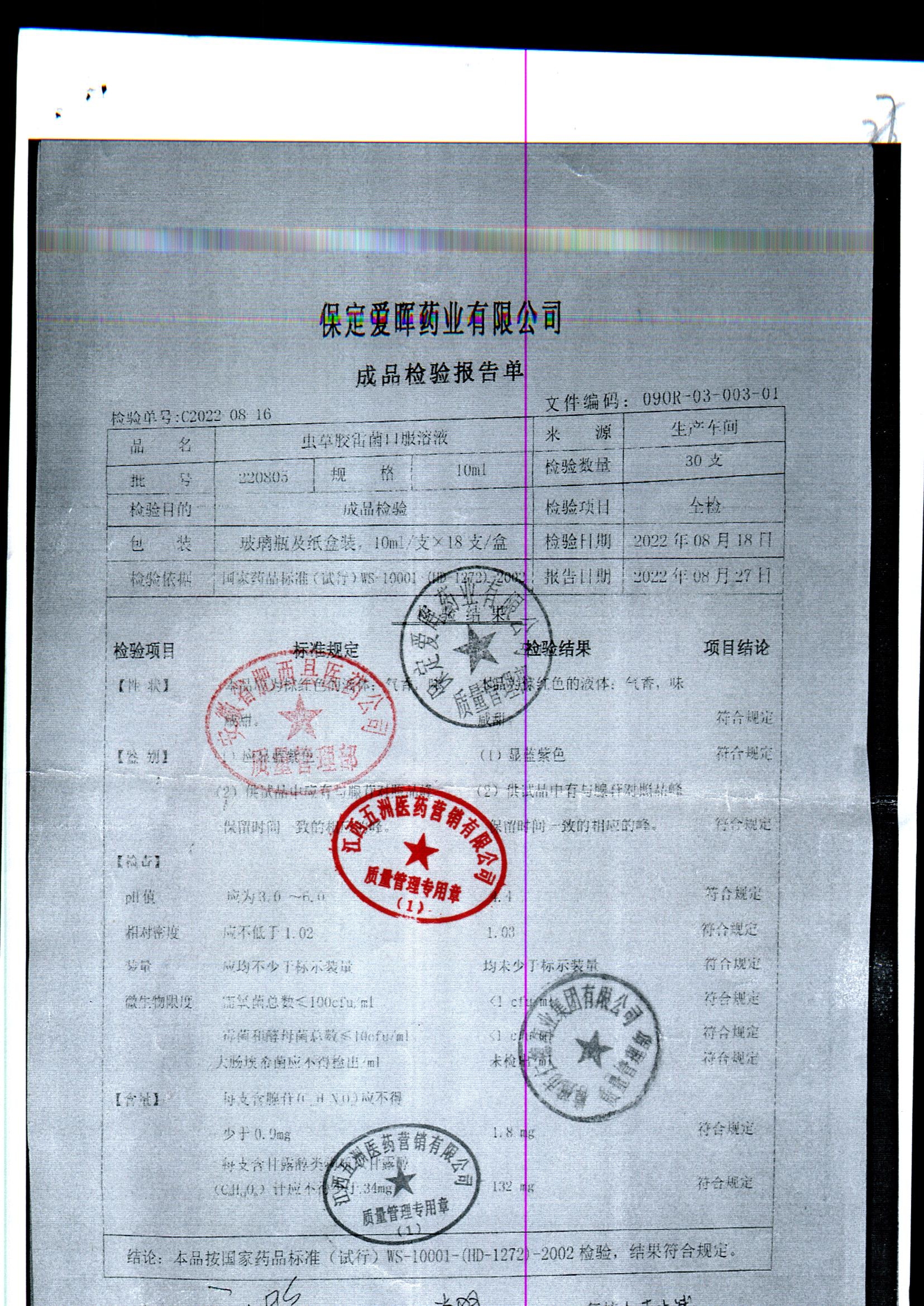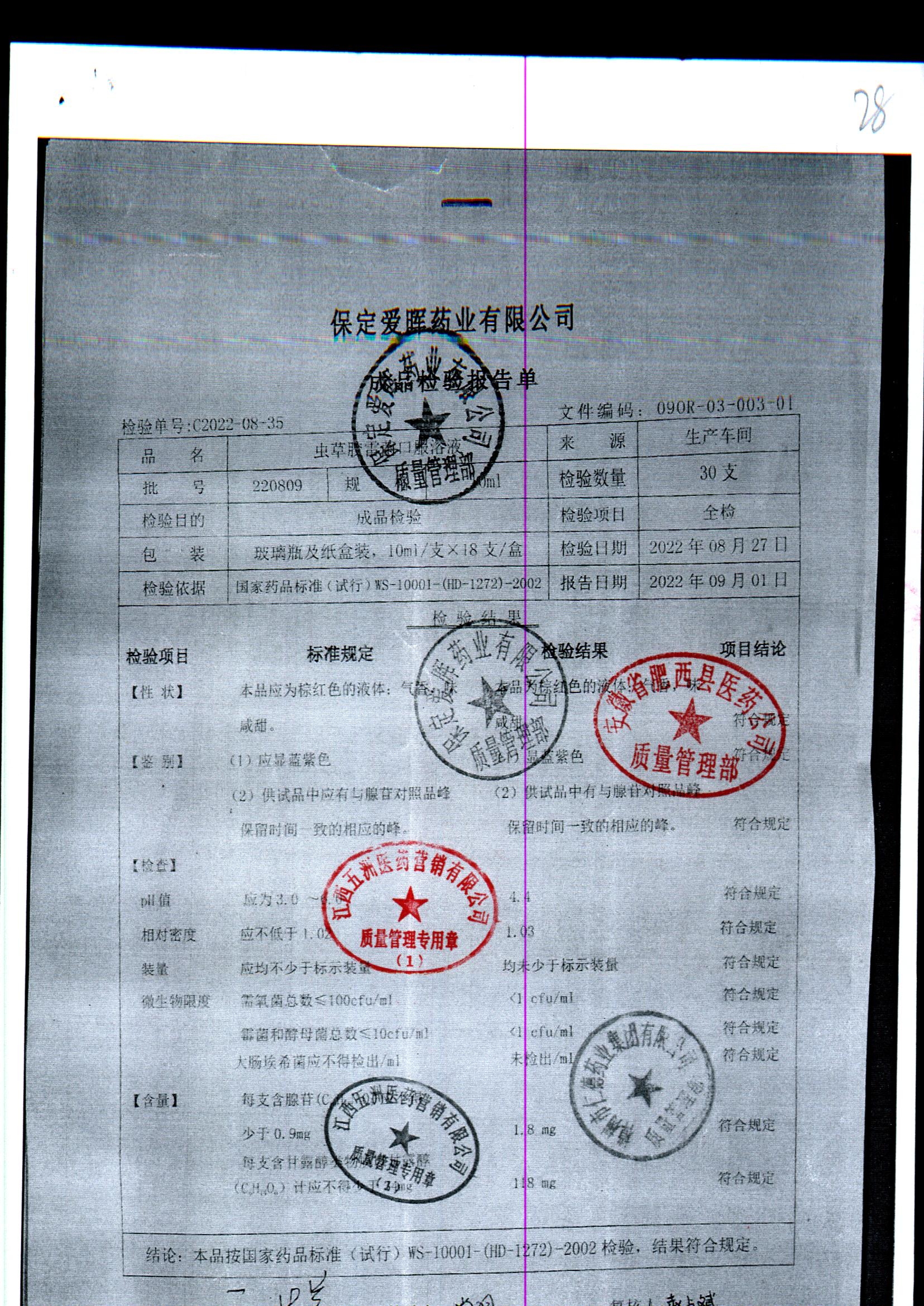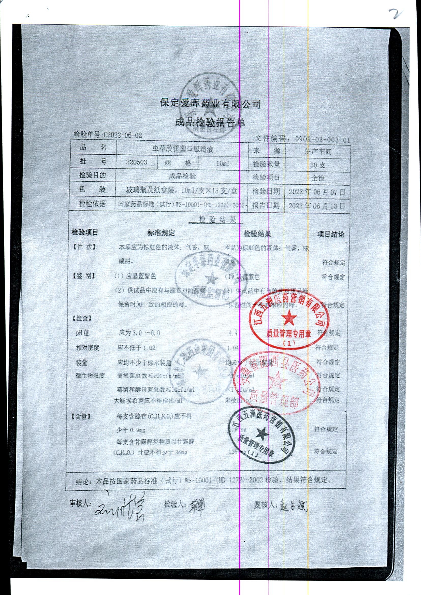 虫草胶雷菌口服溶液 | 10ml*18支 | 220809 | 查看详情 |