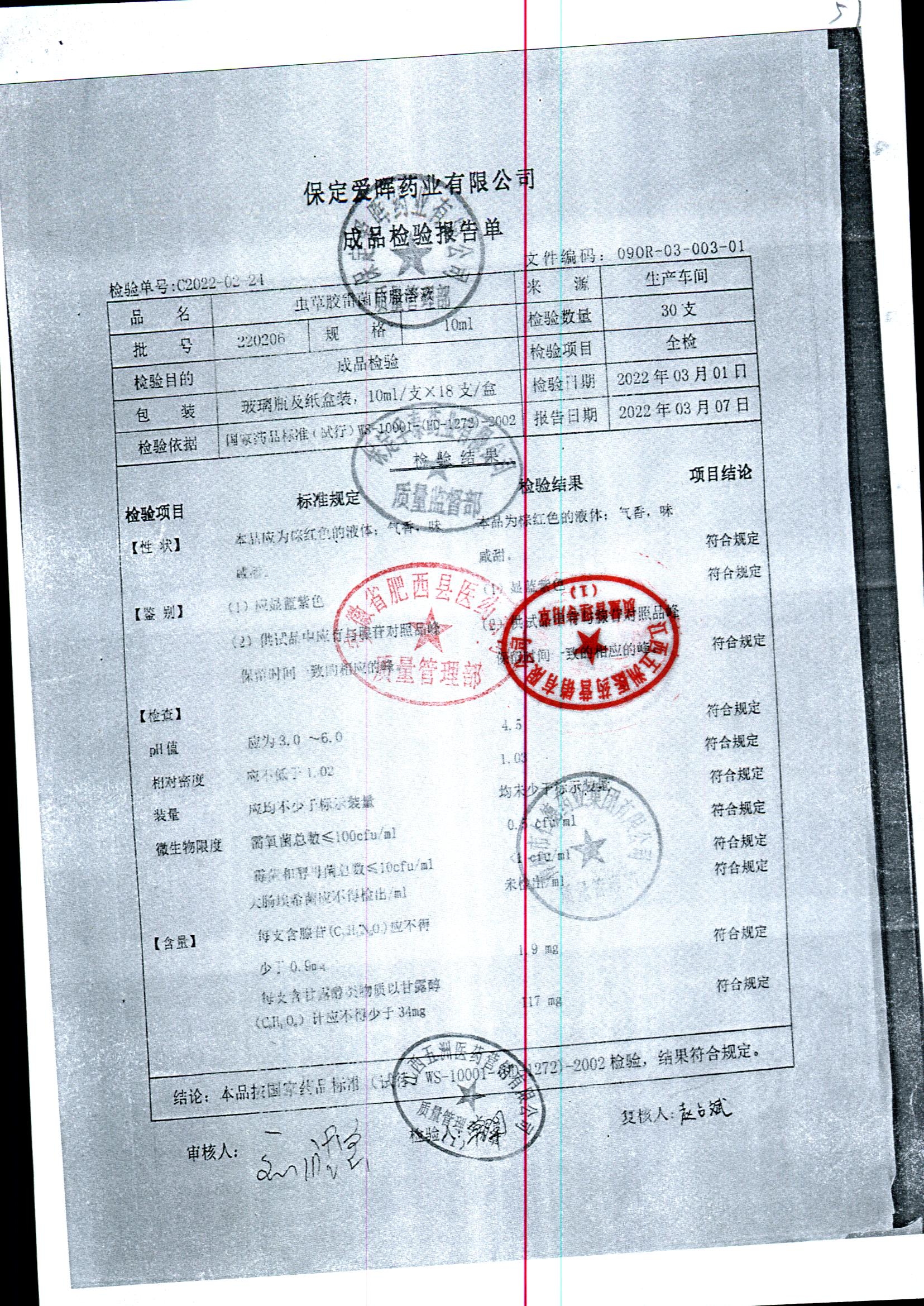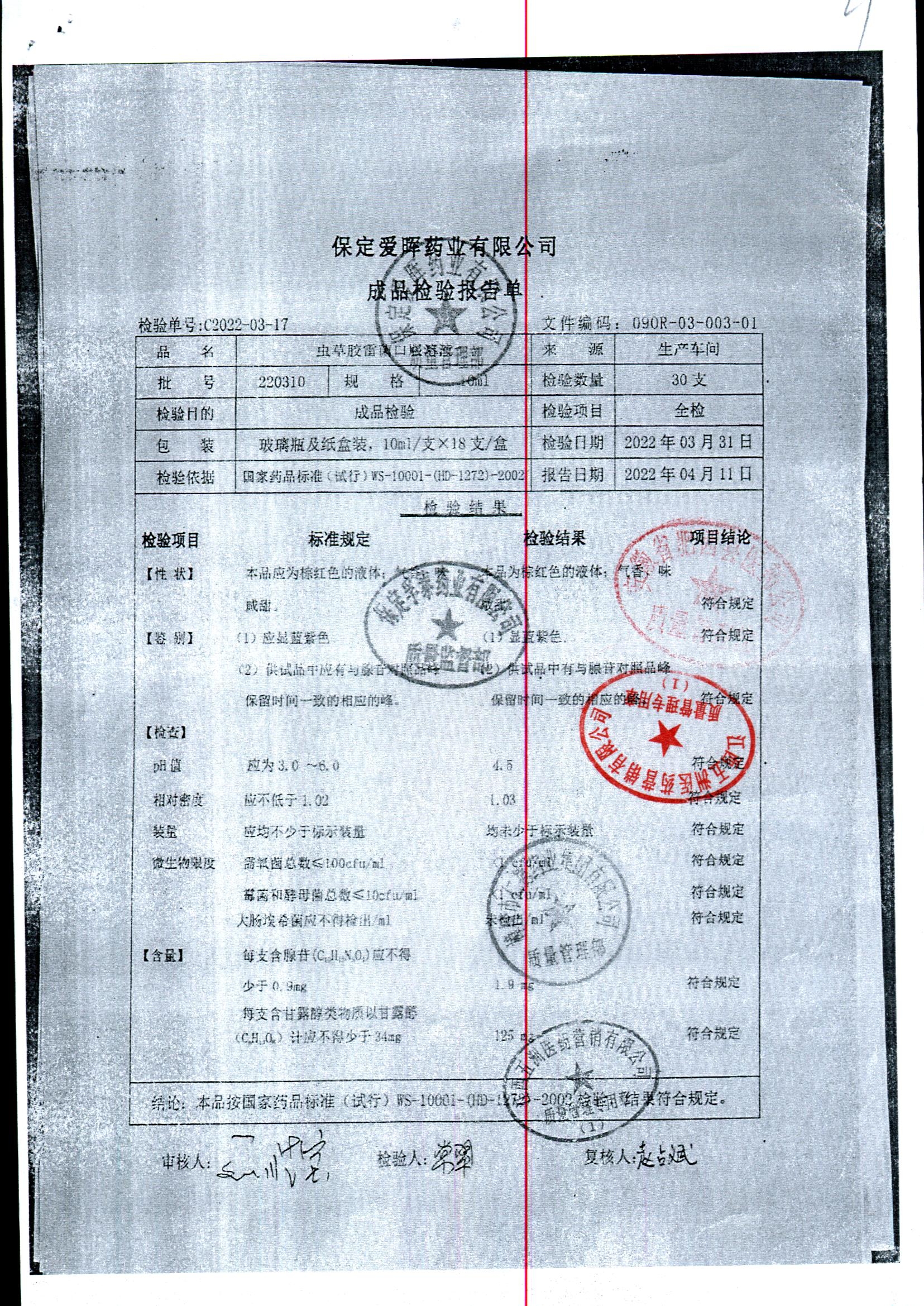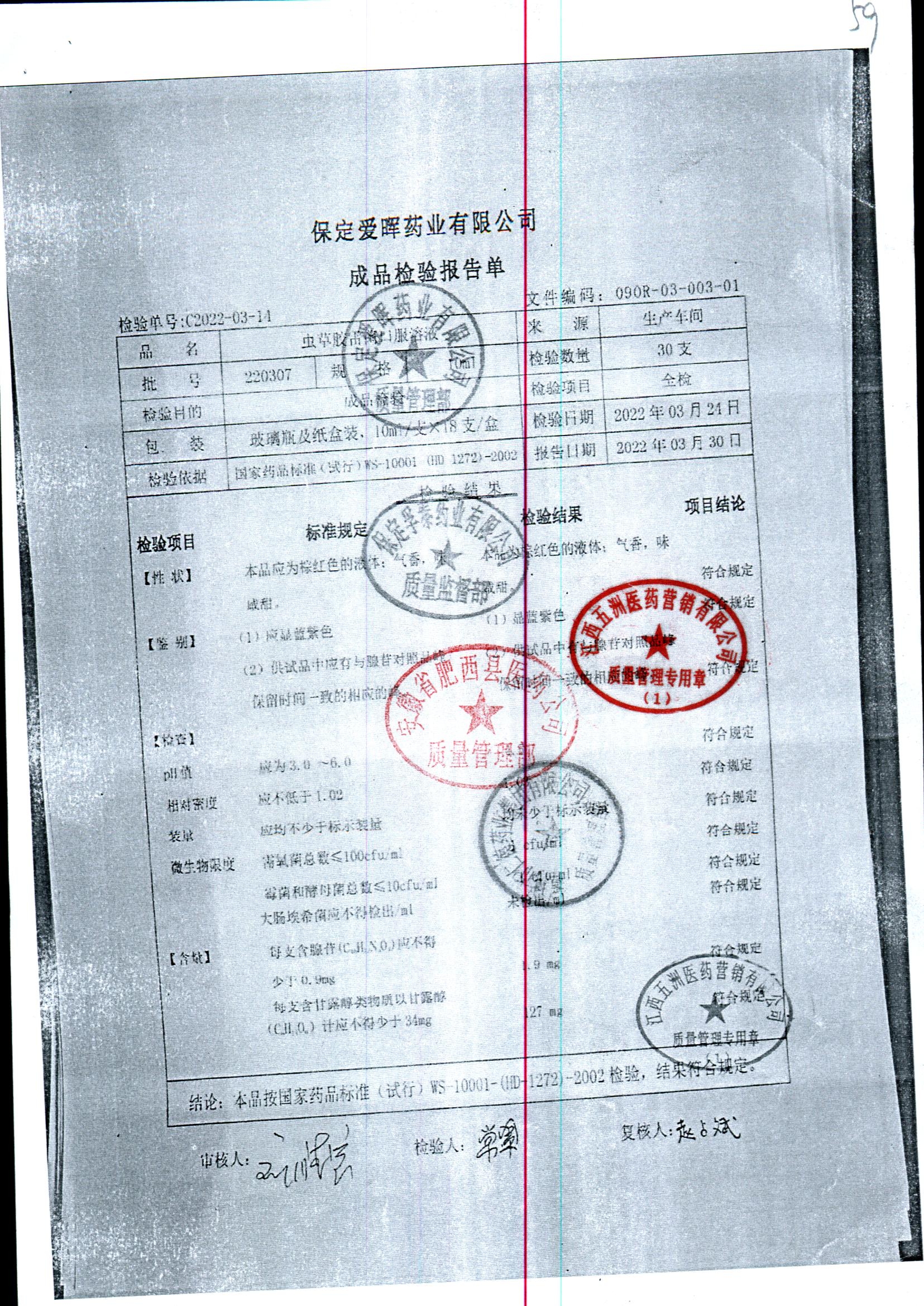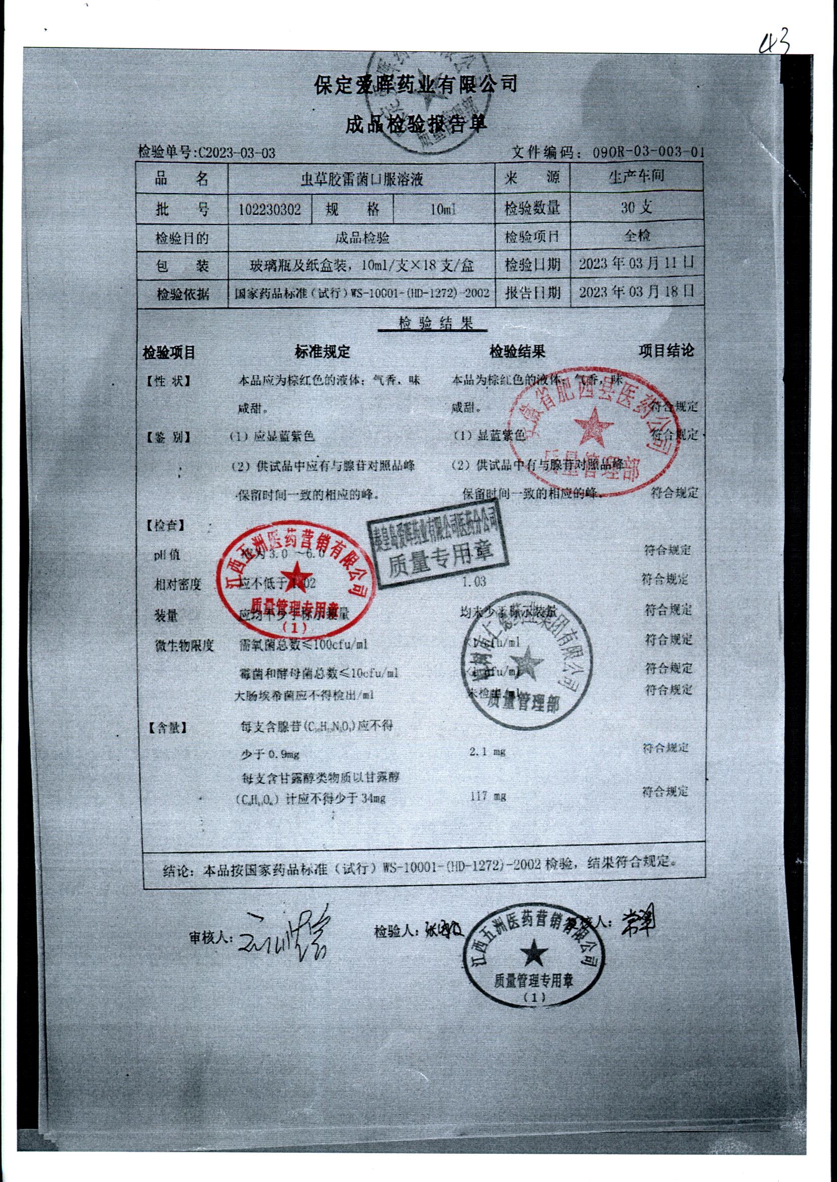 虫草胶雷菌口服溶液 | 10ml*18支 | 220503 | 查看详情 |