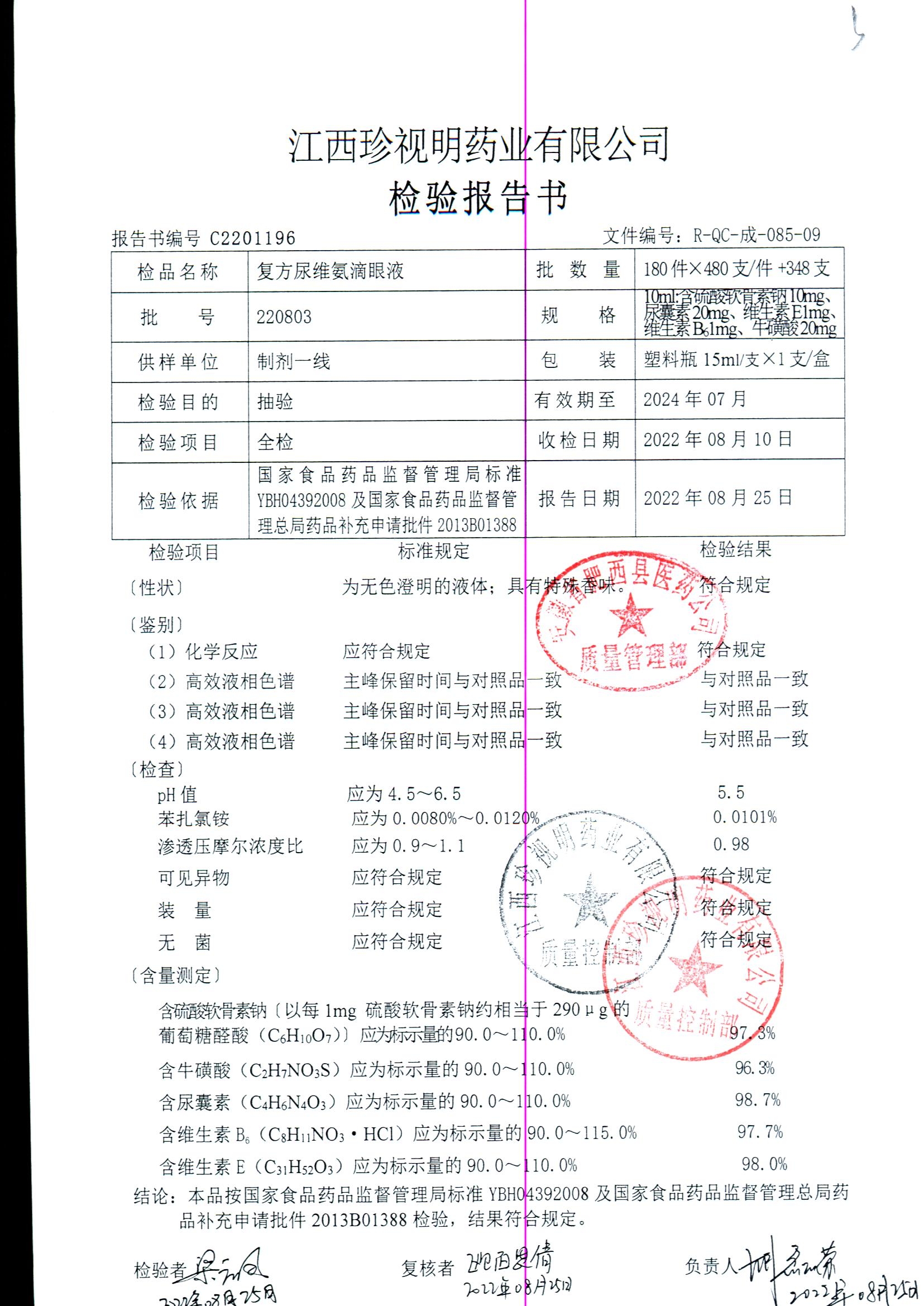 复方尿维氨滴眼液 | 15ml | 220803 | 查看详情 |
