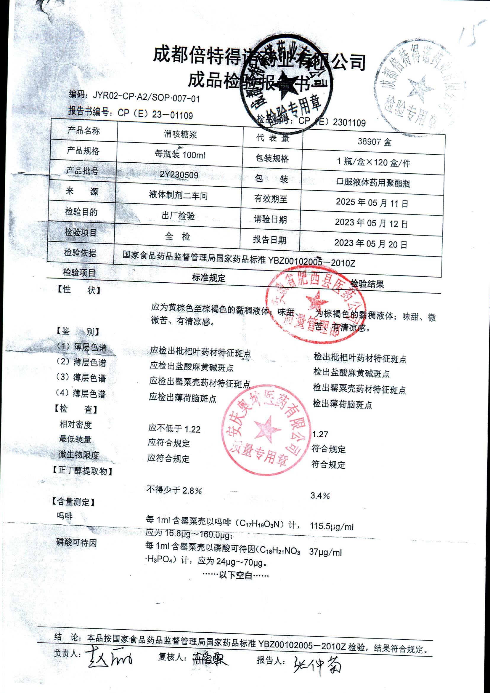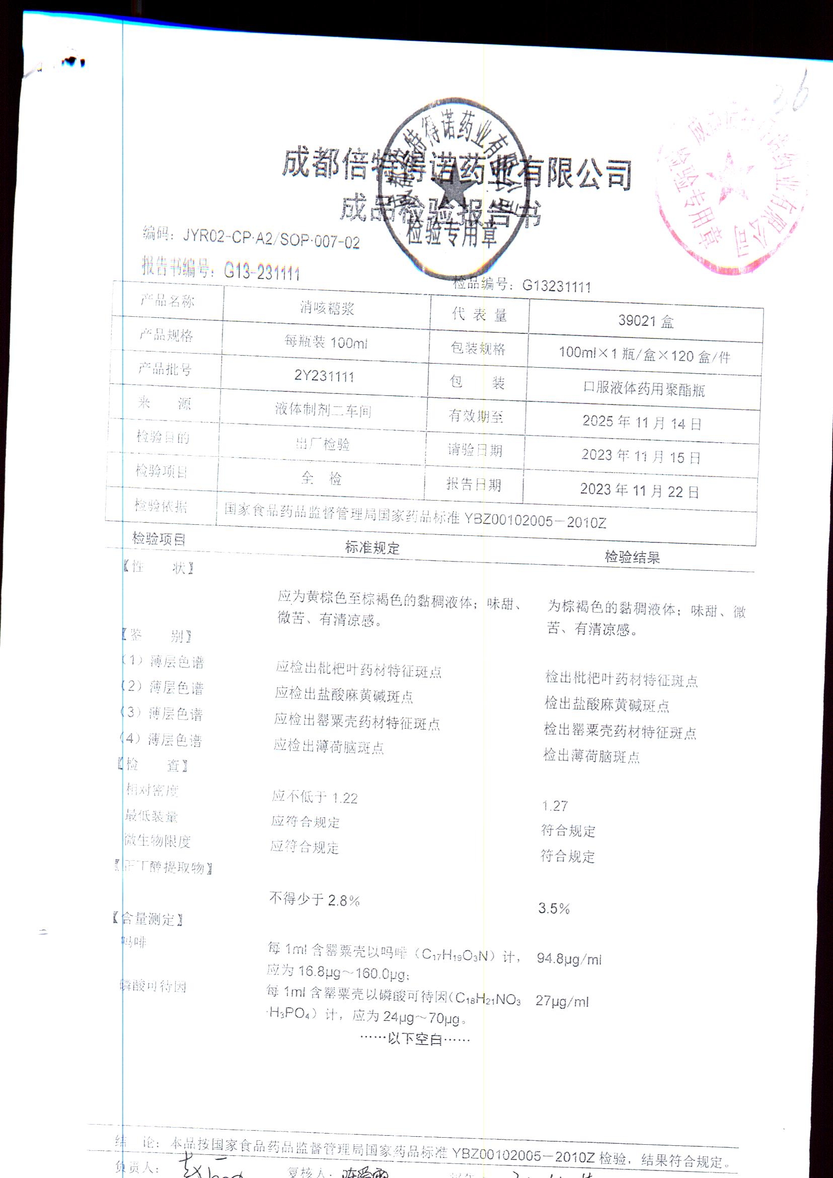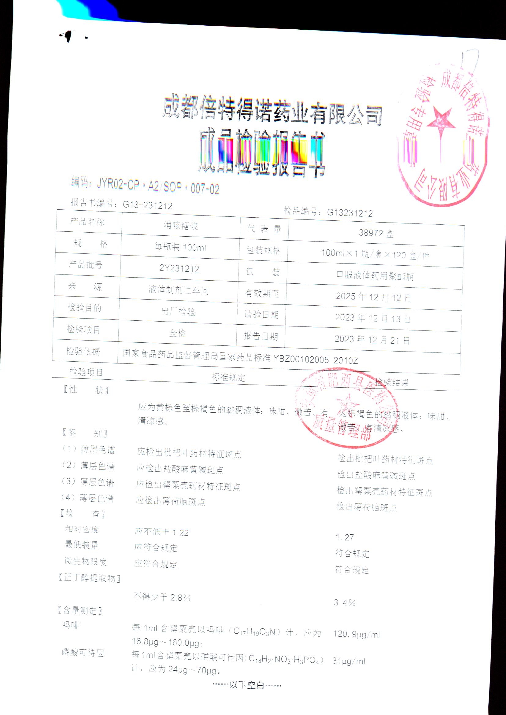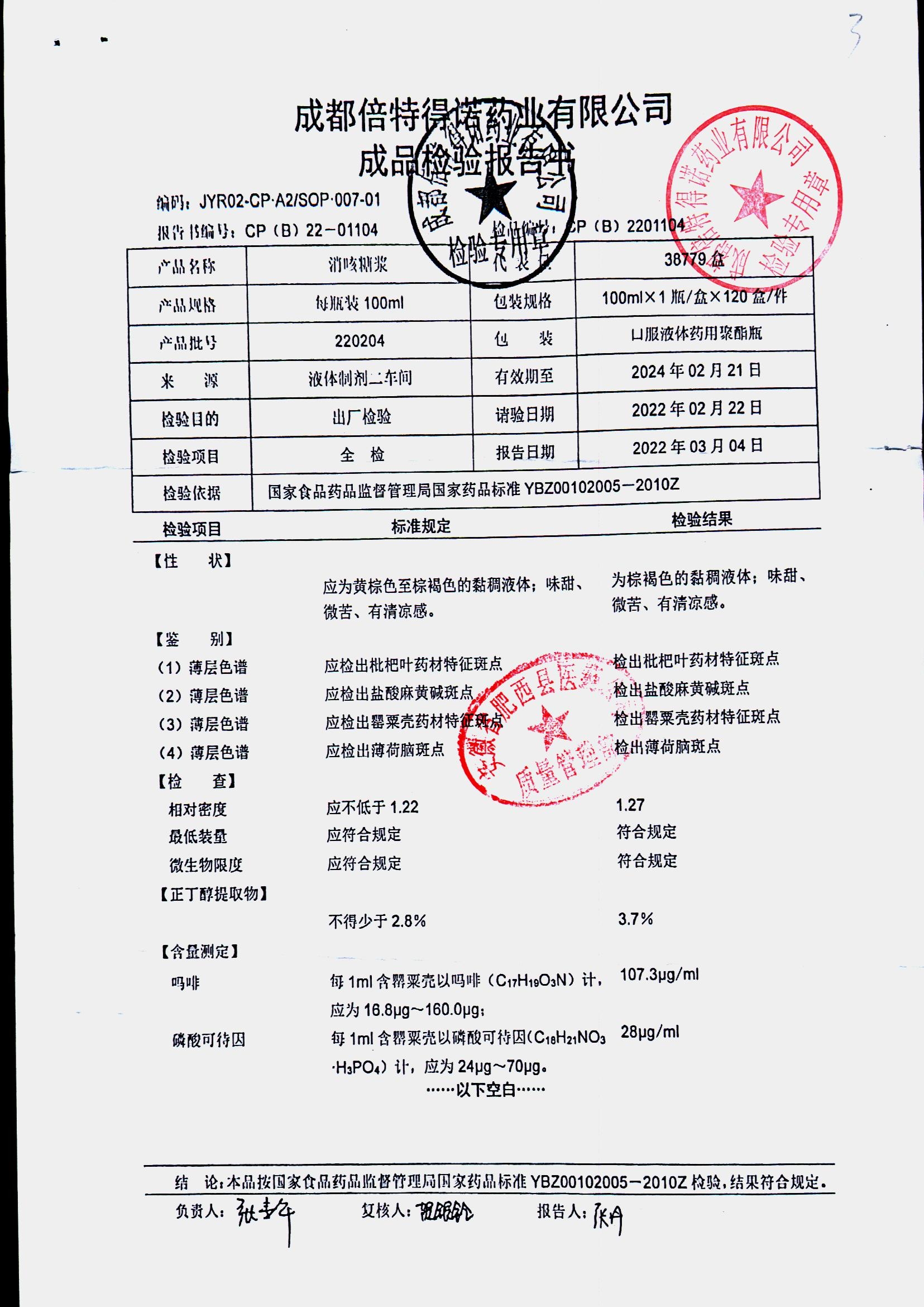 消咳糖浆 | 100ml | 2Y231212 | 查看详情 |