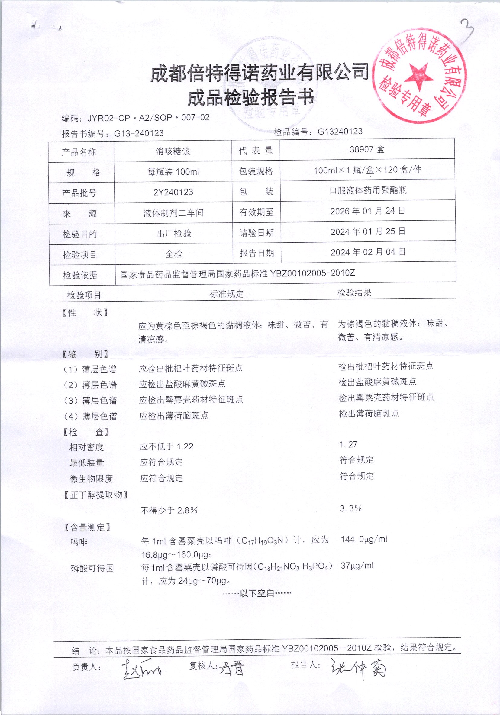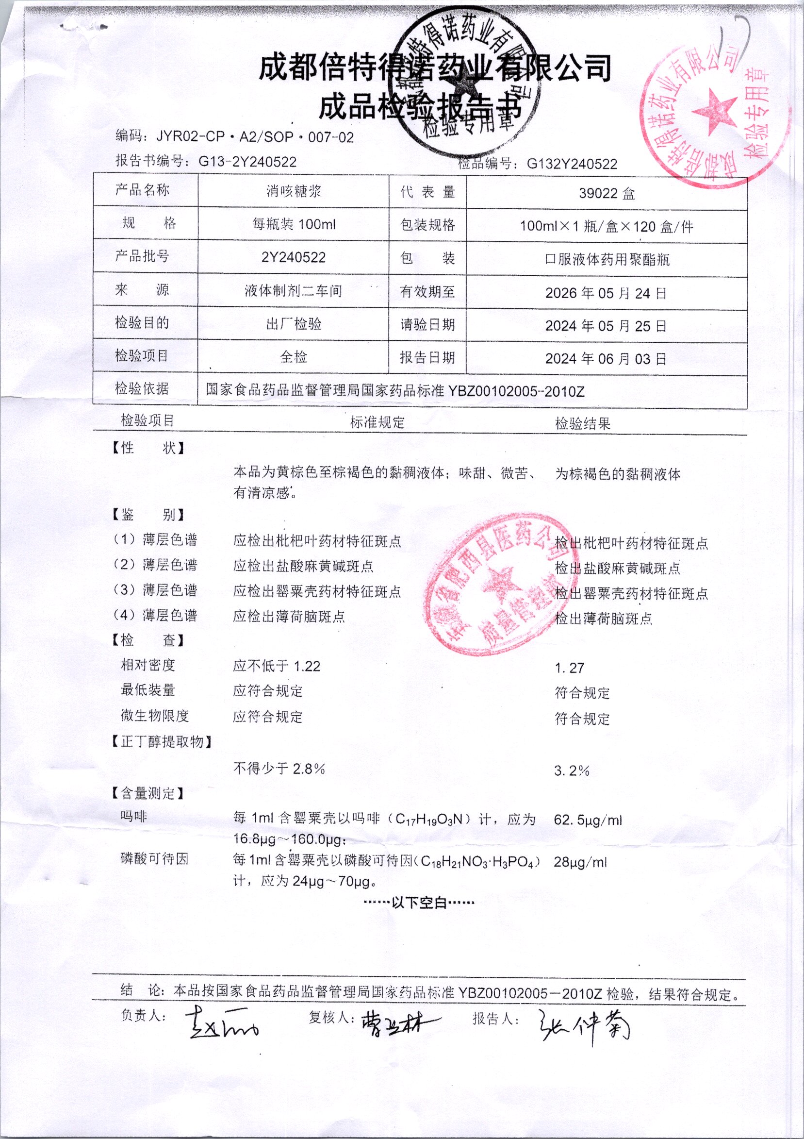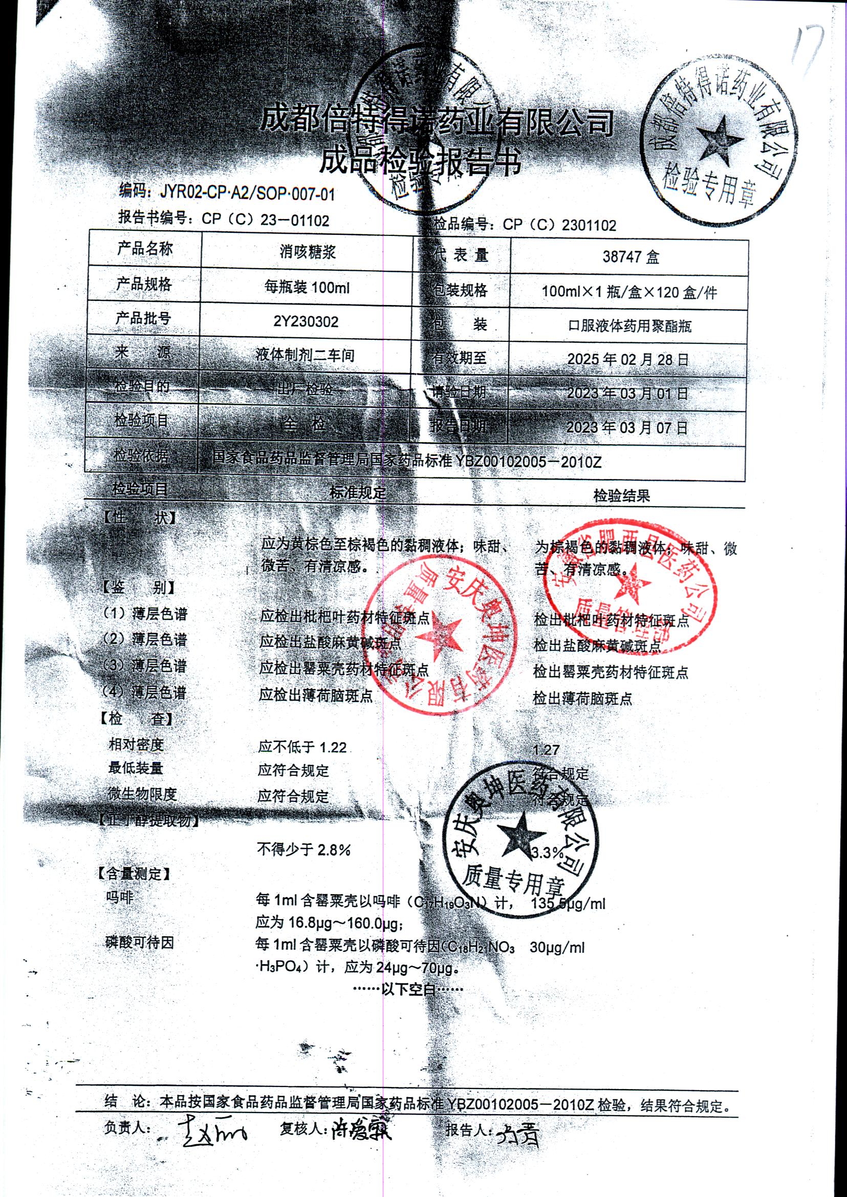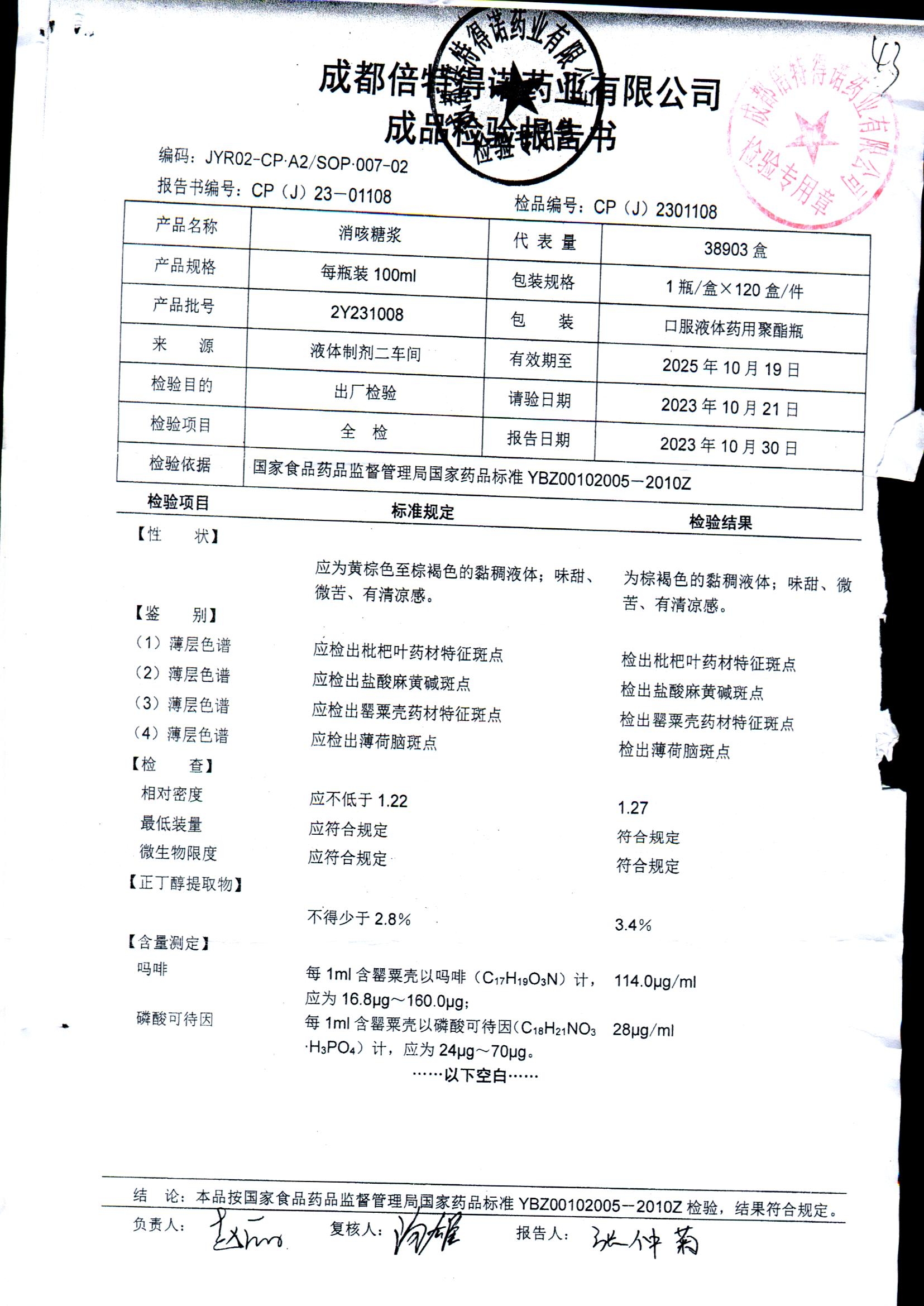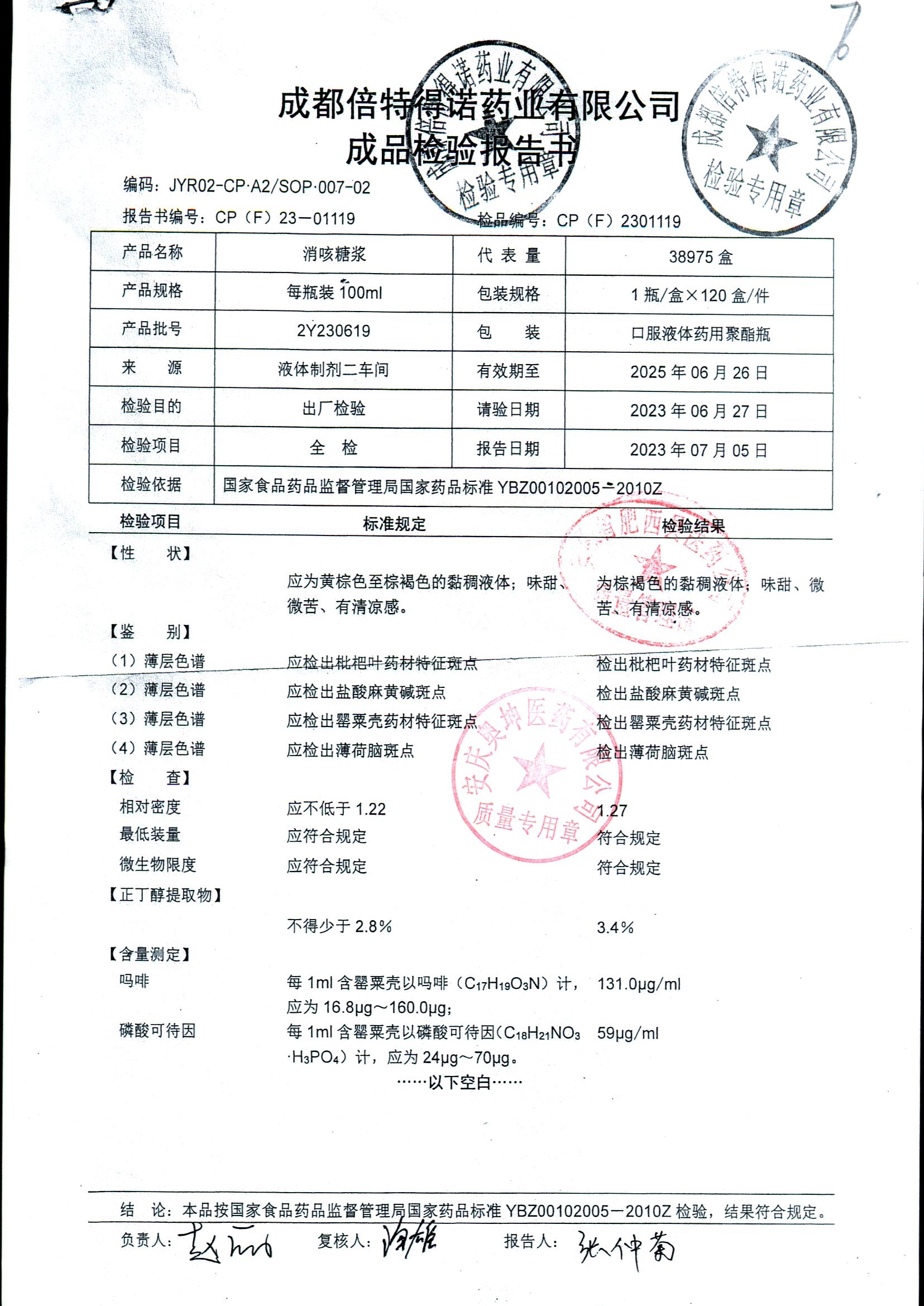 消咳糖浆 | 100ml | 2Y231212 | 查看详情 |