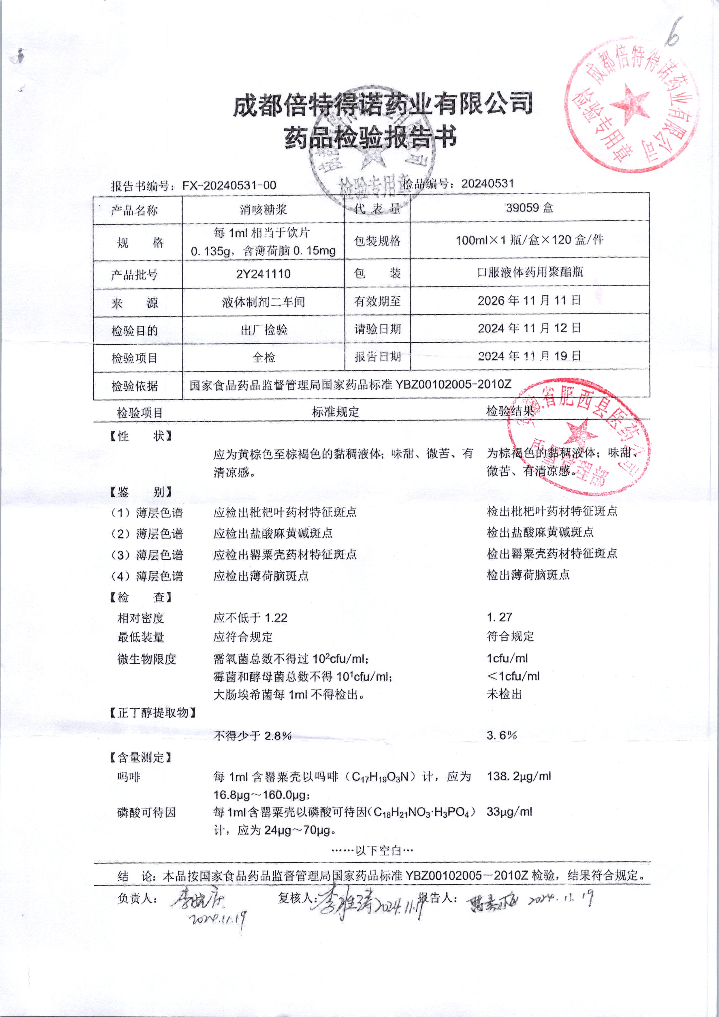 消咳糖浆 | 100ml | 2Y241110 | 查看详情 |