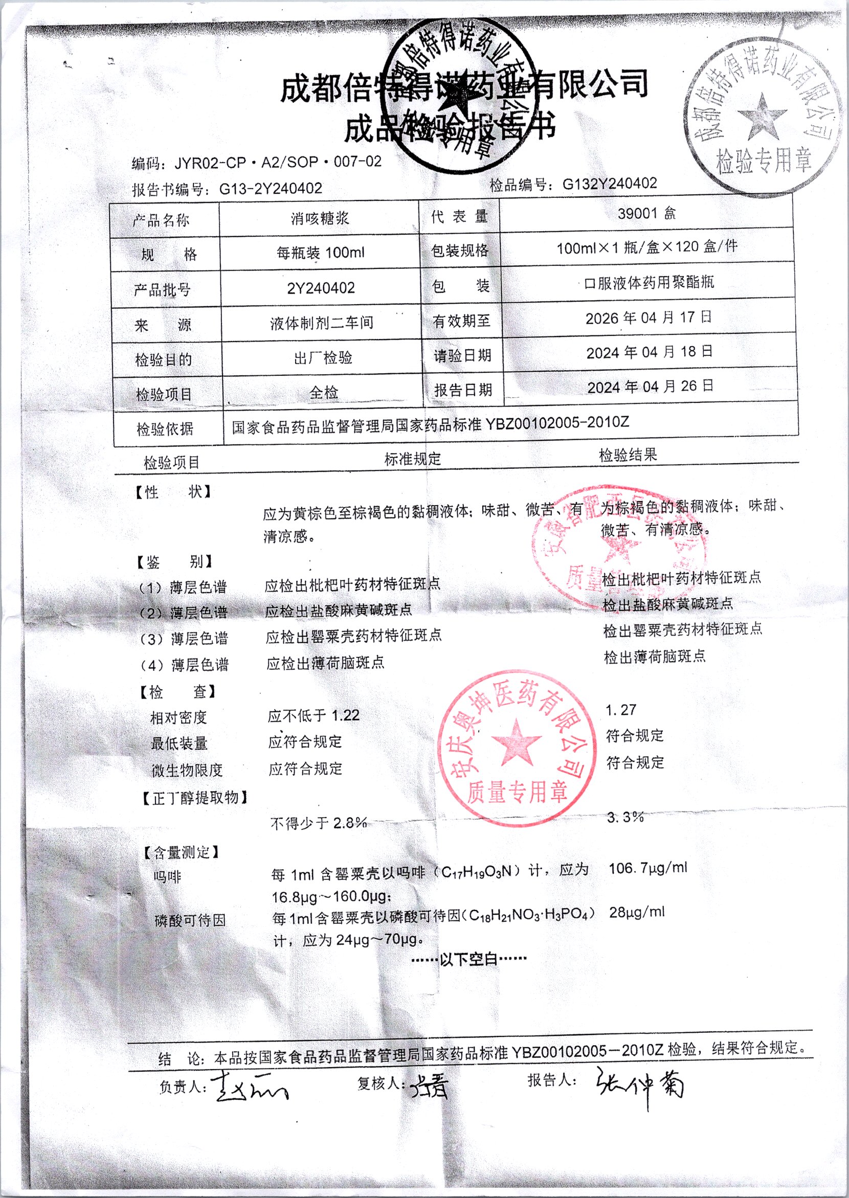 消咳糖浆 | 100ml | 2Y240402 | 查看详情 |