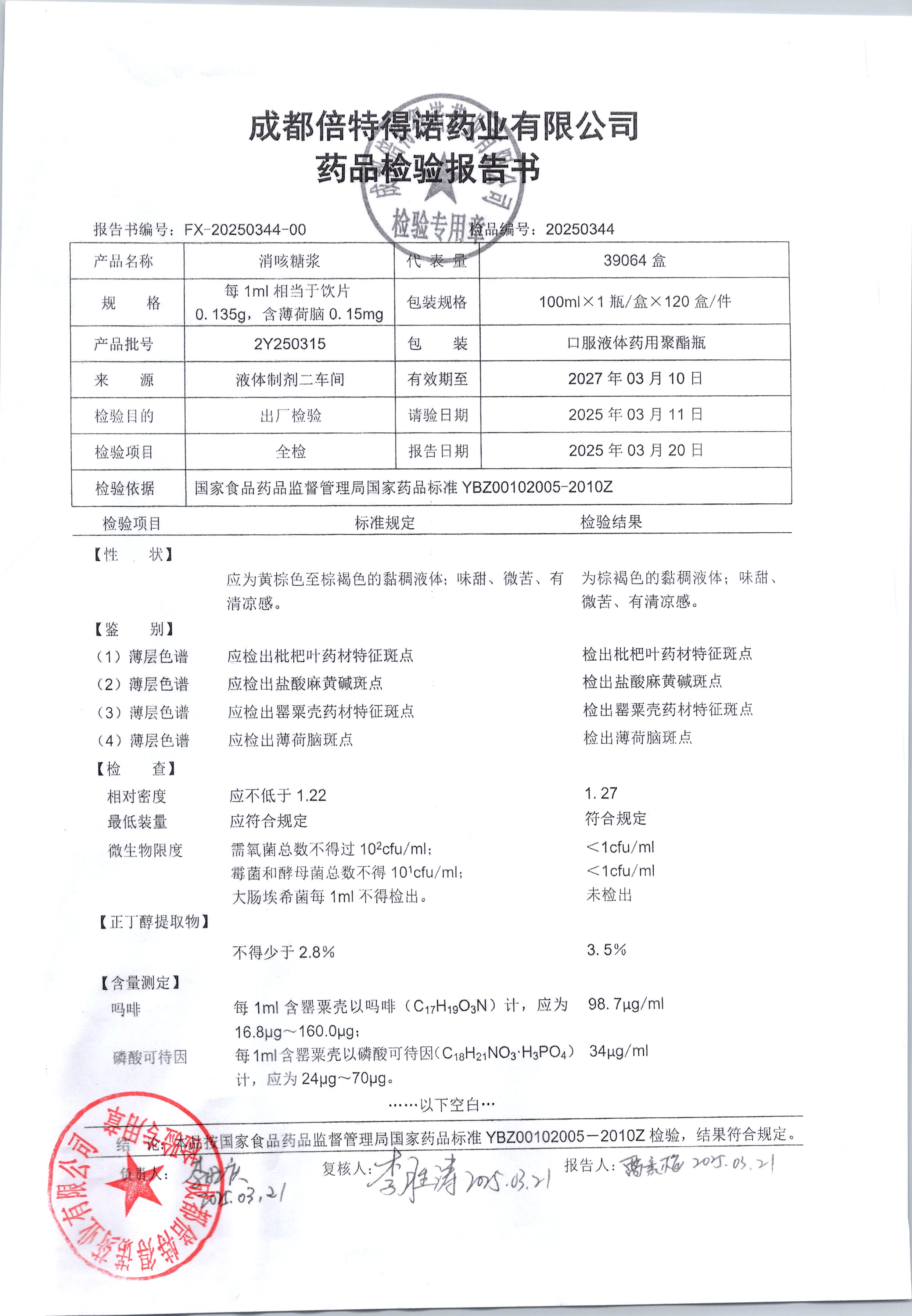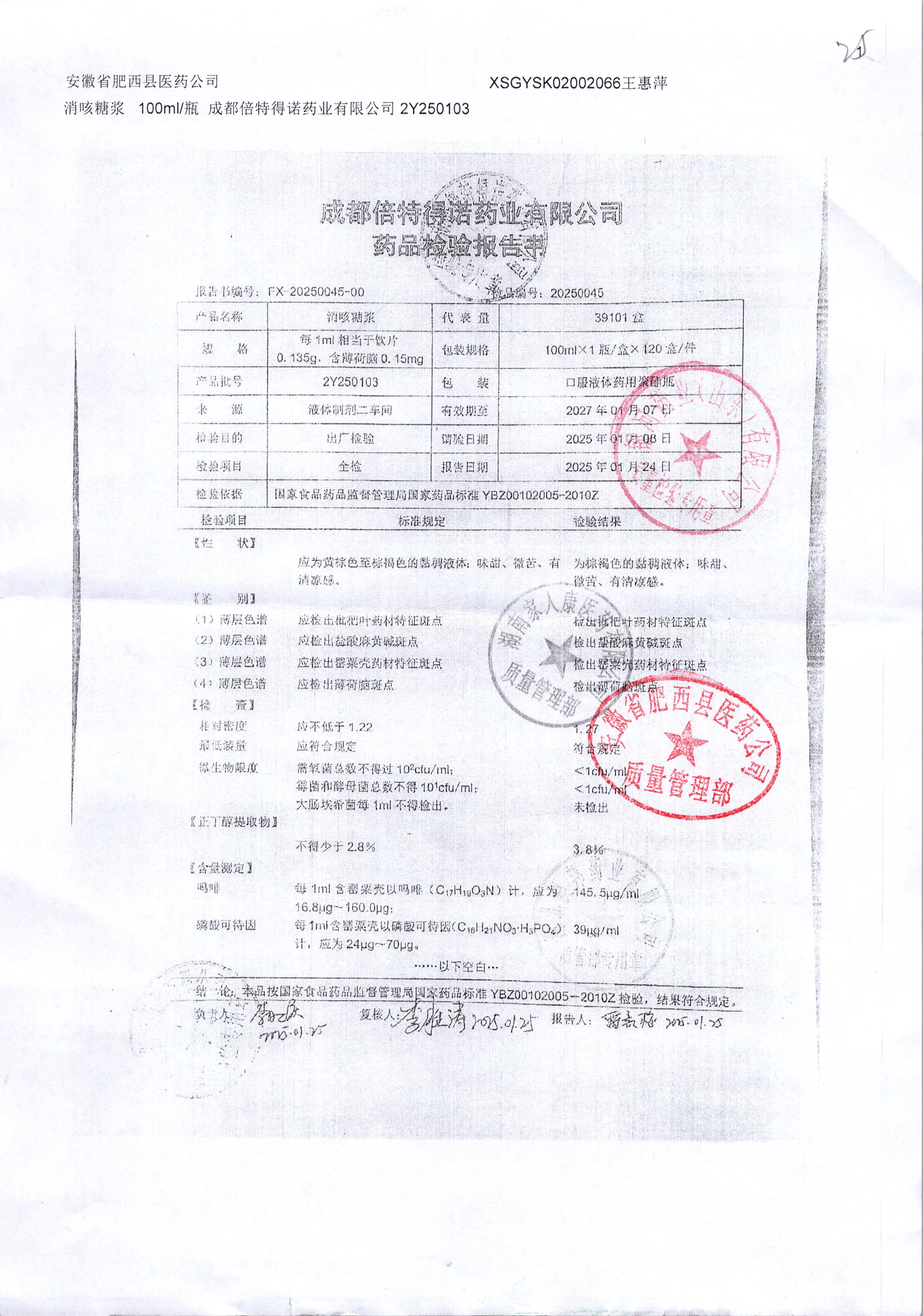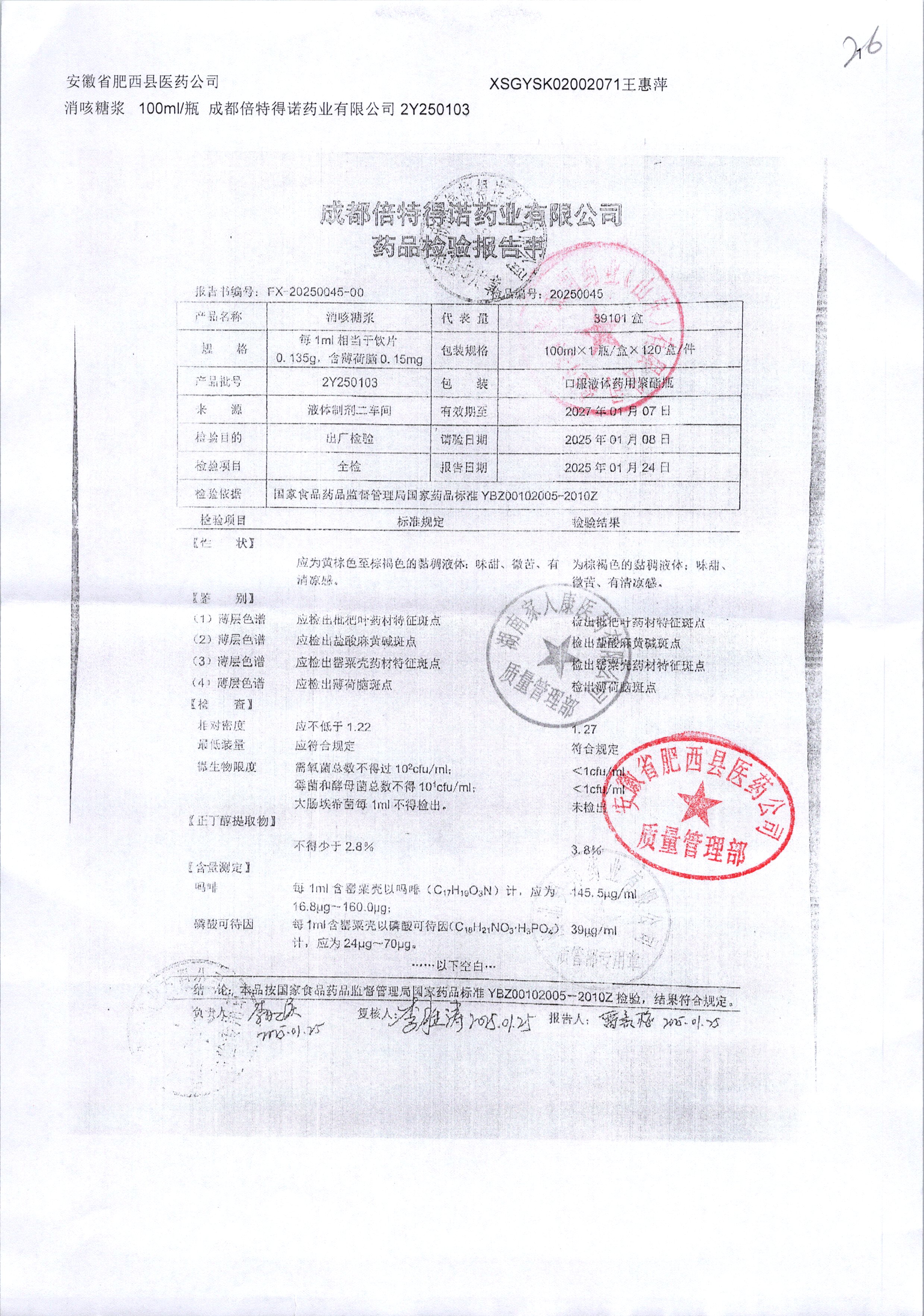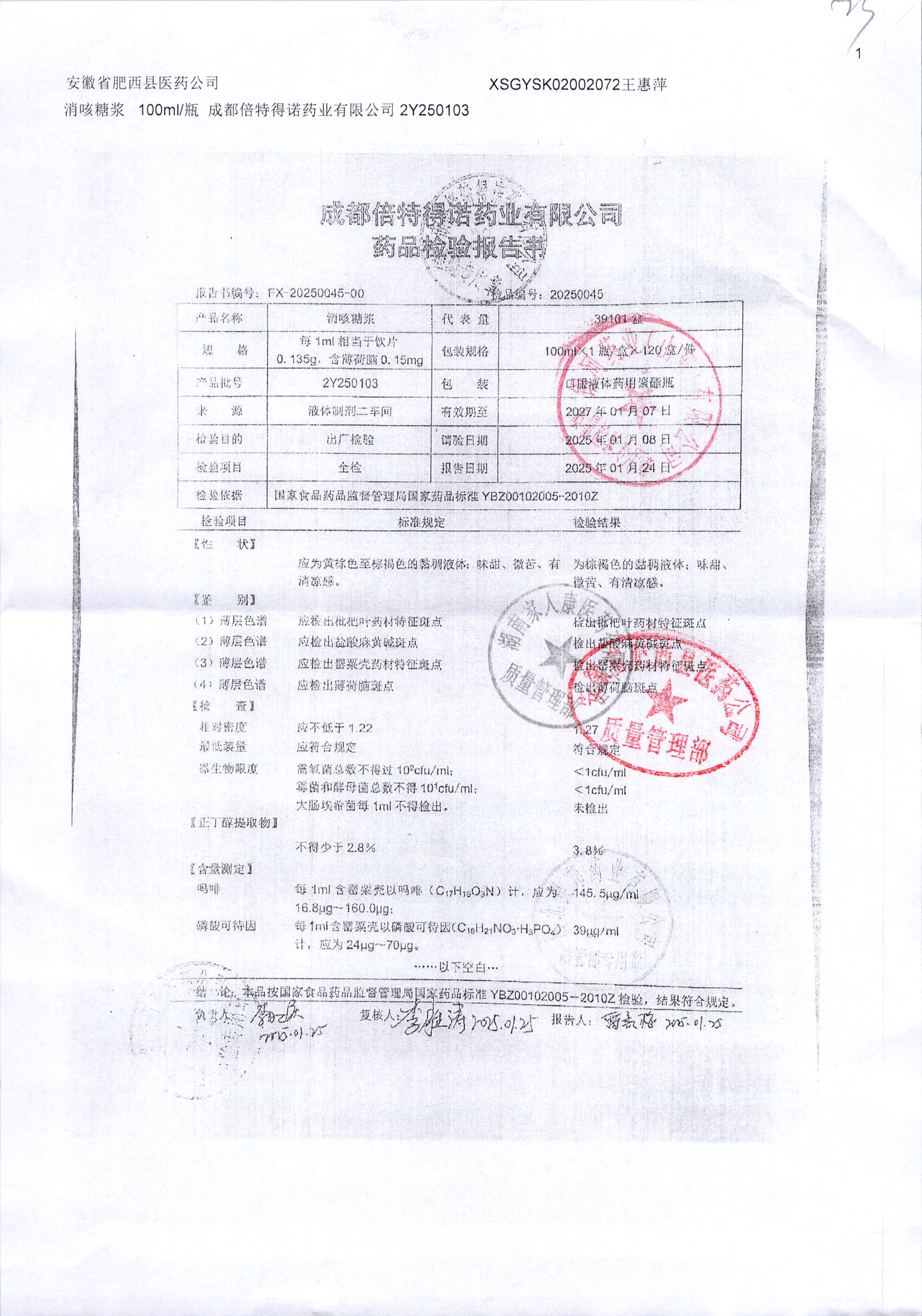| 消咳糖浆 | 100ml | 2Y250307 | 查看详情 |