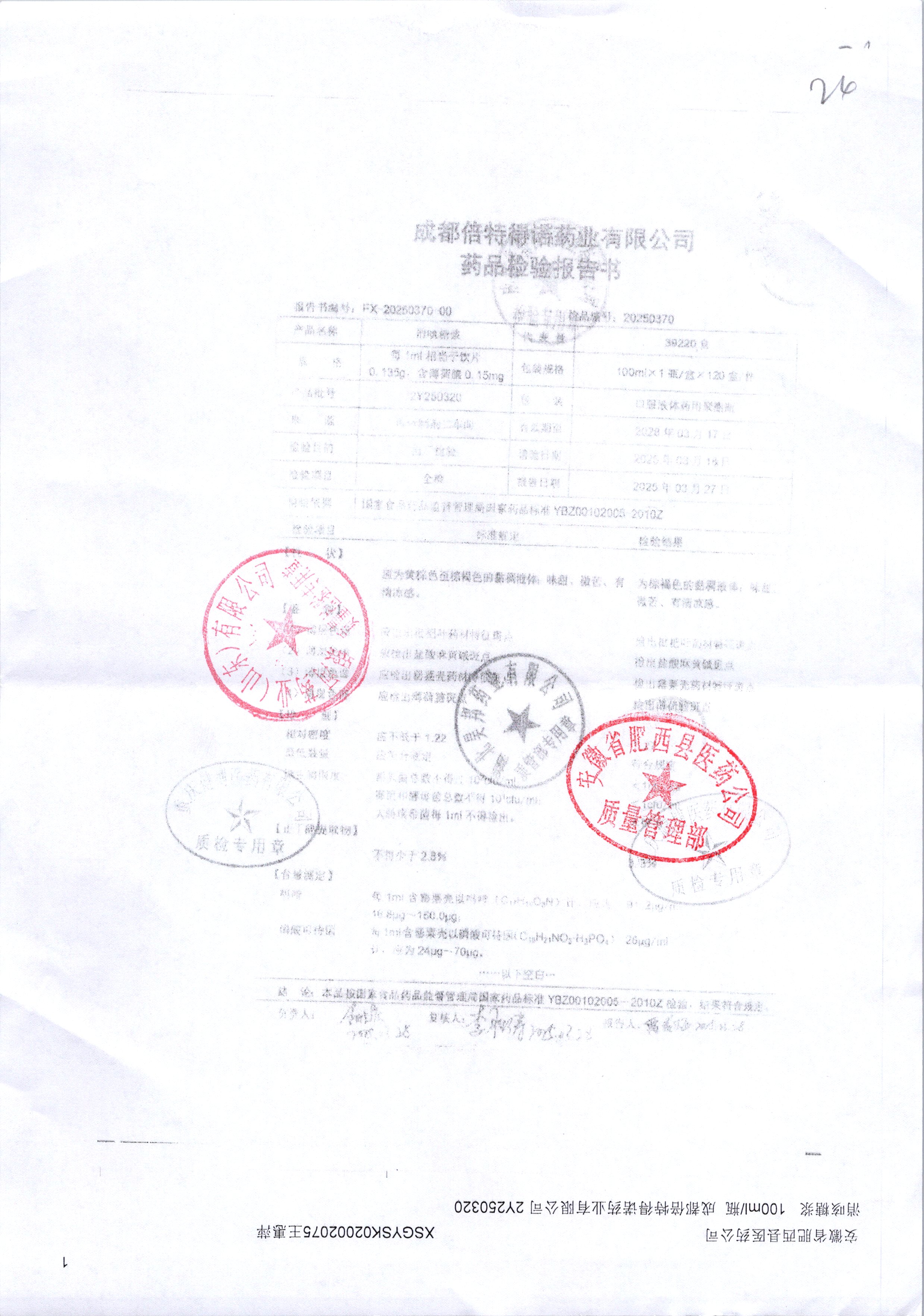 | 消咳糖浆 | 100ml | 2Y241026 | 查看详情 |