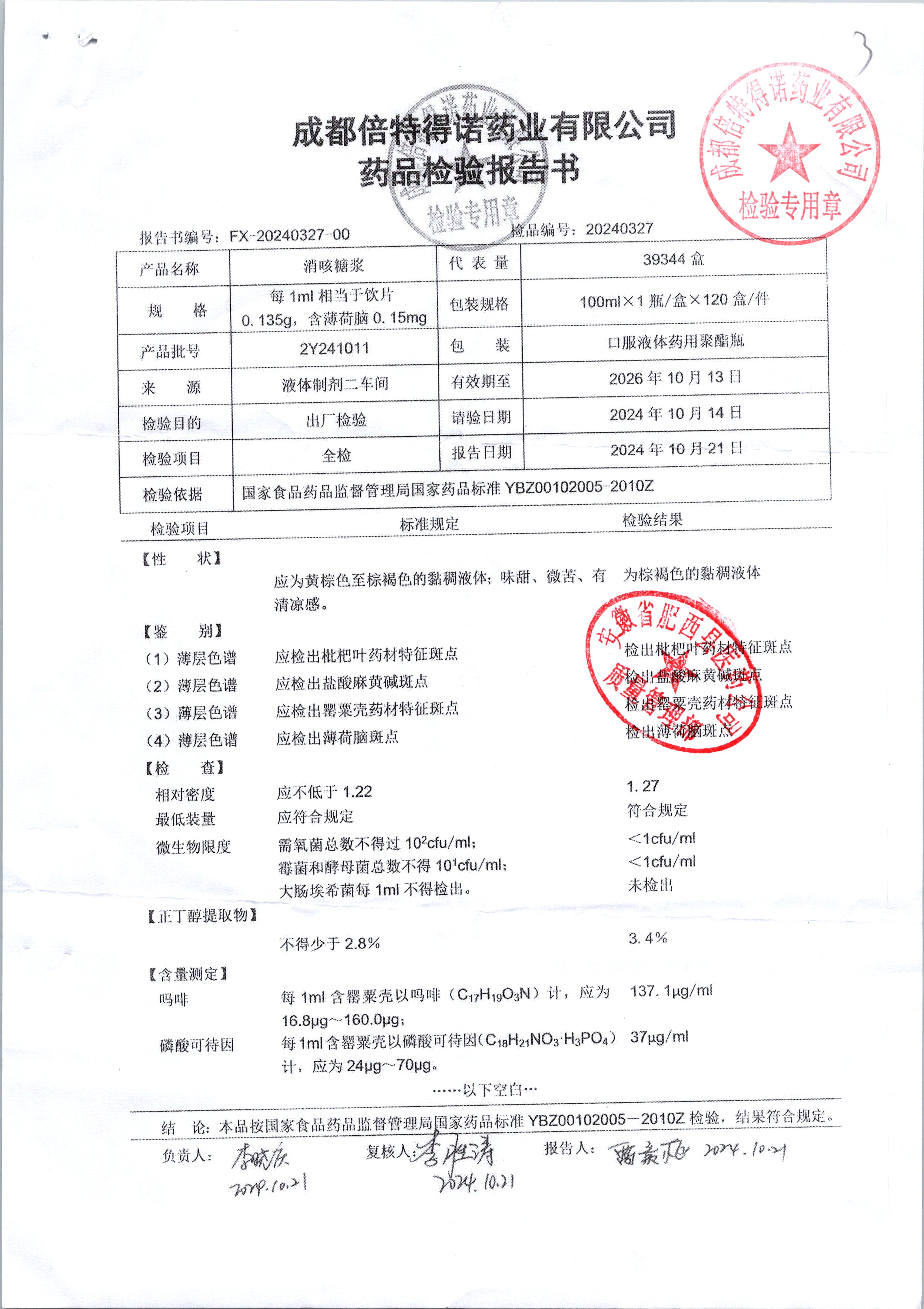 | 消咳糖浆 | 100ml | 2Y241024 | 查看详情 |