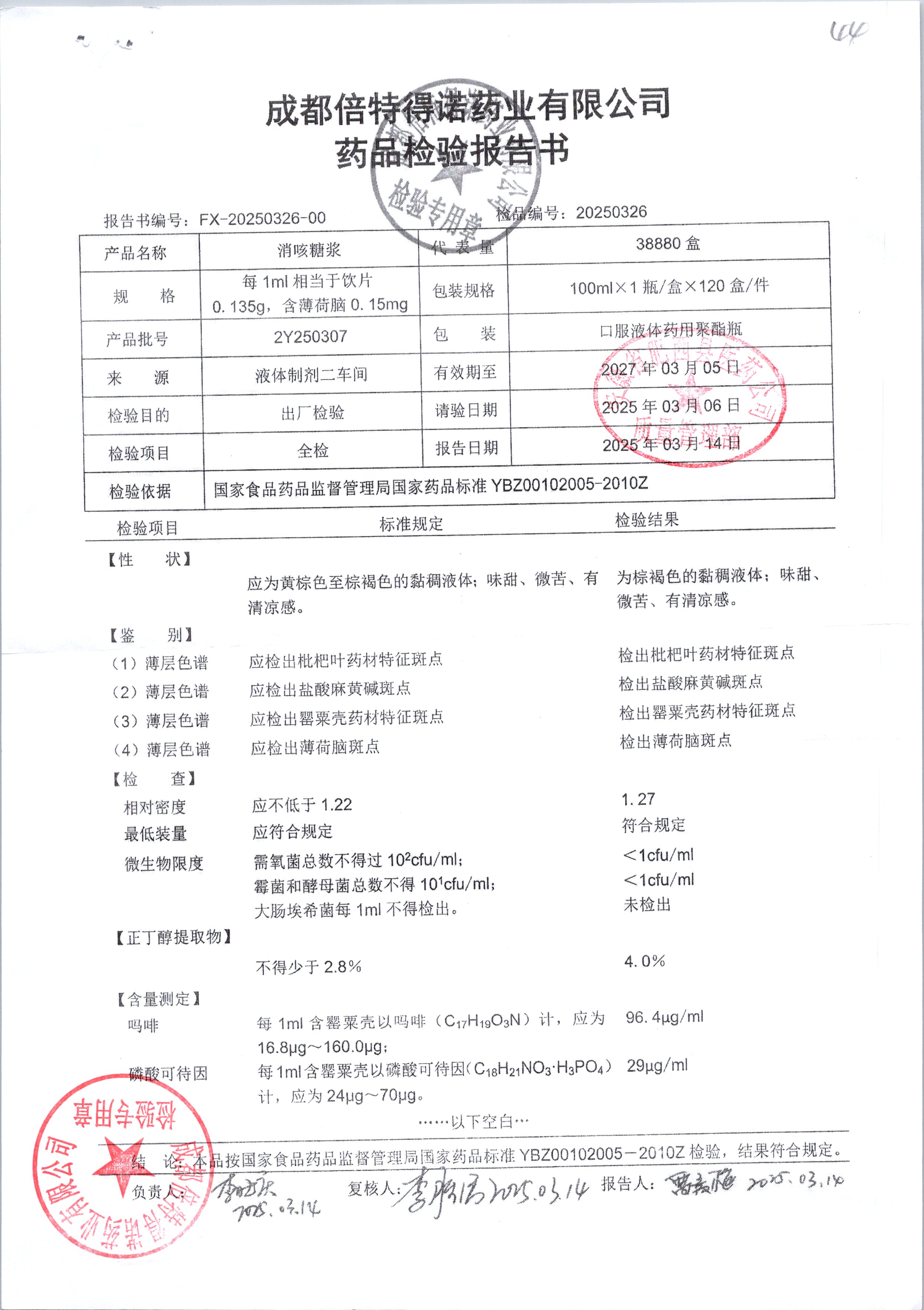 | 消咳糖浆 | 100ml | 2Y240314 | 查看详情 |