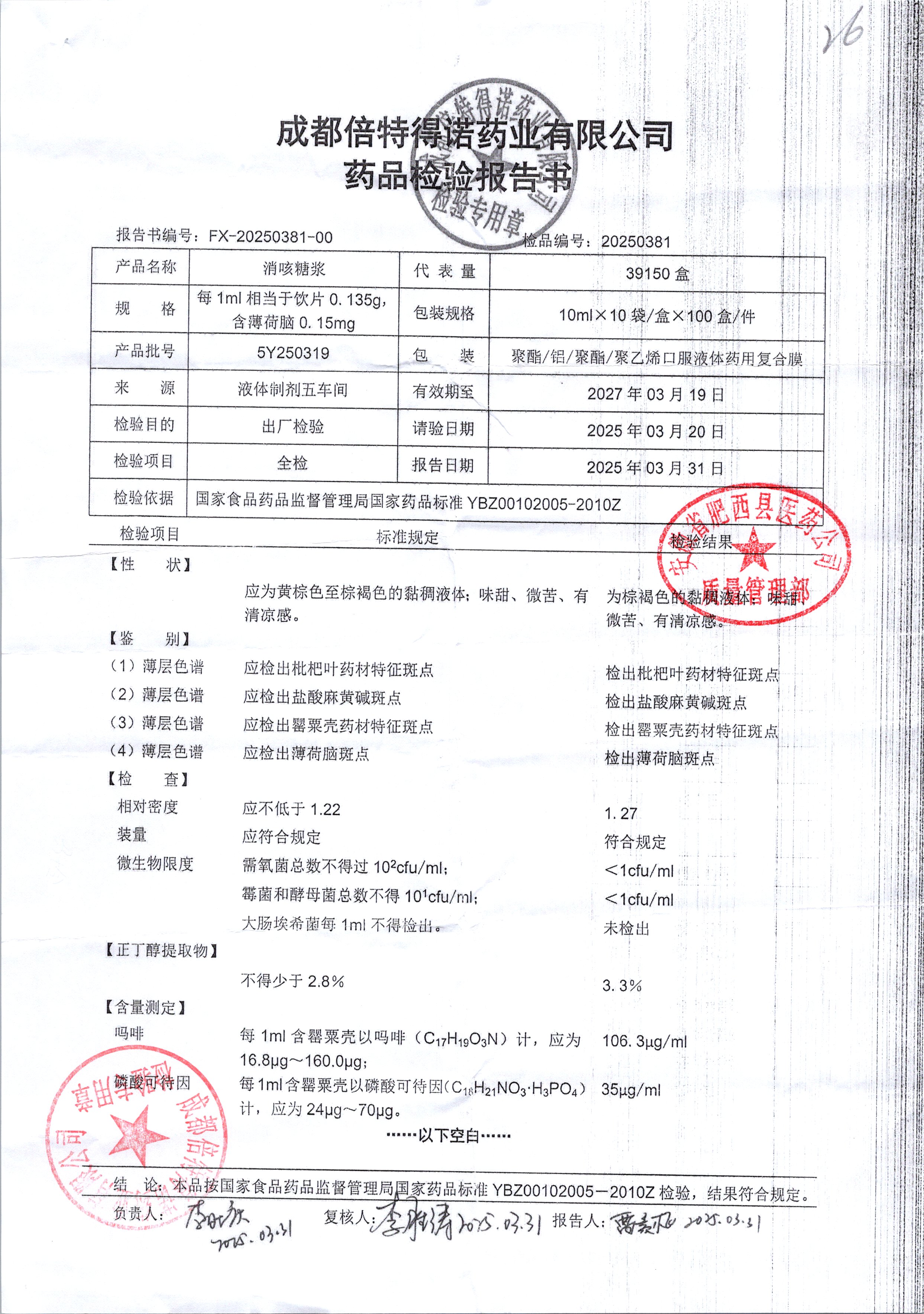 | 消咳糖浆 | 100ml | 2Y250319 | 查看详情 |