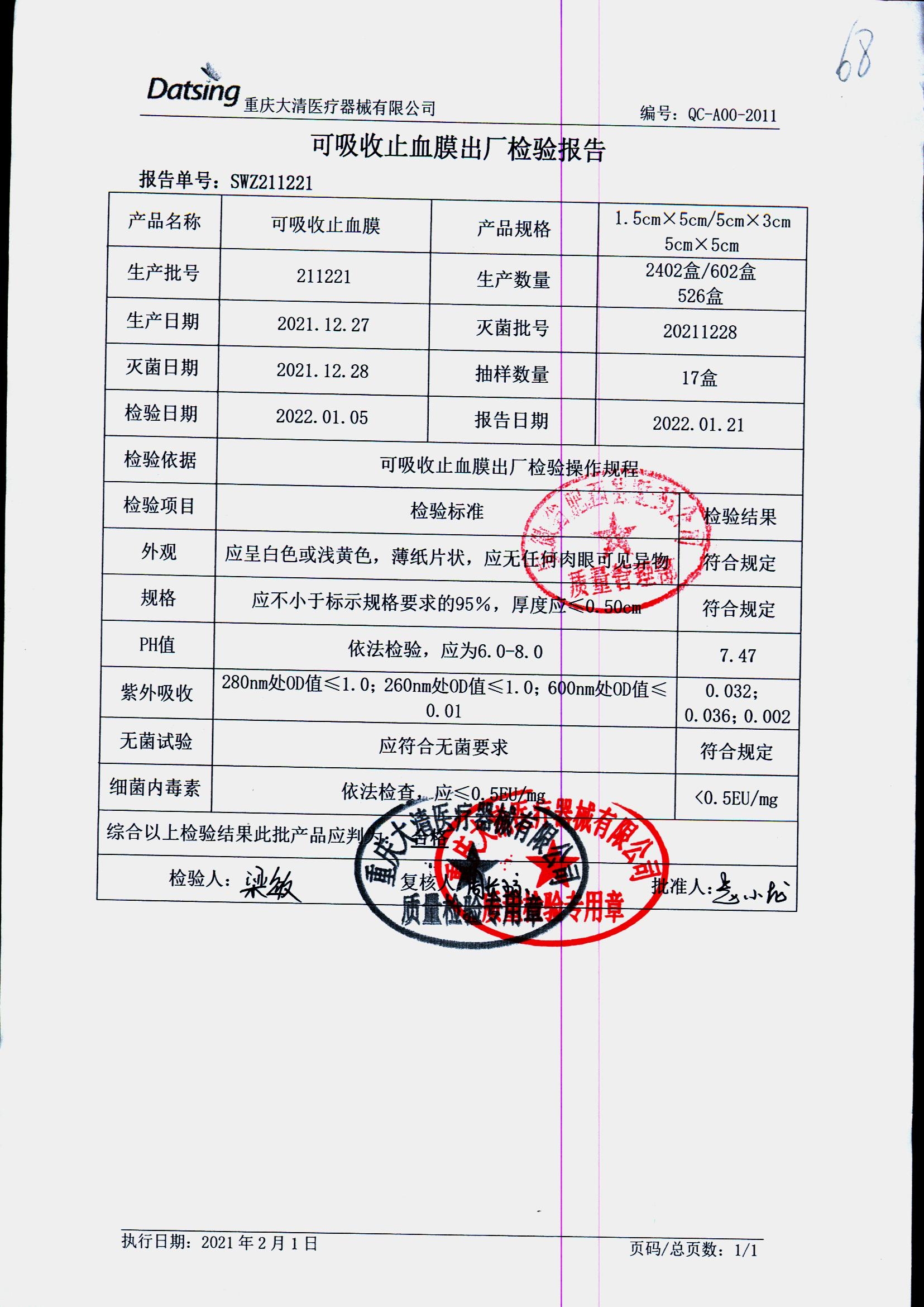 药检报告