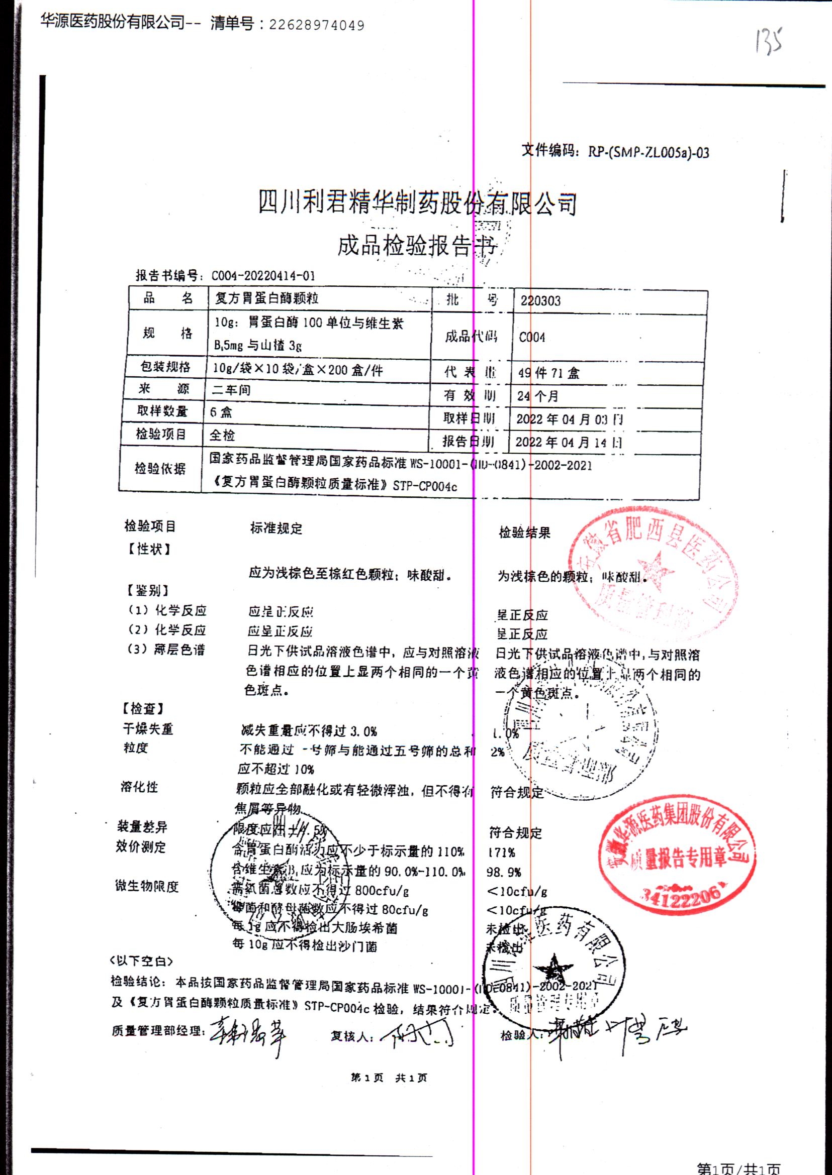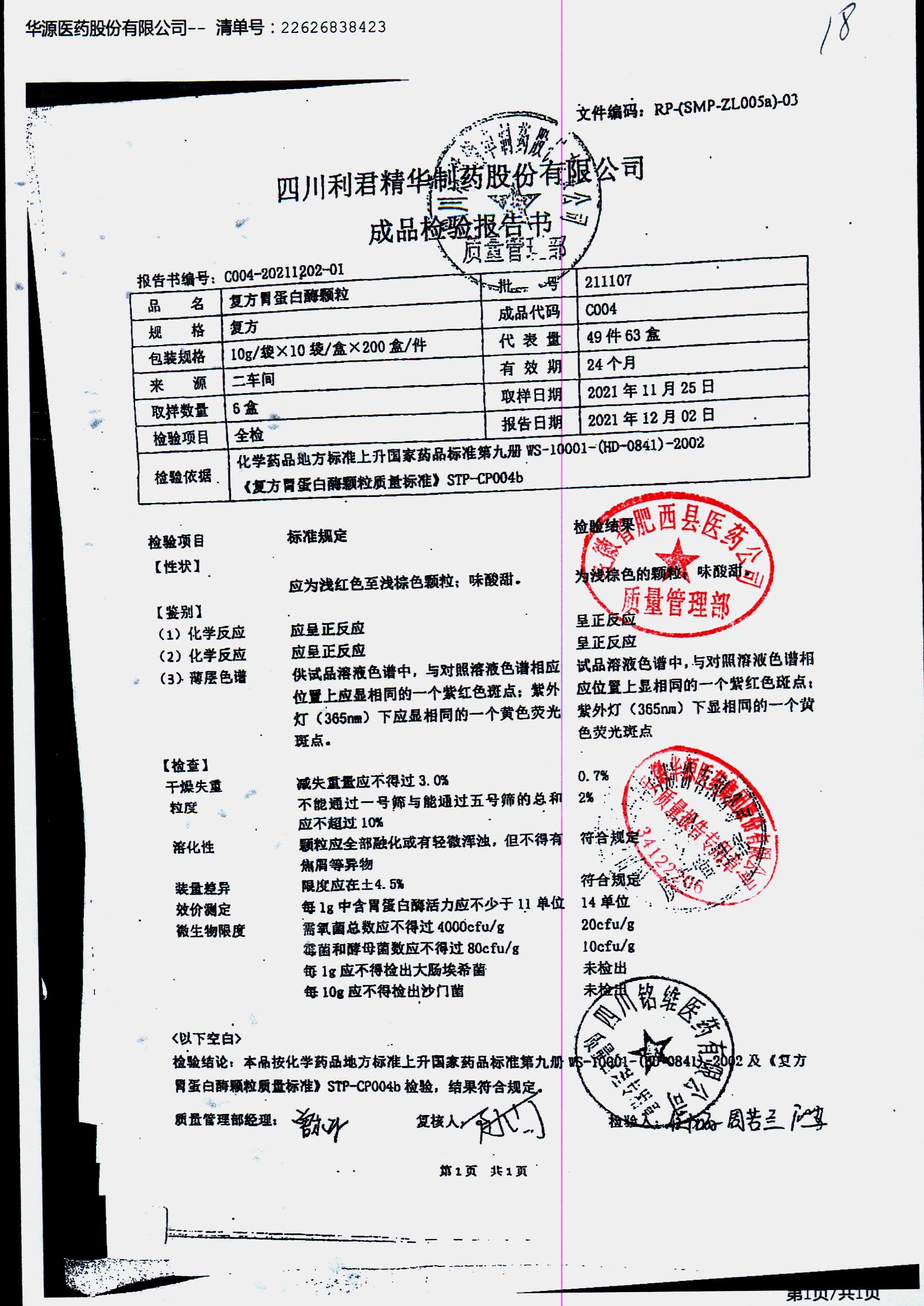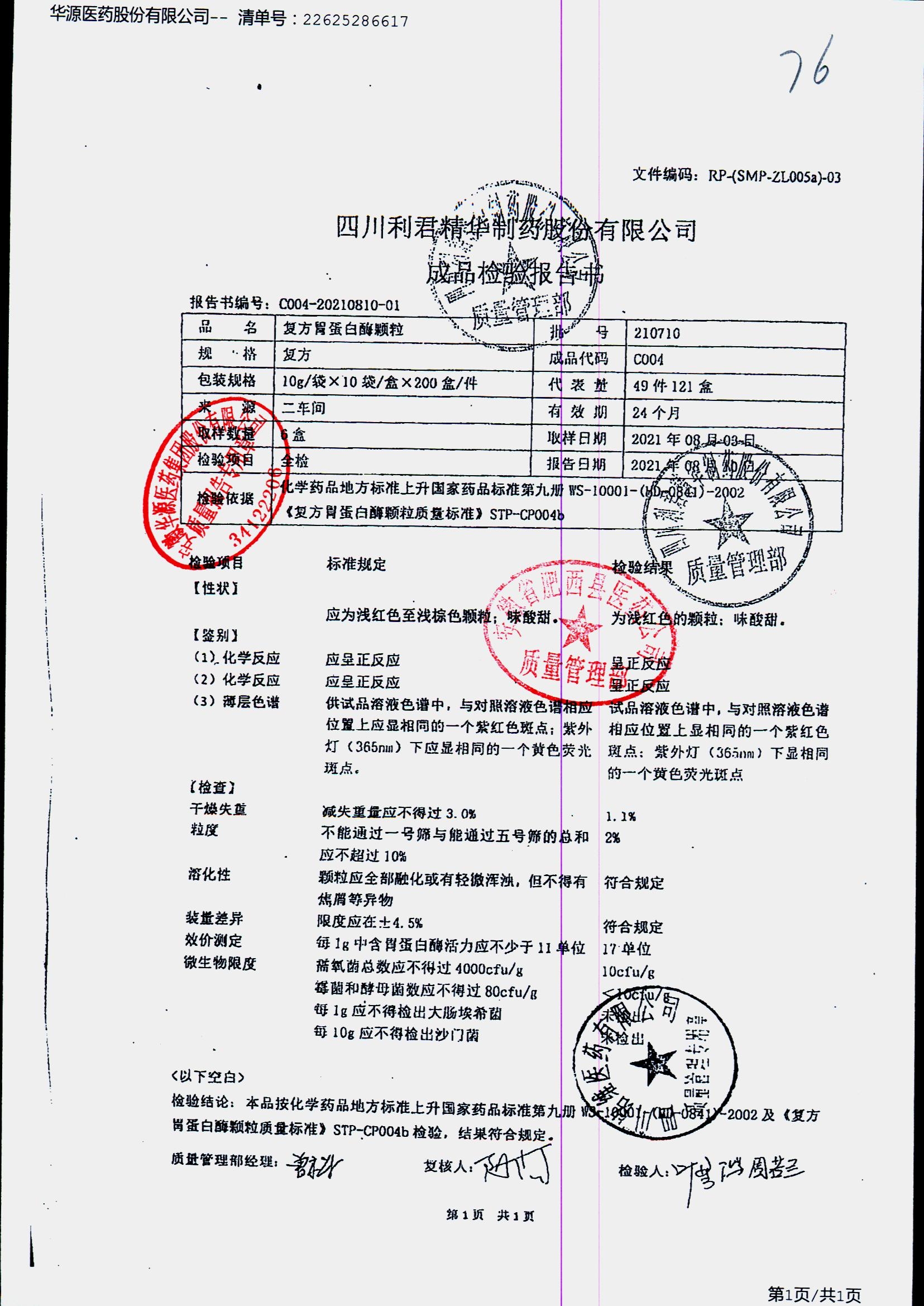 药检报告