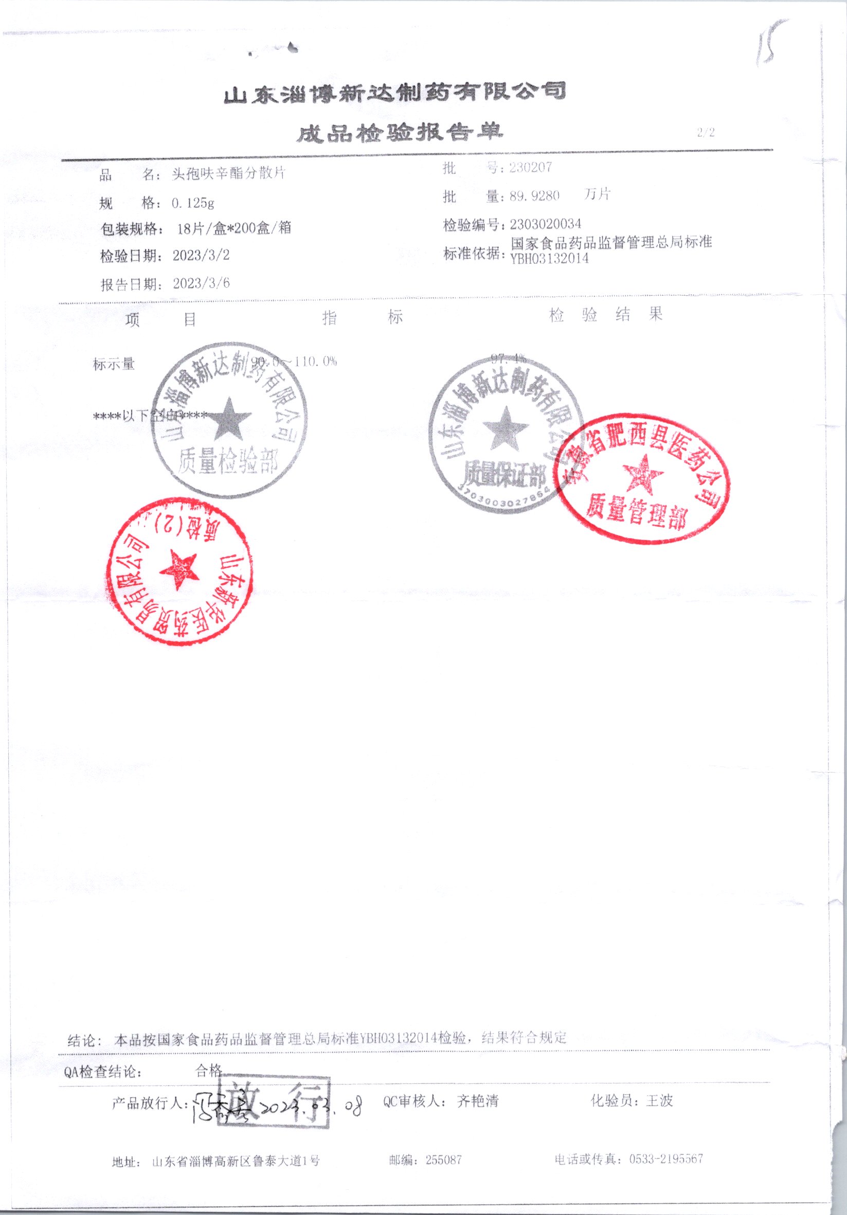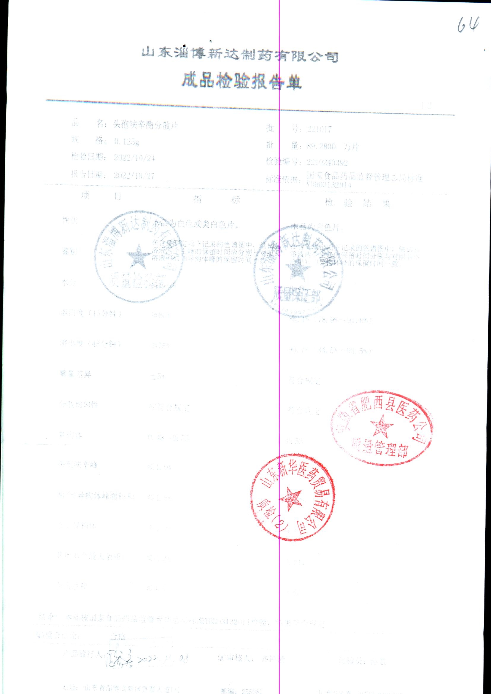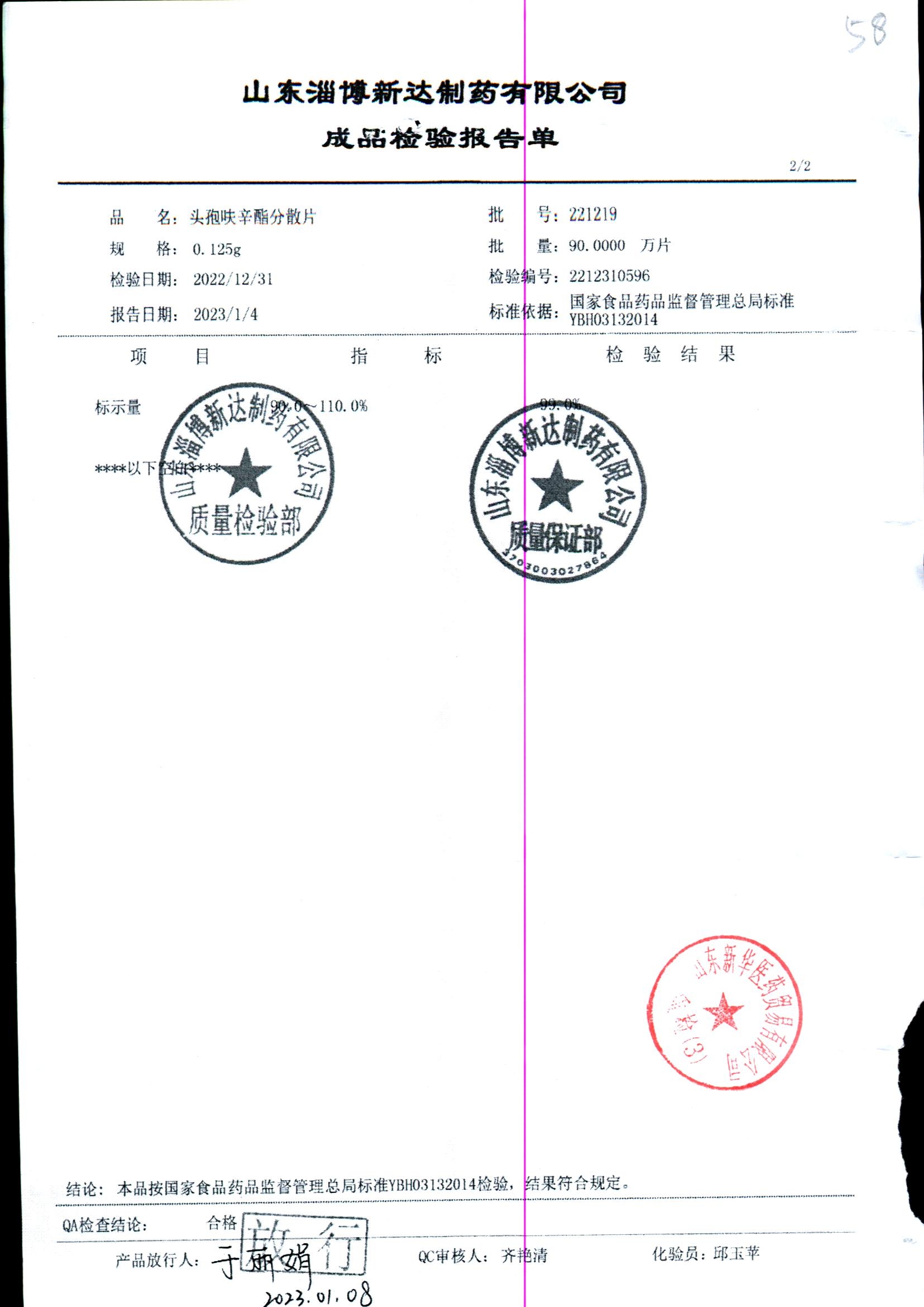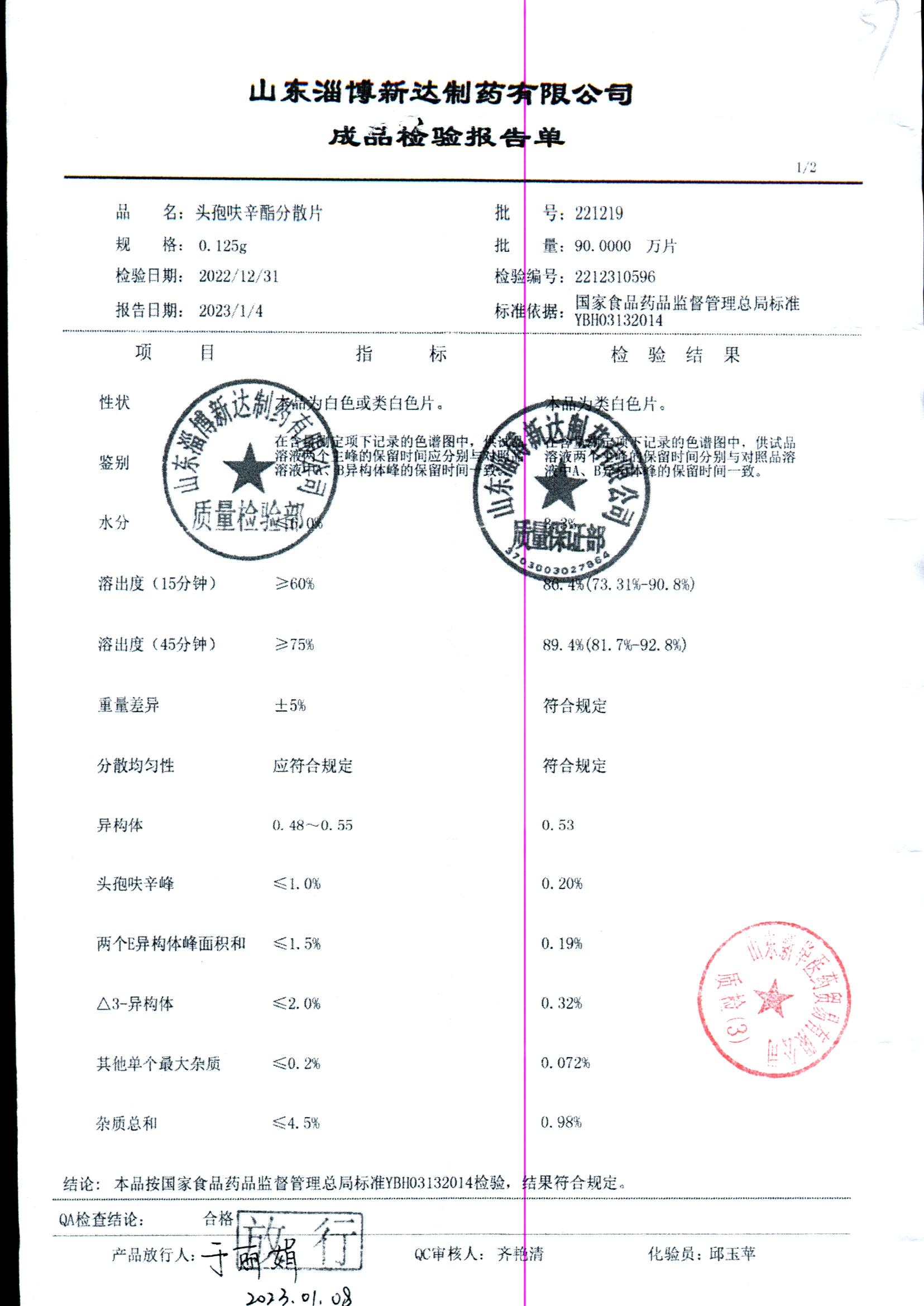 头孢呋辛酯分散片 | 0.125g | 230207/2 | 查看详情 |