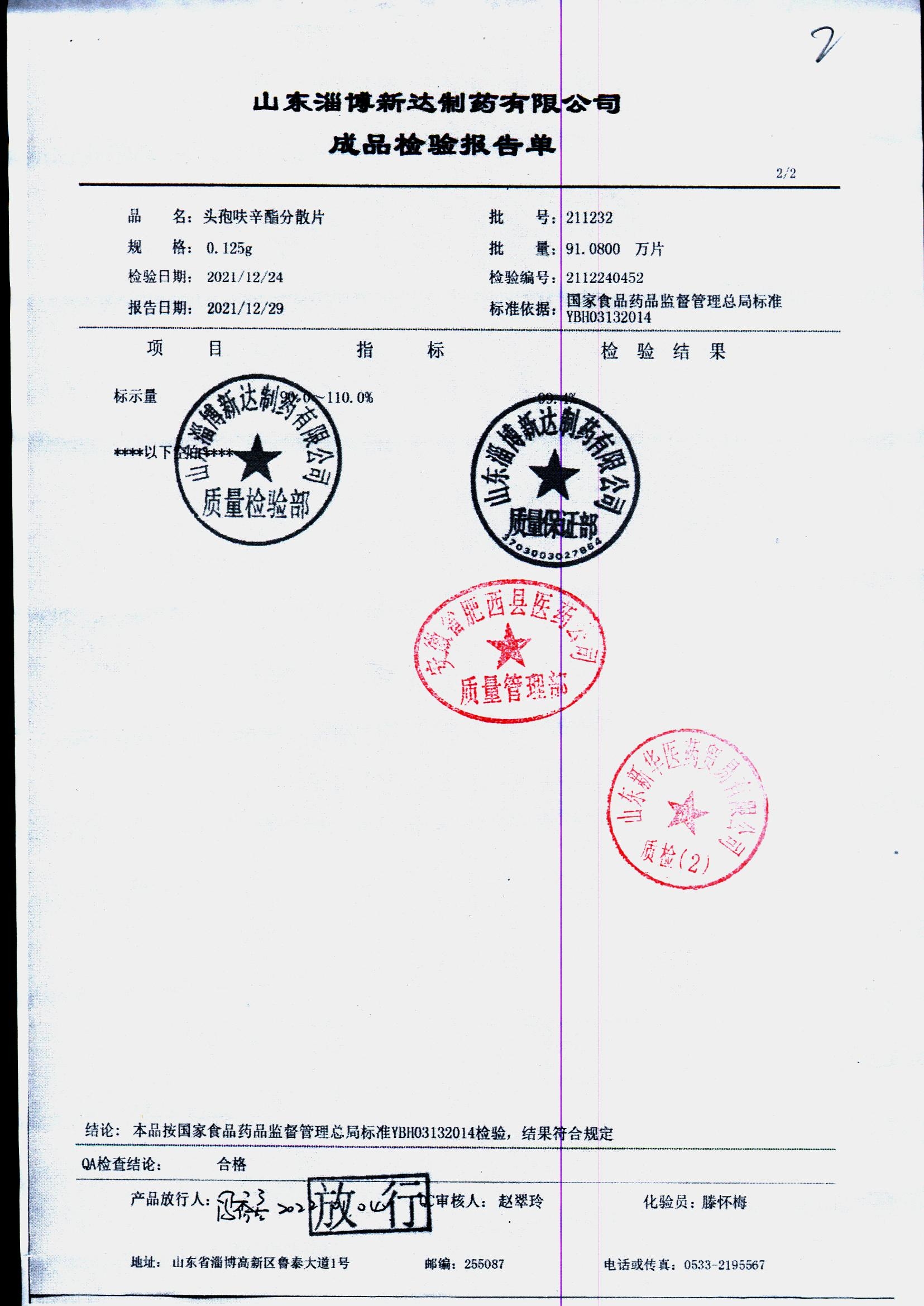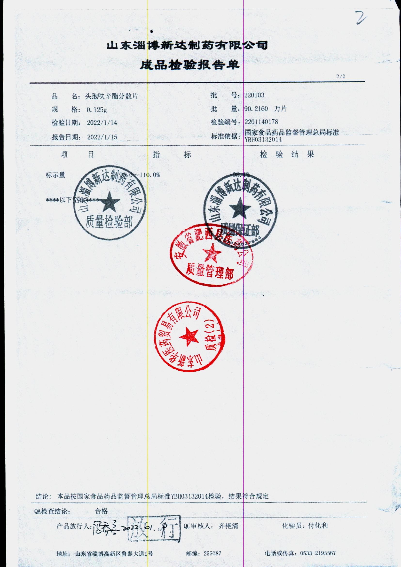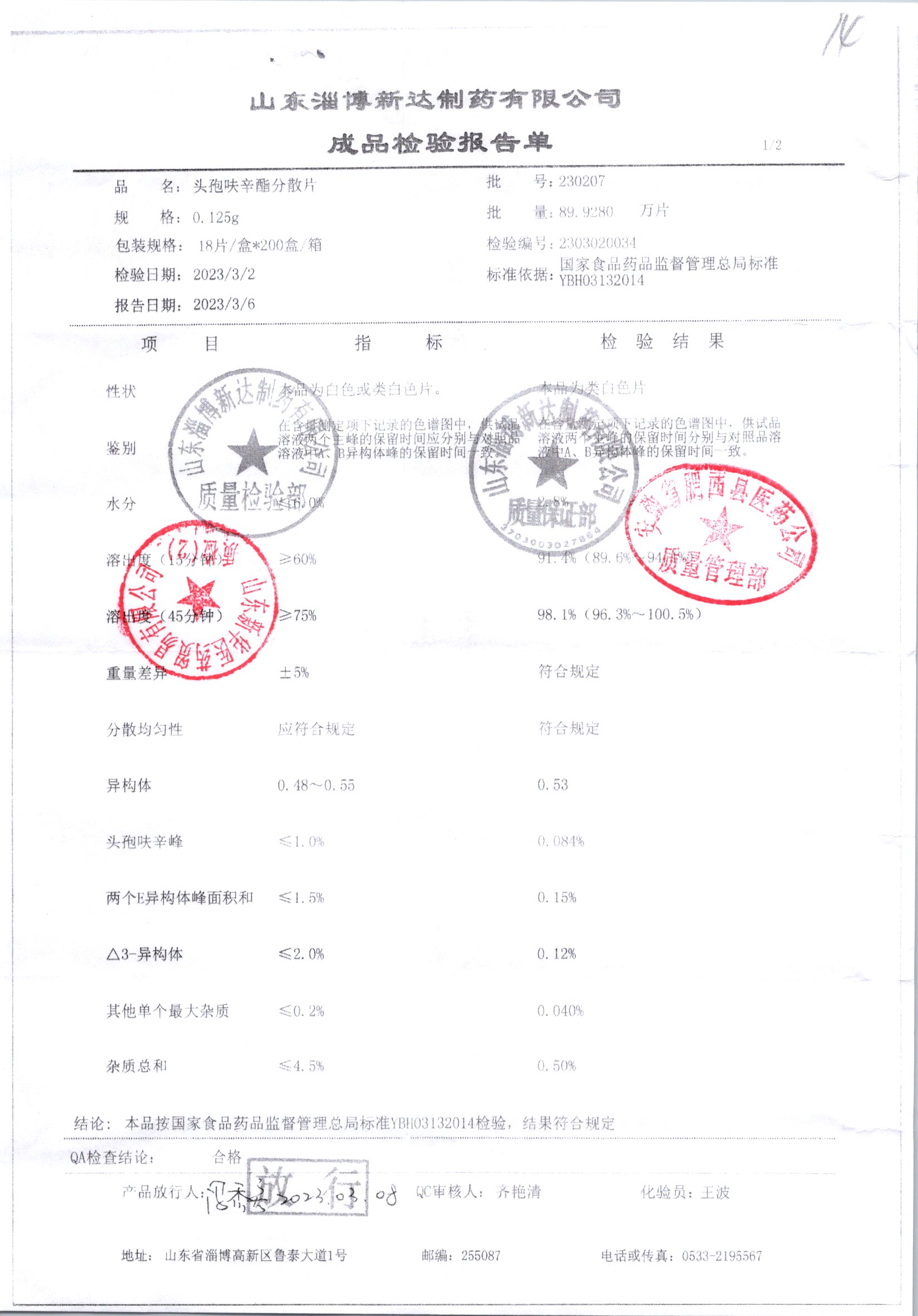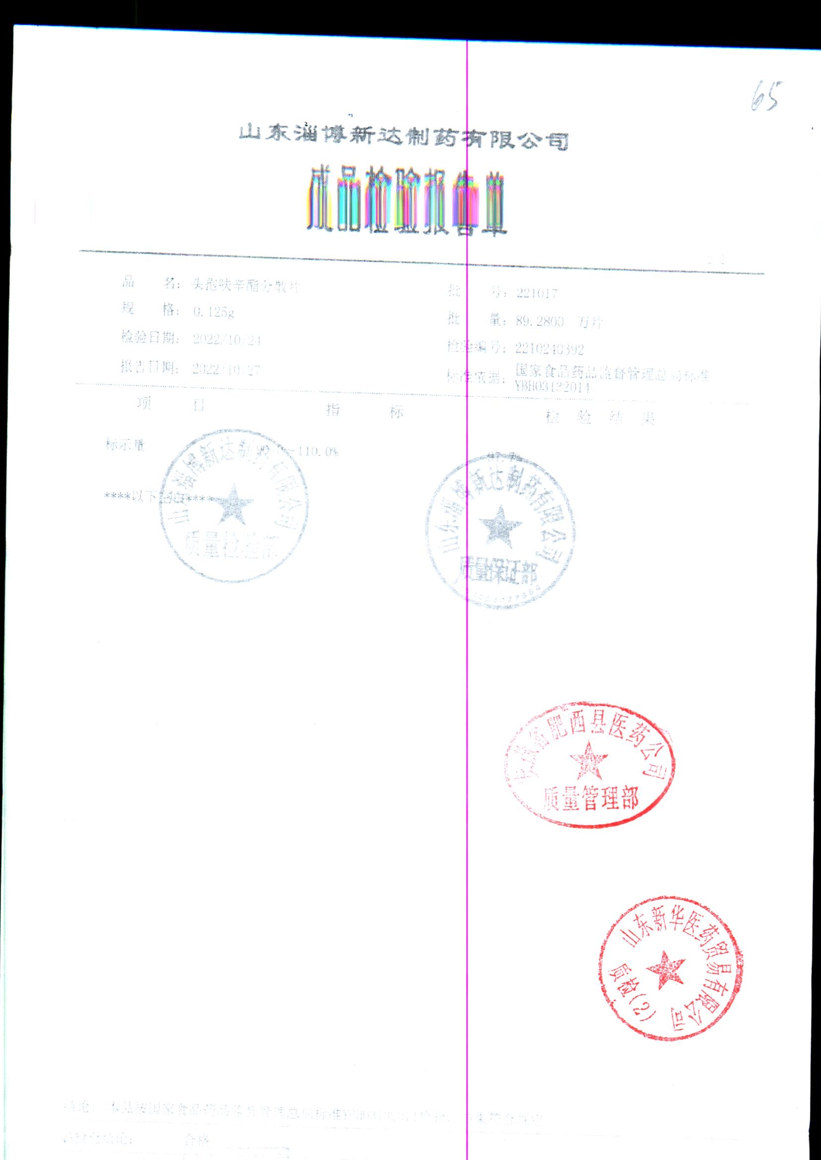 头孢呋辛酯分散片 | 0.125g | 230206/2 | 查看详情 |