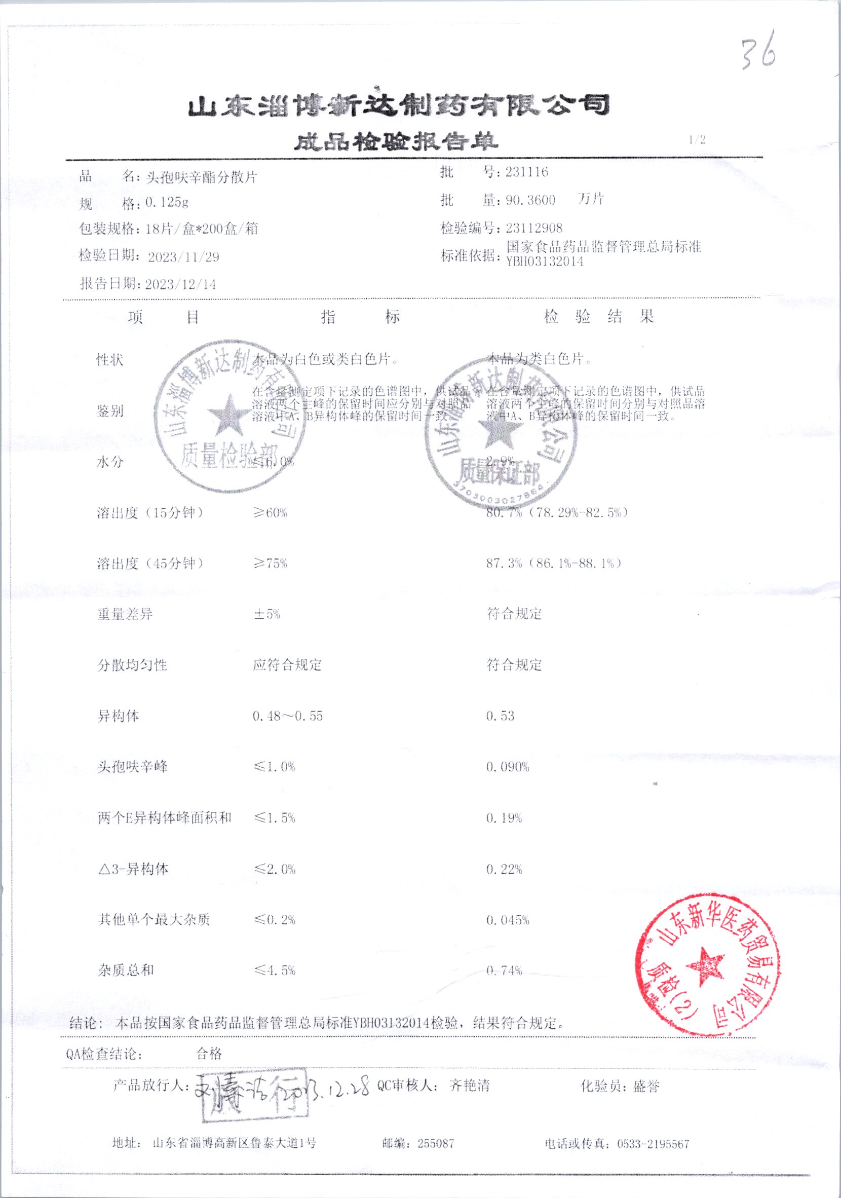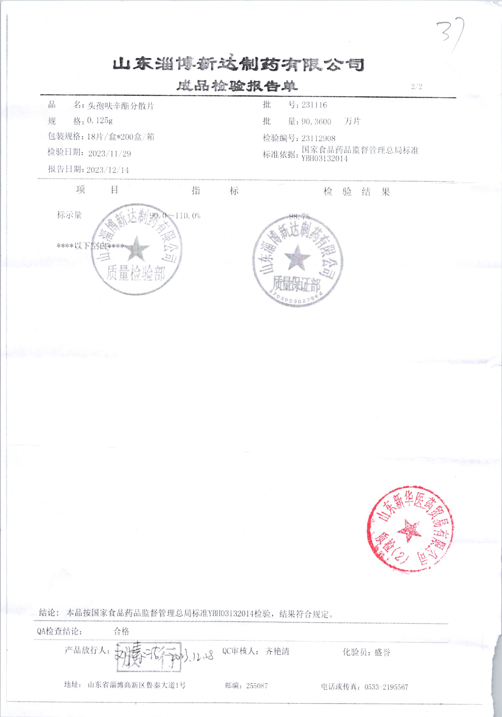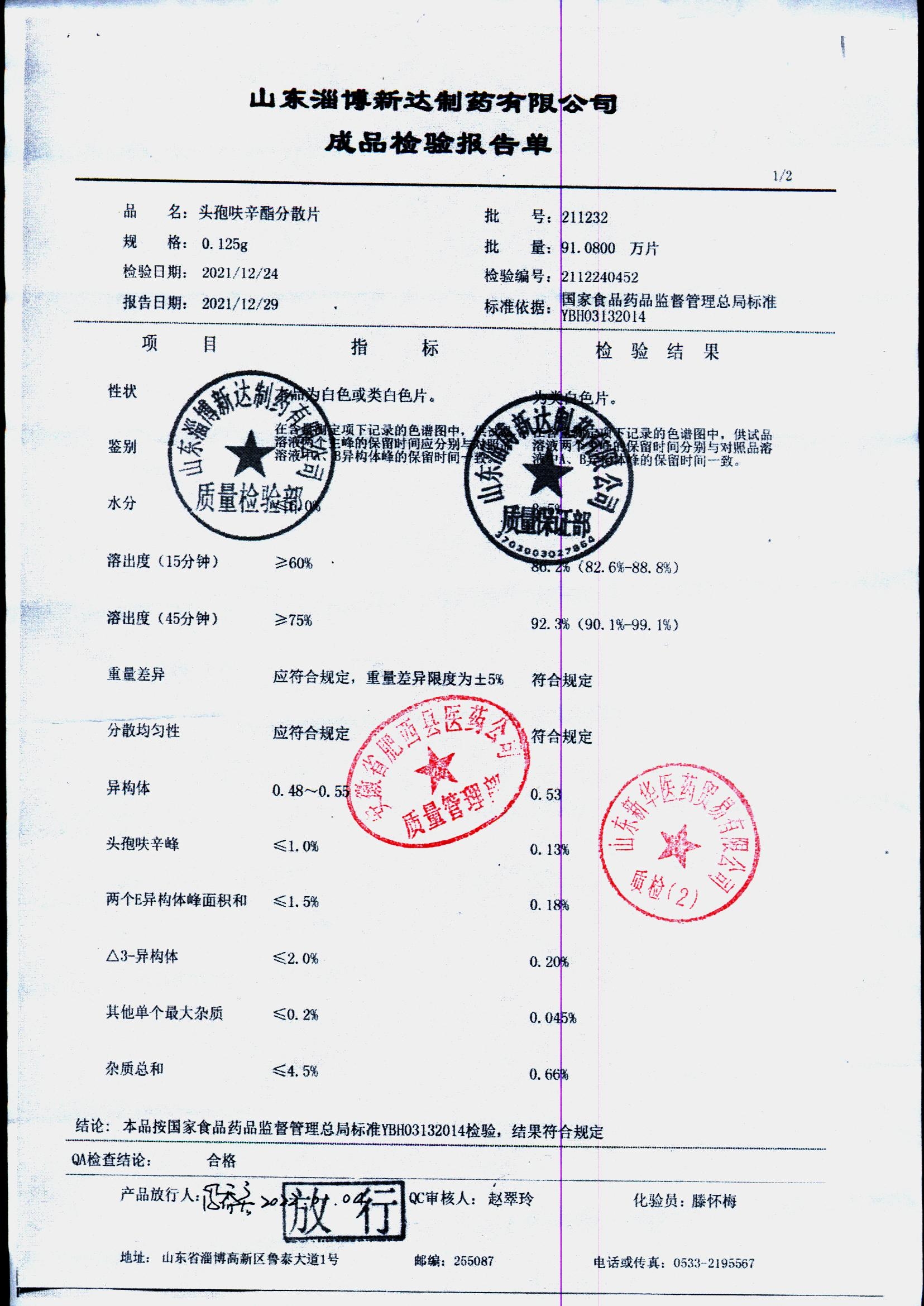 头孢呋辛酯分散片 | 0.125g | 231116/2 | 查看详情 |