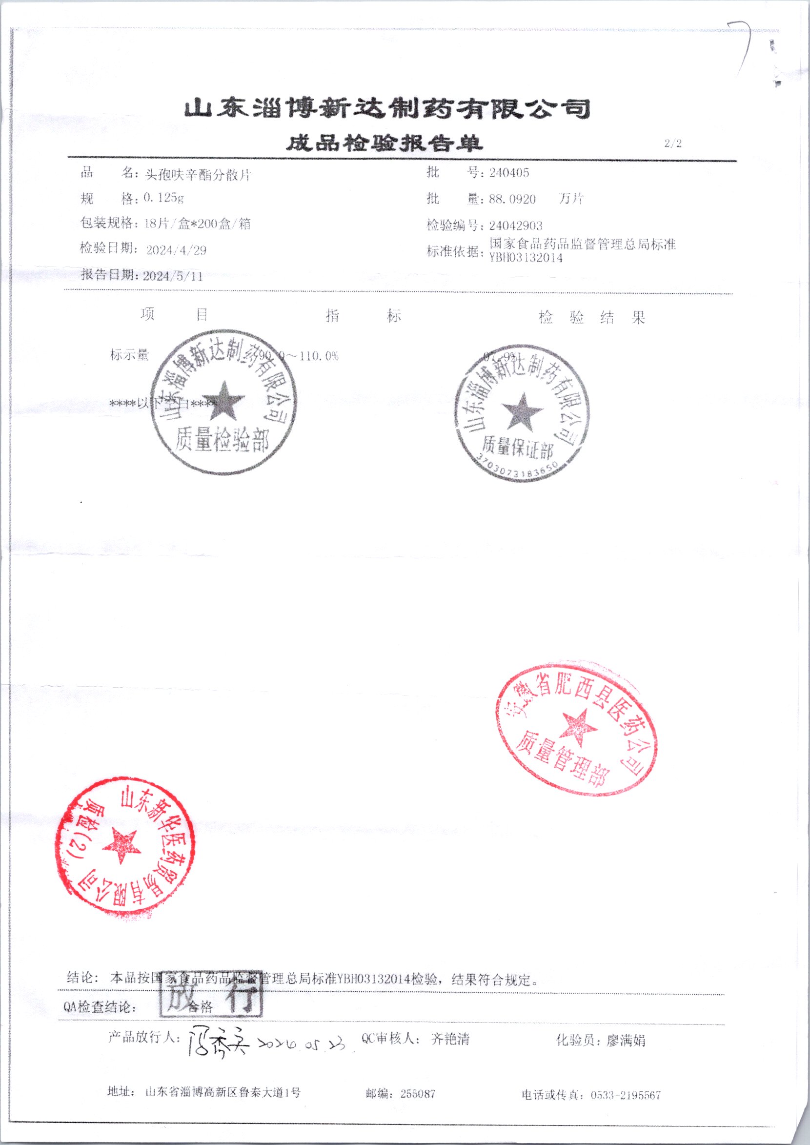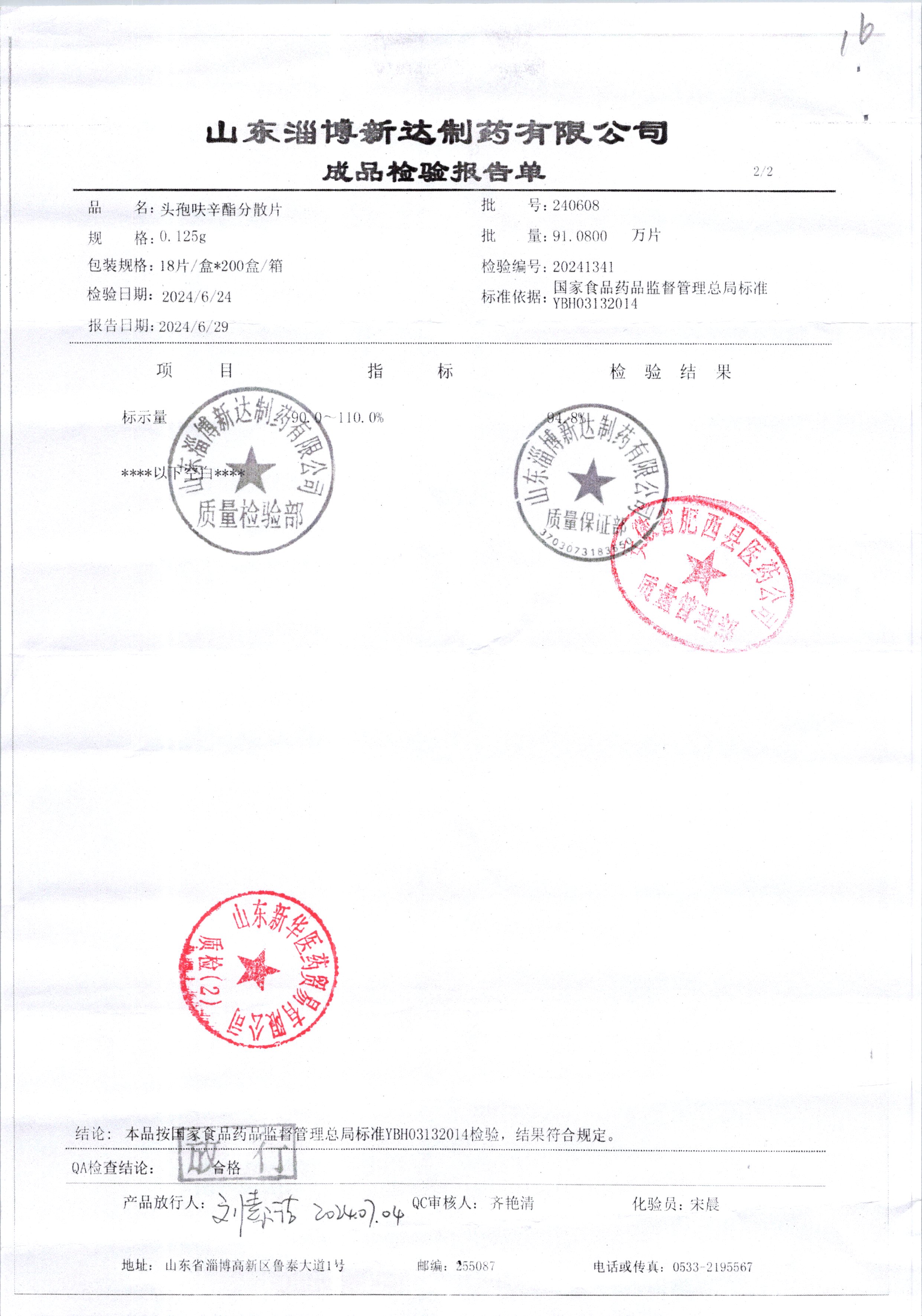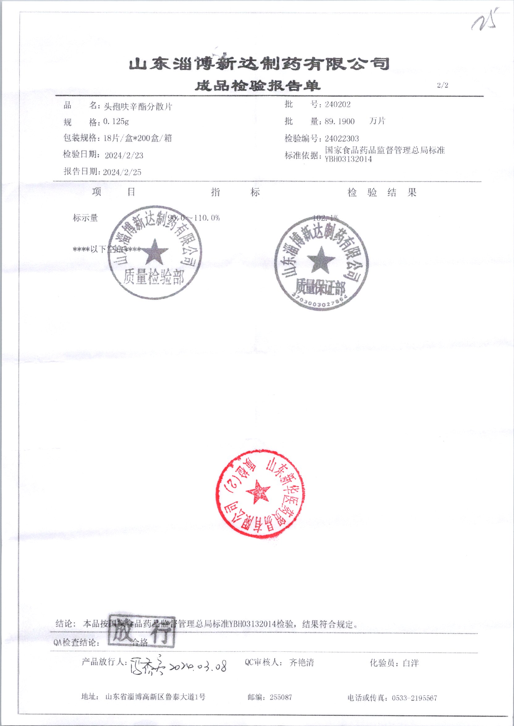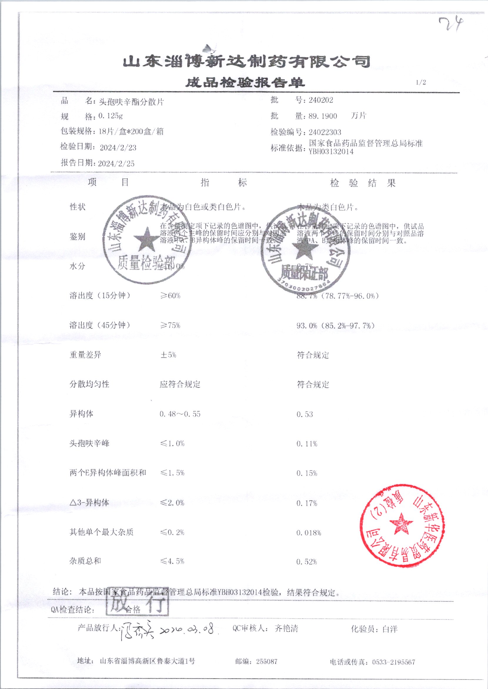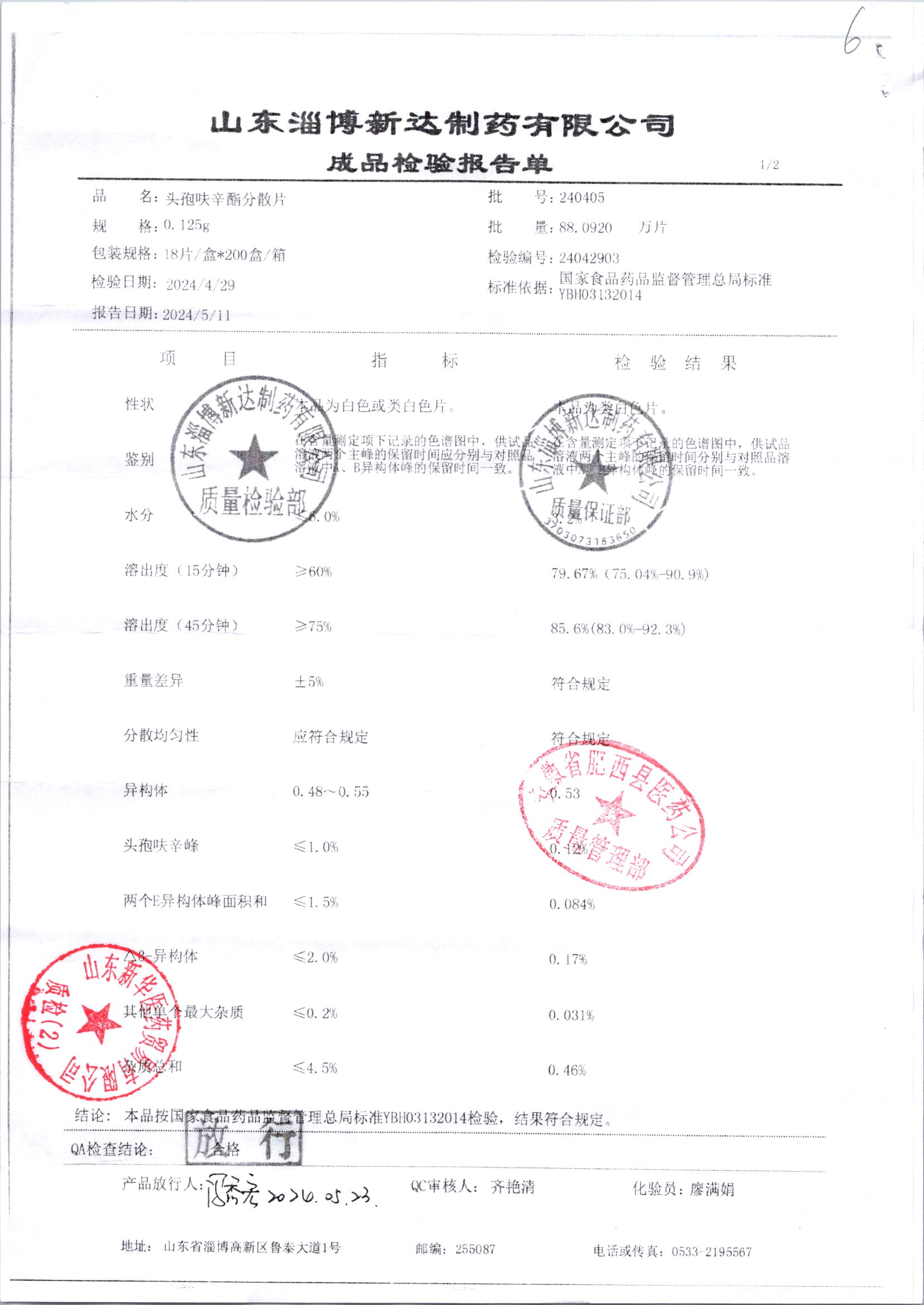 头孢呋辛酯分散片 | 0.125g | 240608/2 | 查看详情 |