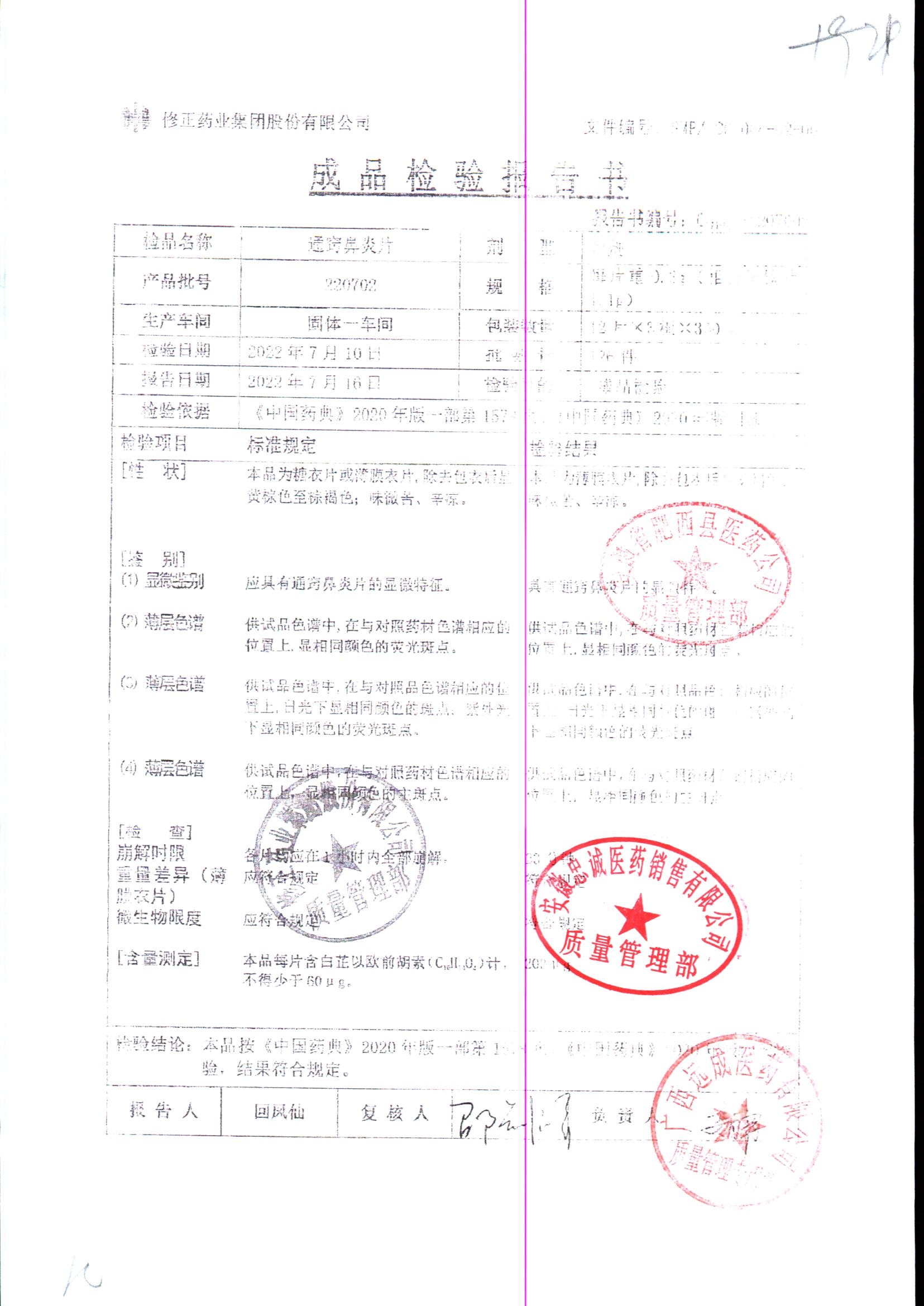 通窍鼻炎片 | 0.3g*12片*3板 | 220707 | 查看详情 |