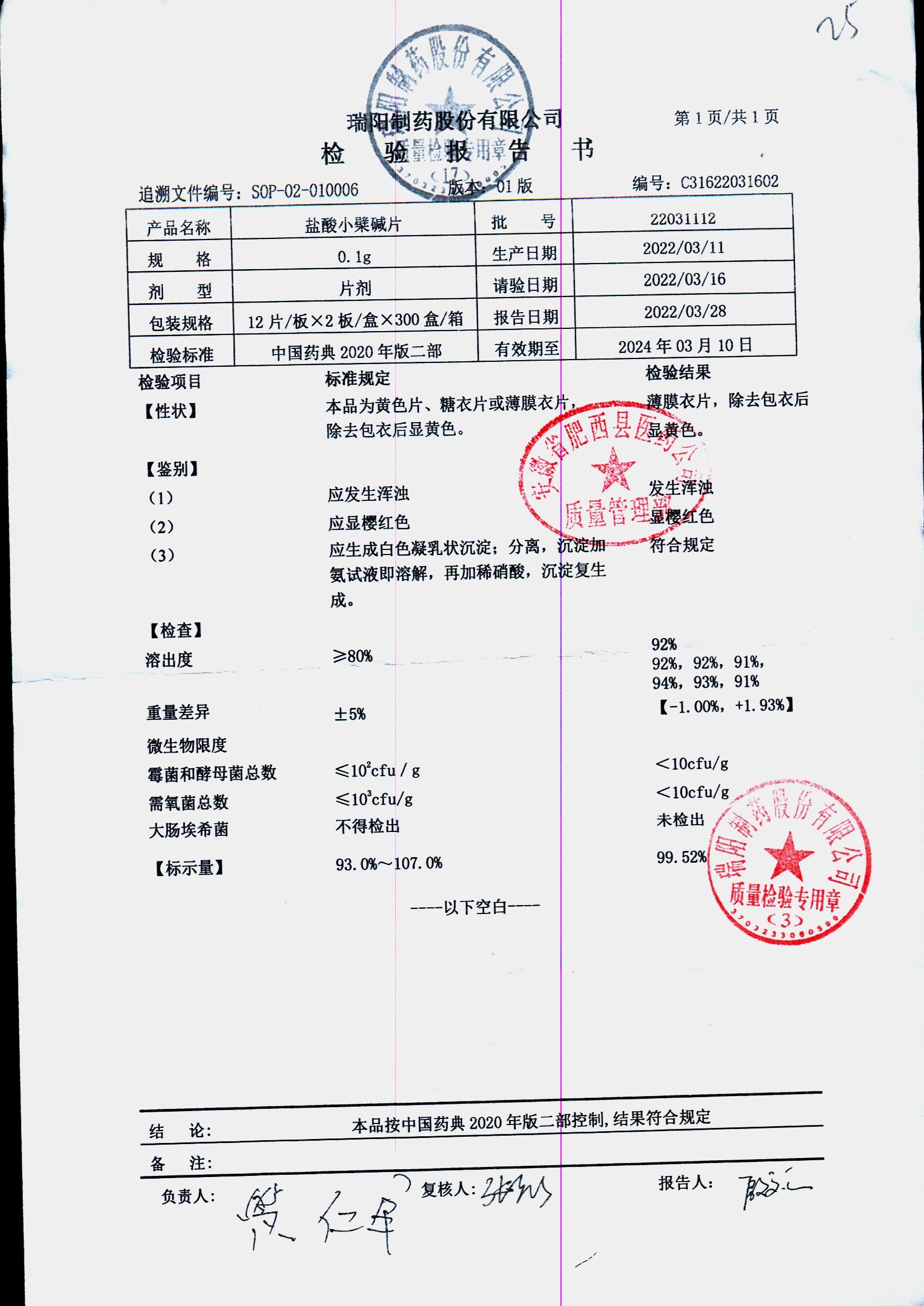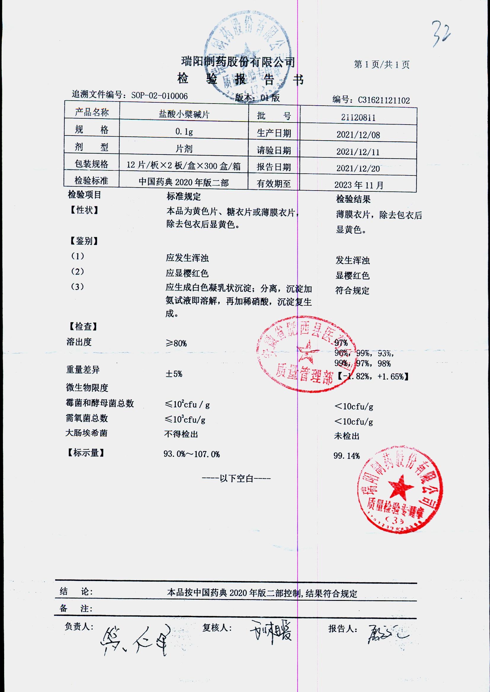 药检报告