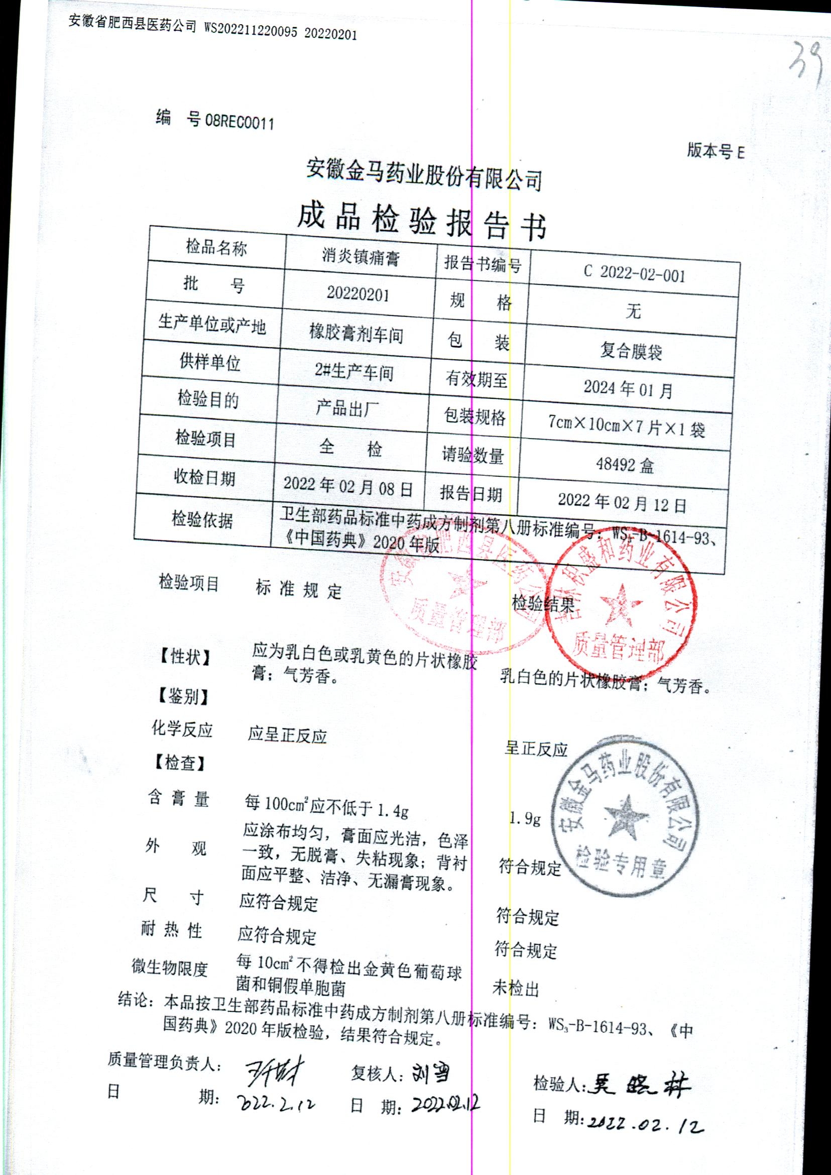 消炎镇痛膏 | 7cmx10cmx7片 | 20220201 | 查看详情 |