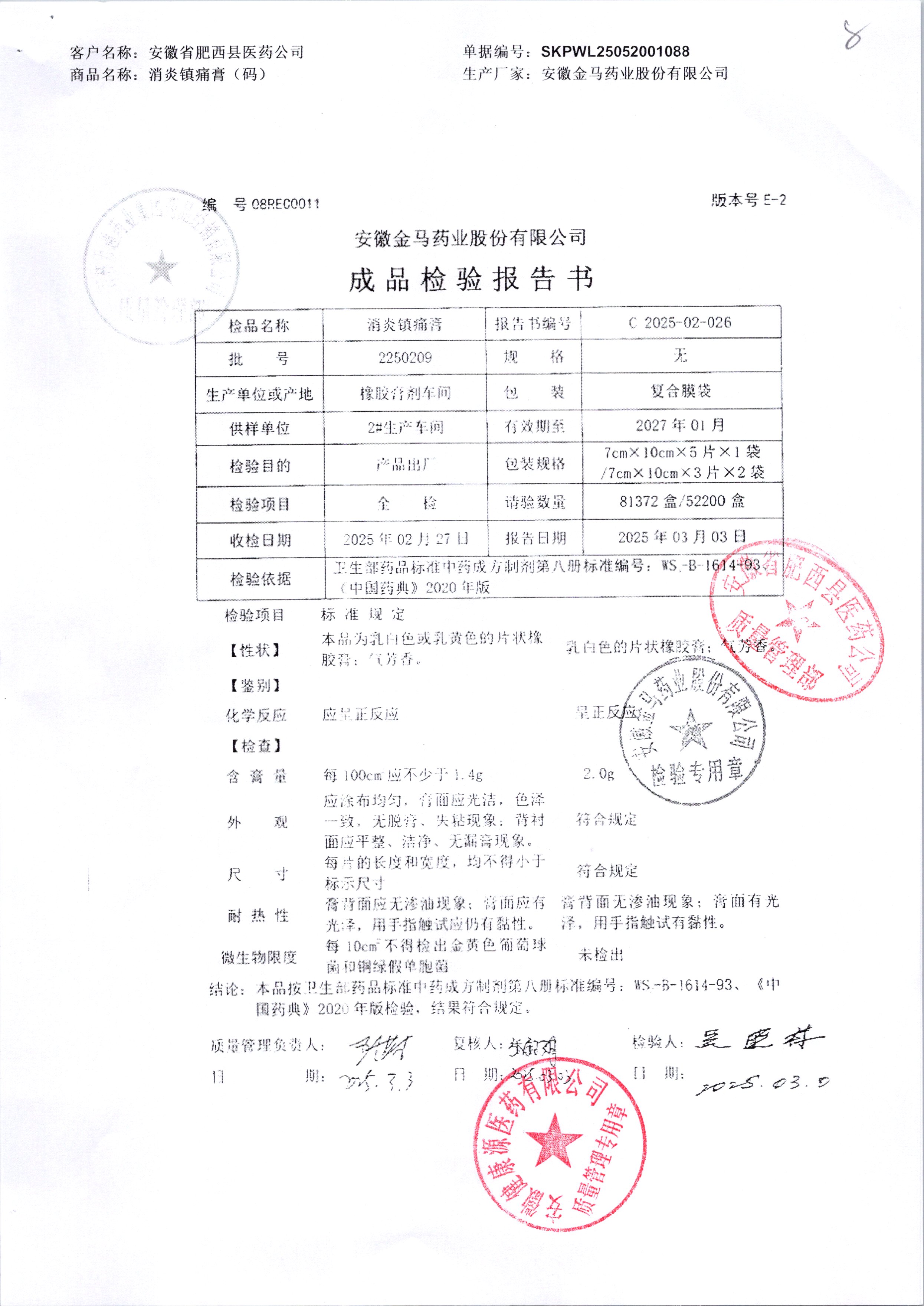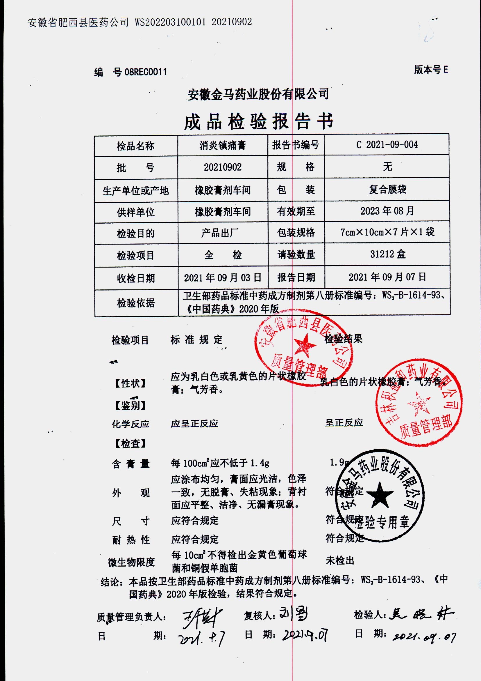 消炎镇痛膏 | 7cmx10cmx7片 | 20210902 | 查看详情 |