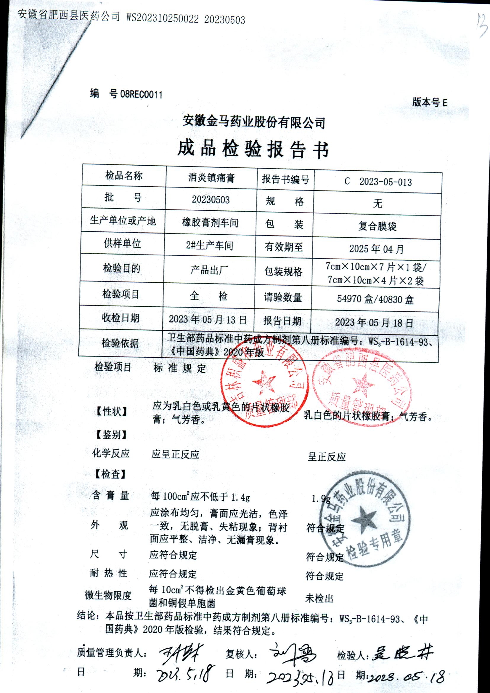 消炎镇痛膏 | 7cmx10cmx7片 | 20230503 | 查看详情 |
