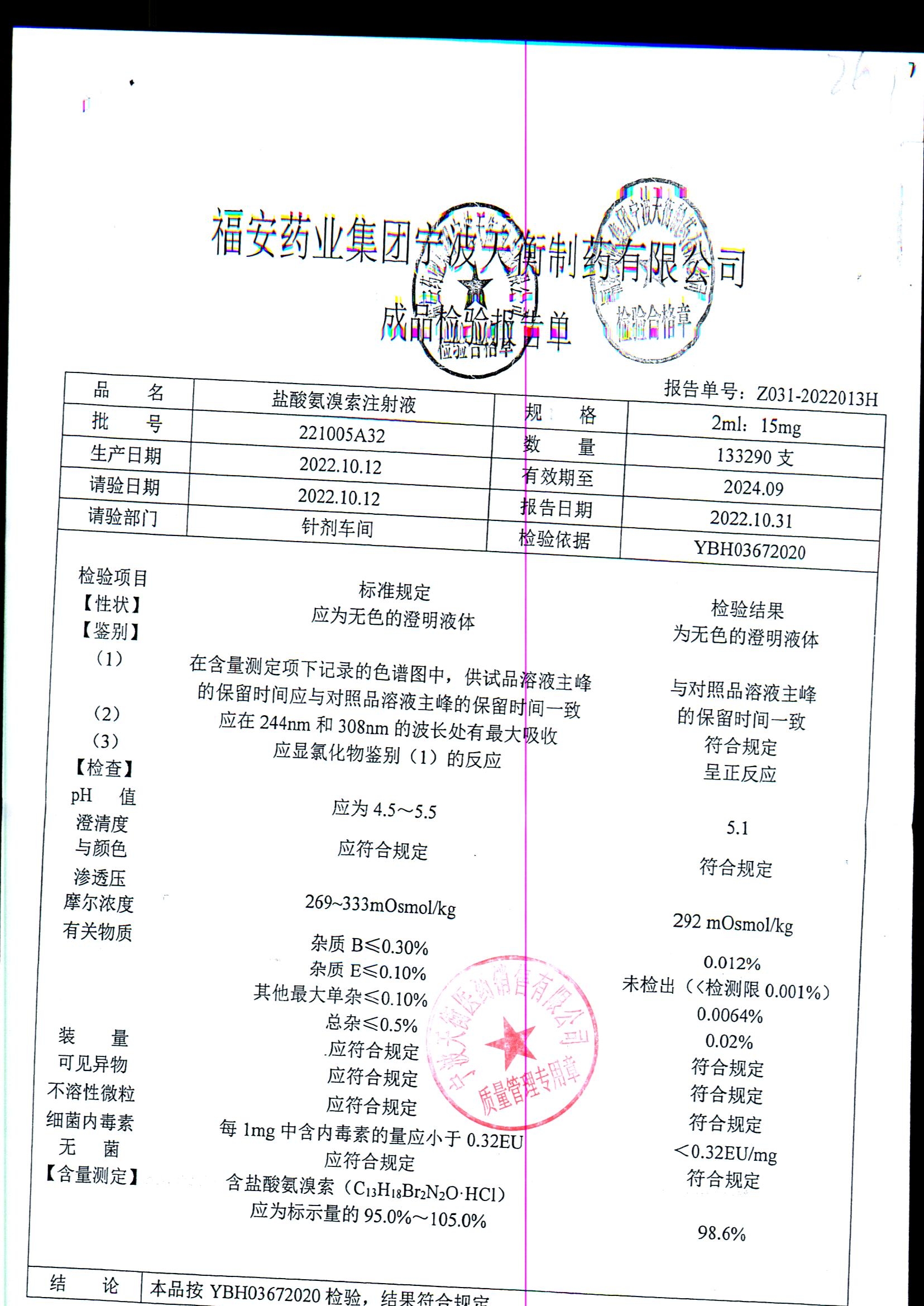 盐酸氨溴索注射液 | 2ml:15mg | 221005A32 | 查看详情 |