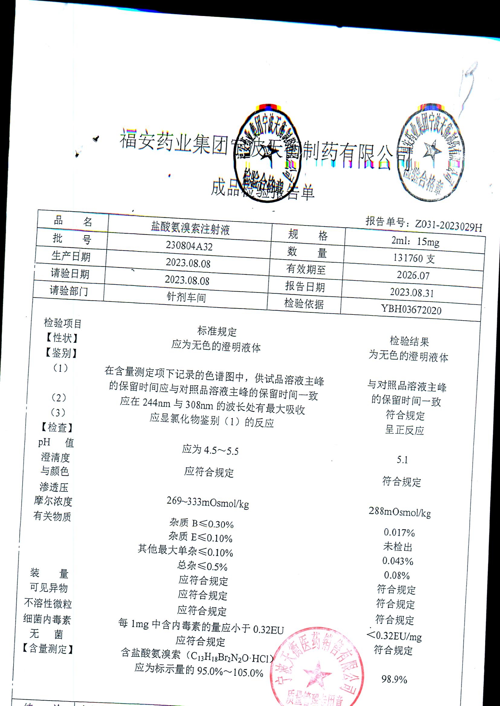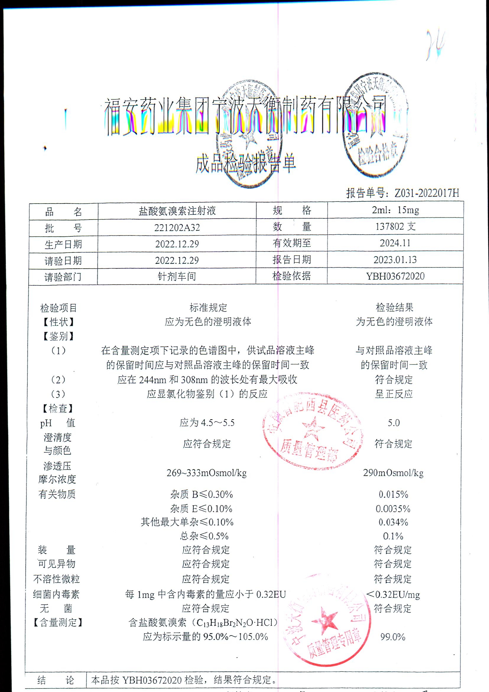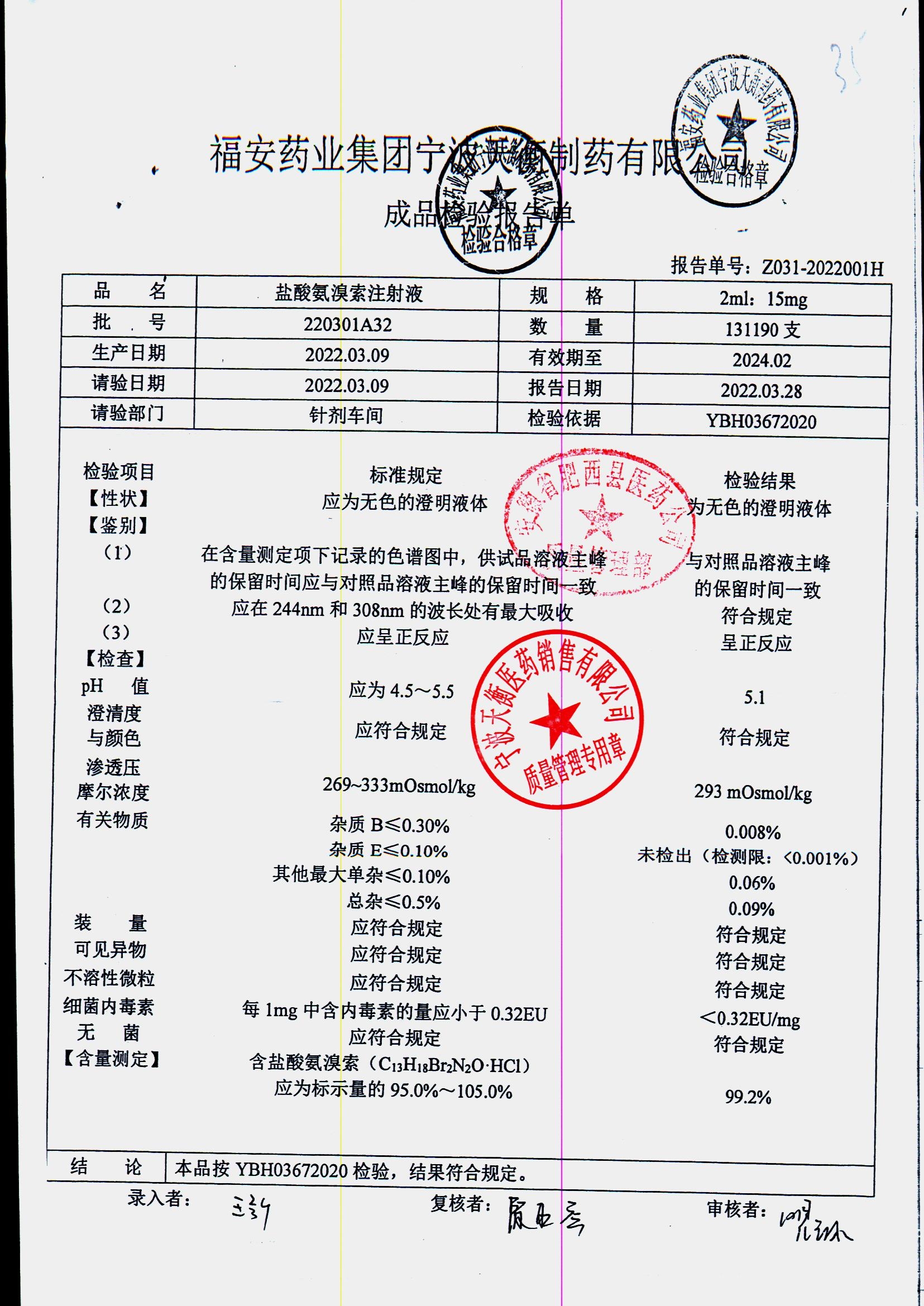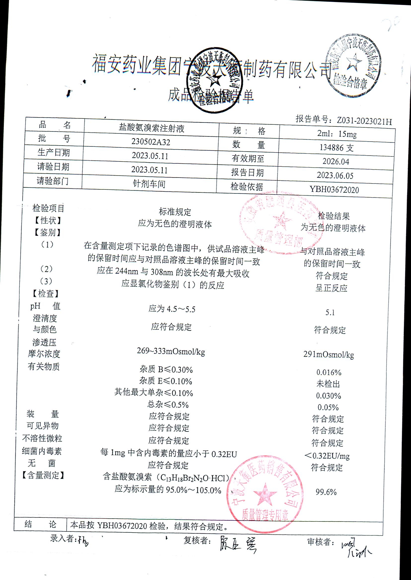 盐酸氨溴索注射液 | 2ml:15mg | 230804A32 | 查看详情 |