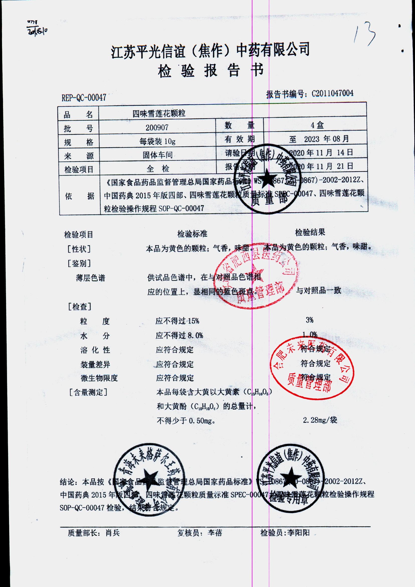 药检报告