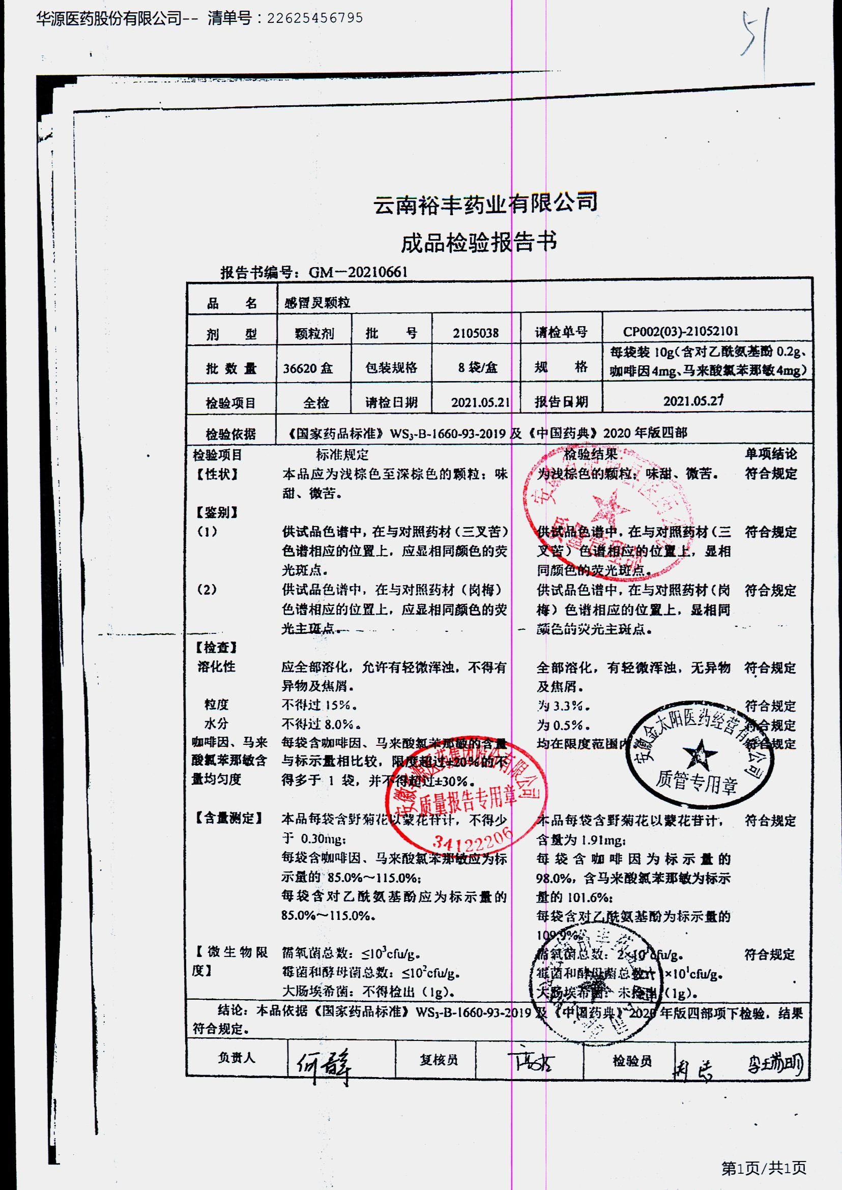 药检报告