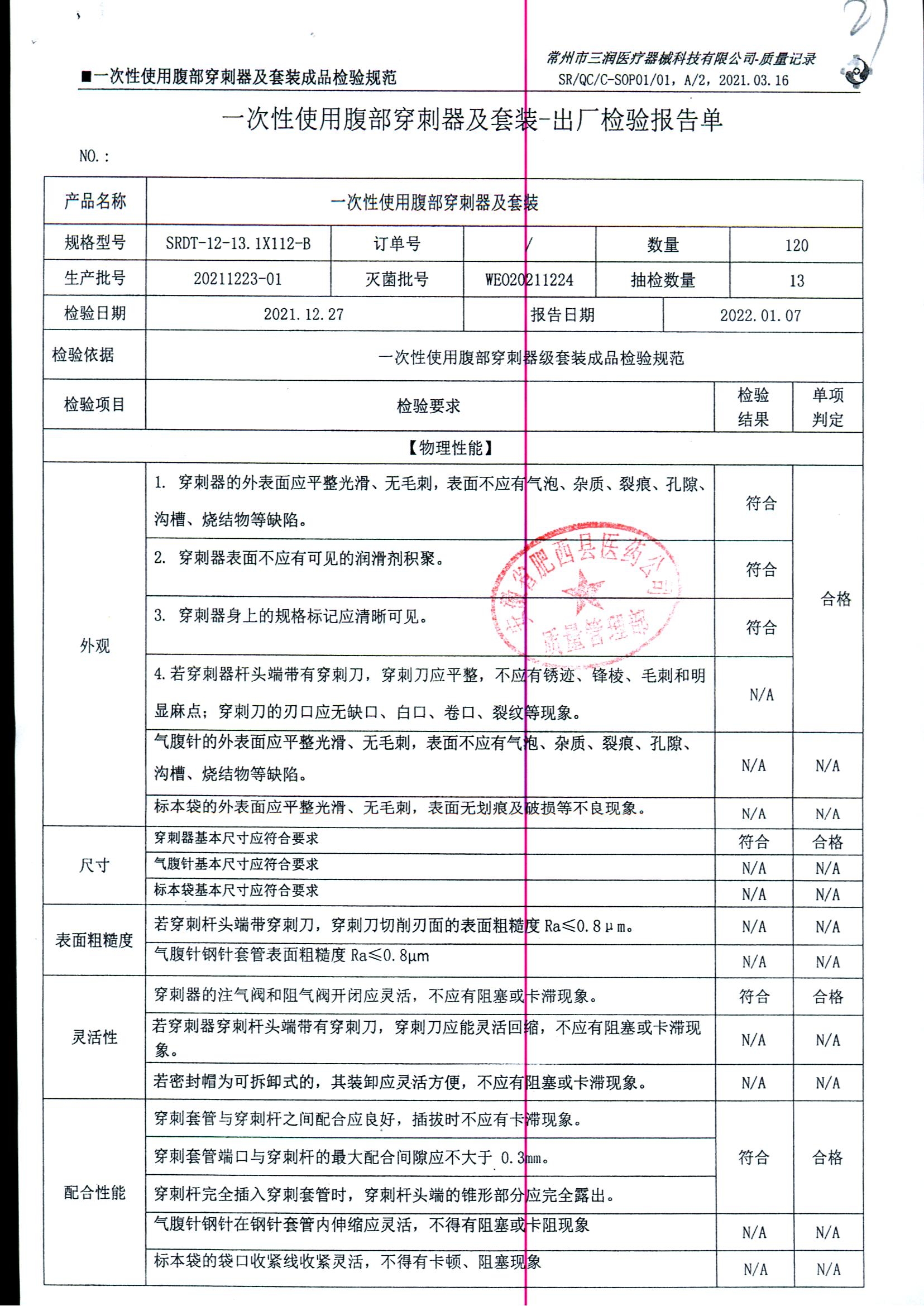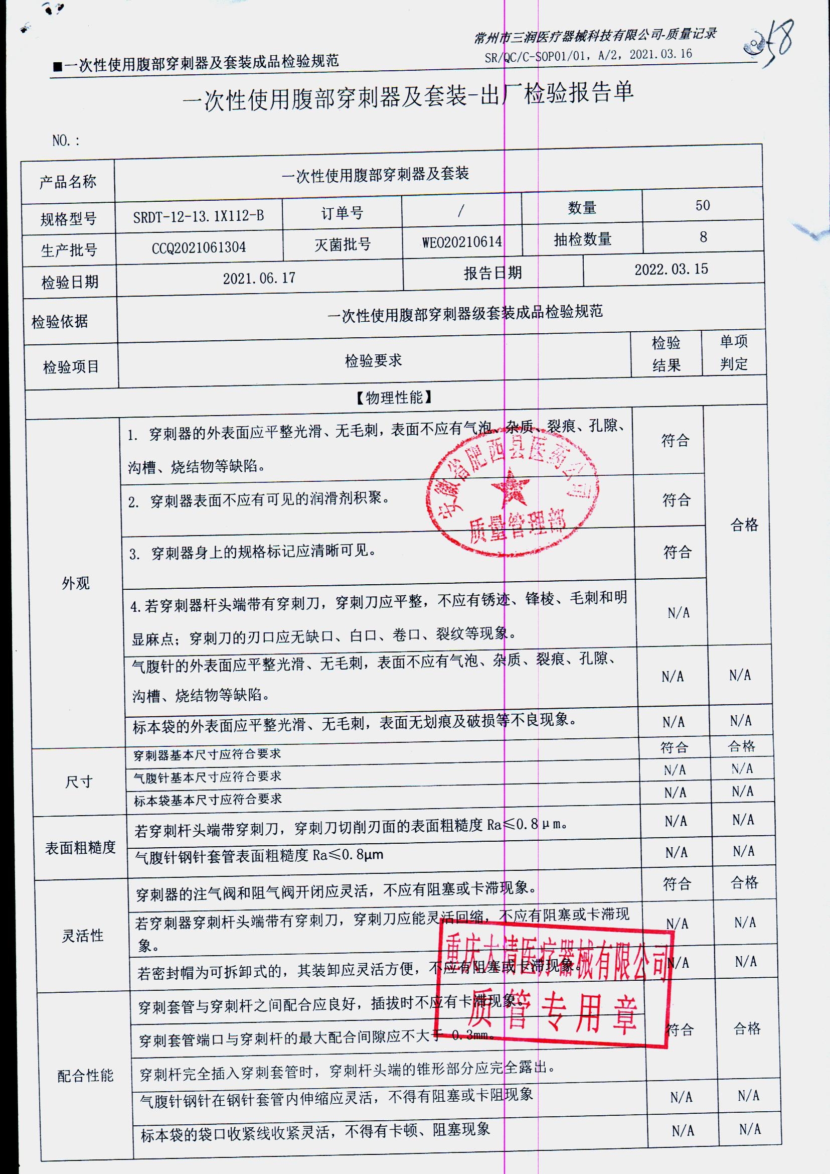 一次性使用腹部穿刺器及套装 | SRDT-12-13.1X112-B | 20211223-01/3 | 查看详情 |