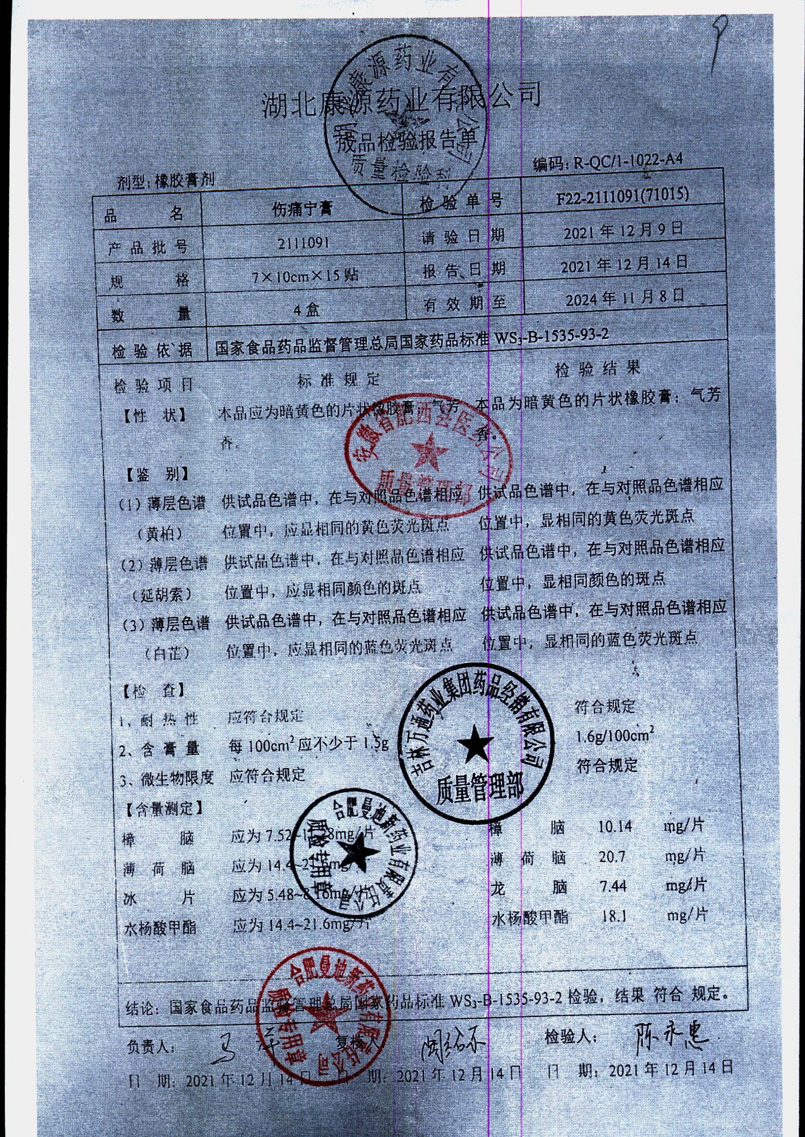 伤痛宁膏 | 7*10cm*15贴 | 2110281 | 查看详情 |