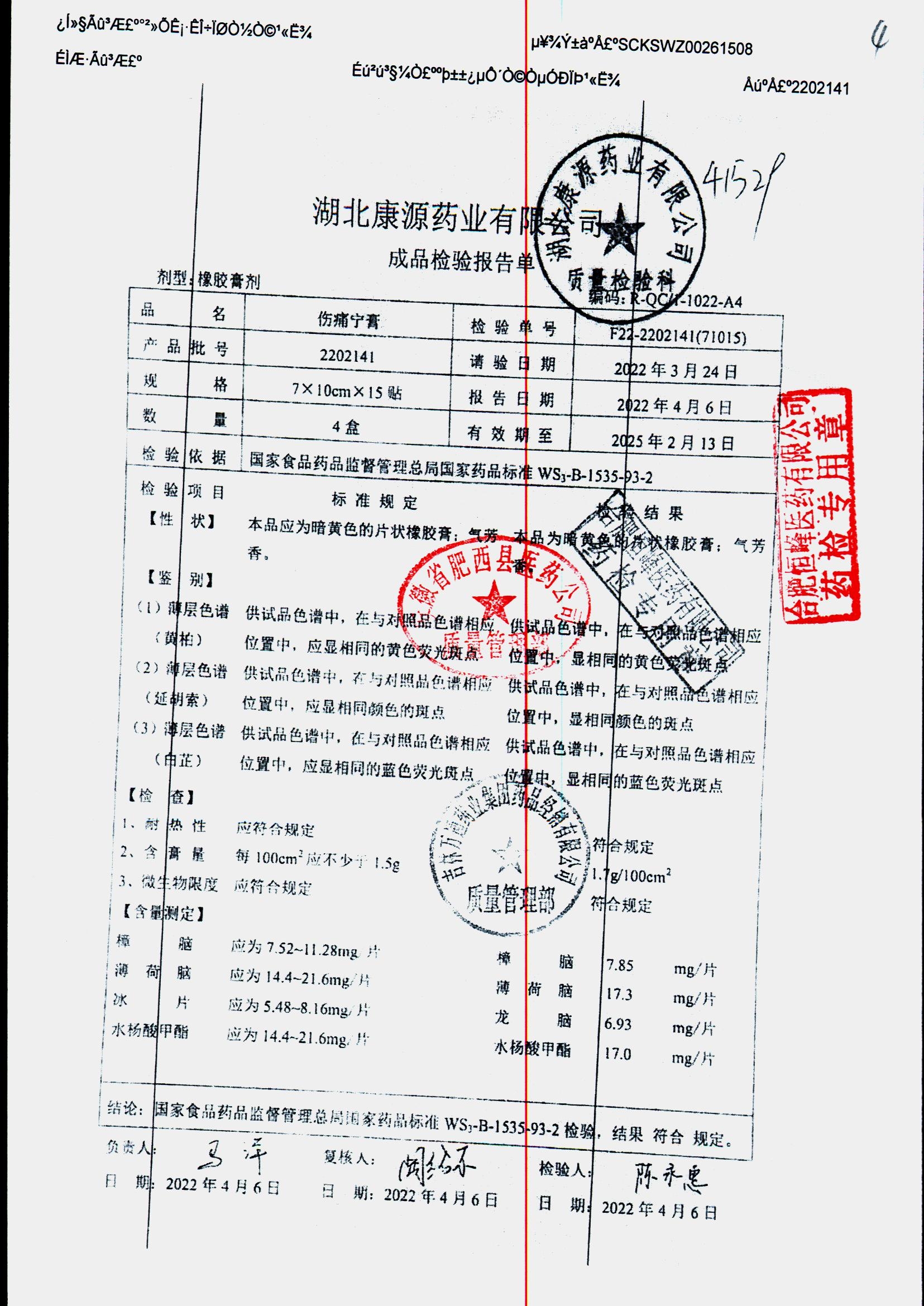 伤痛宁膏 | 7*10cm*15贴 | 2202141 | 查看详情 |