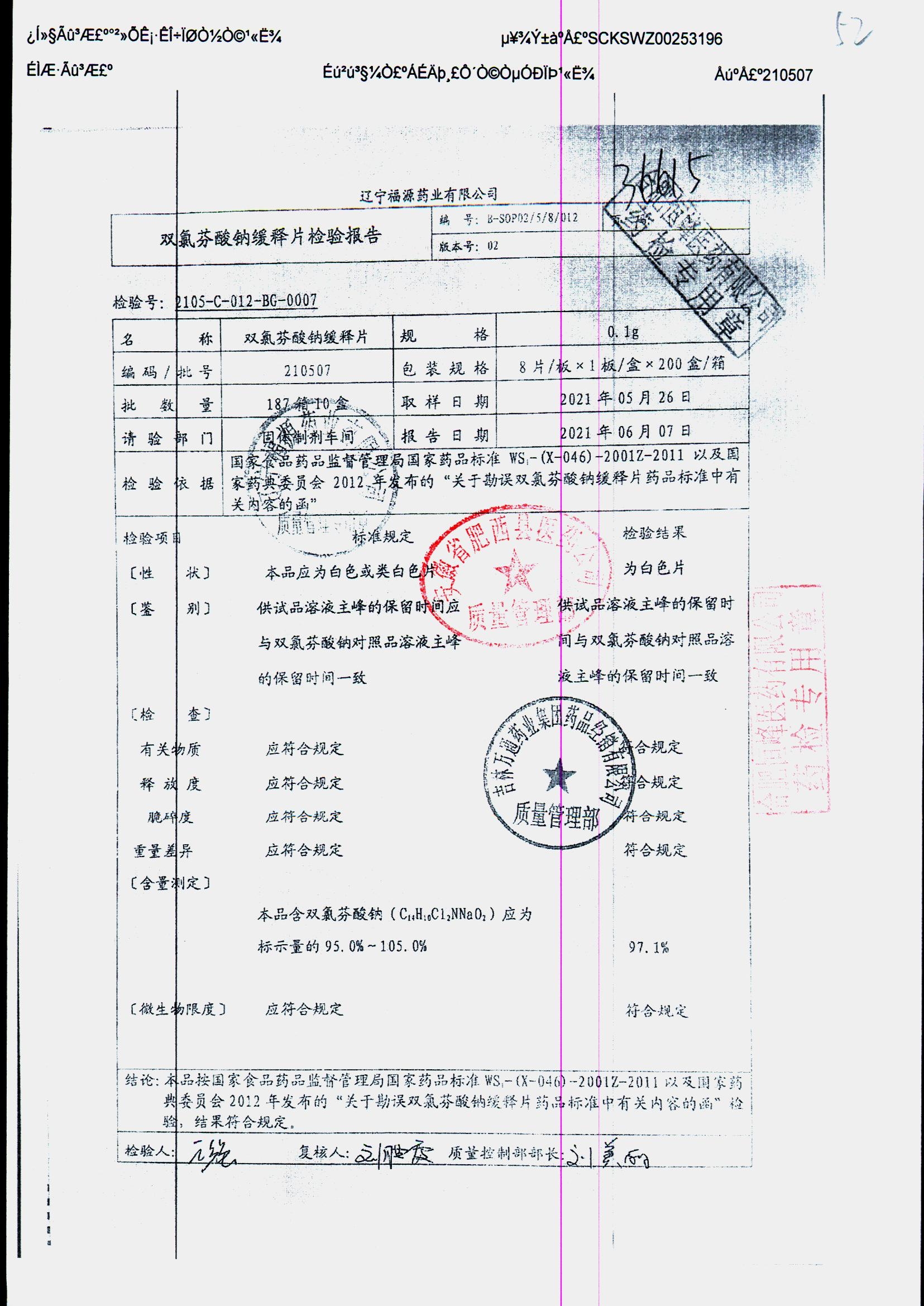 双氯芬酸钠缓释片 | 0.1g*8片 | 210507 | 查看详情 |