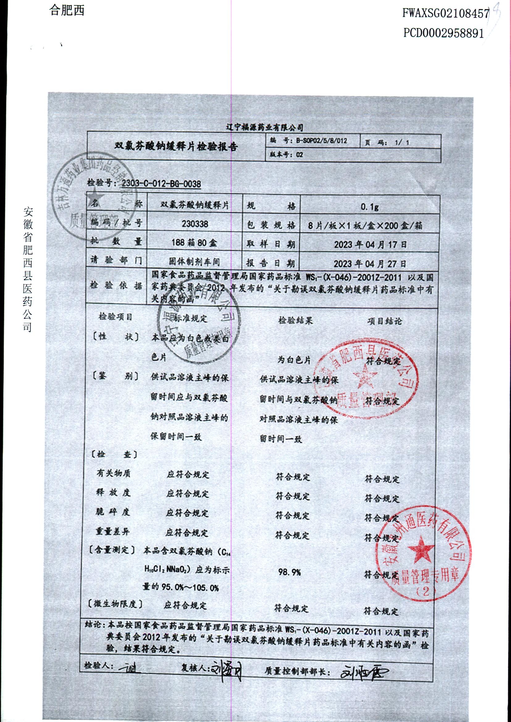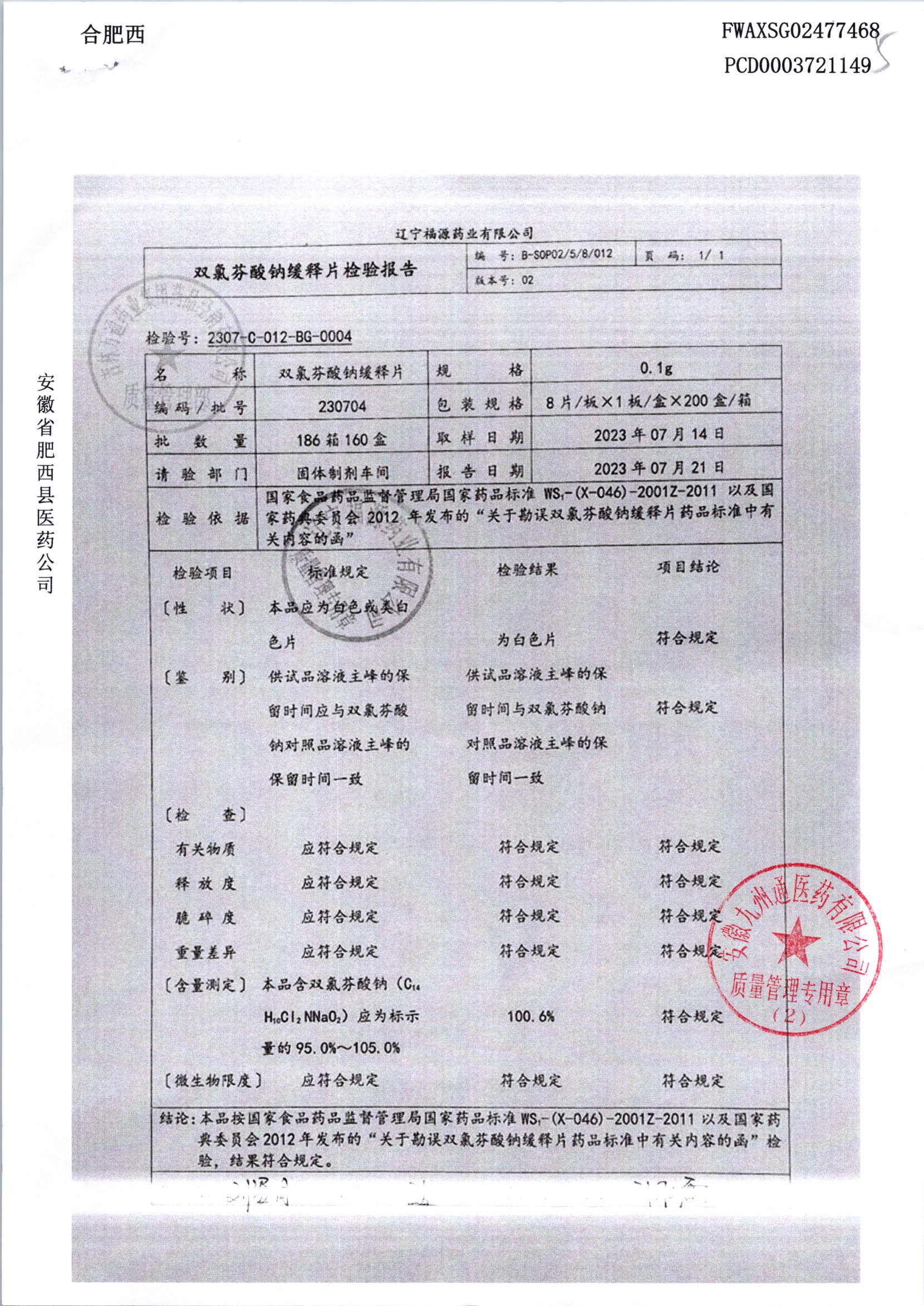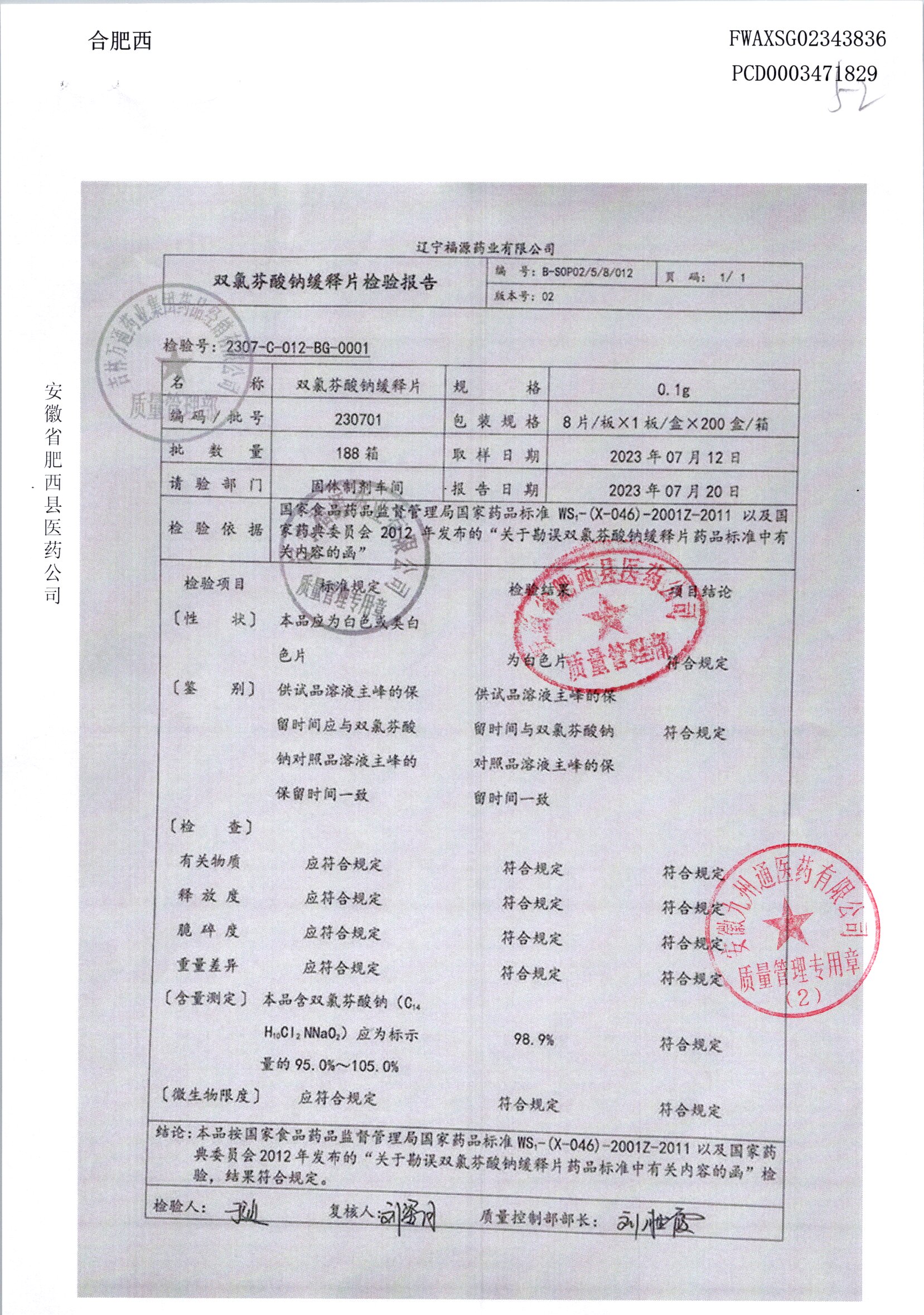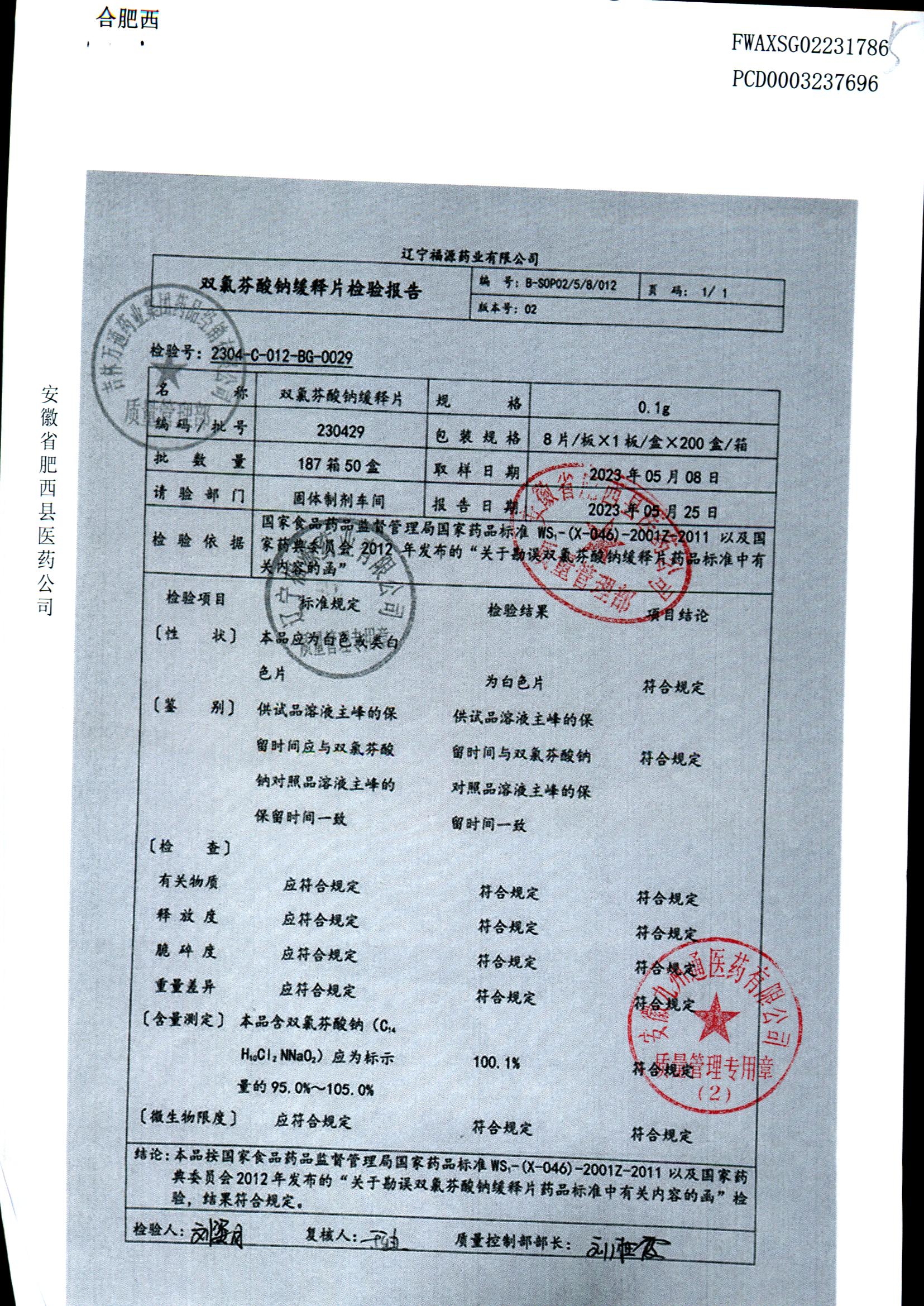 双氯芬酸钠缓释片 | 0.1g*8片 | 230429 | 查看详情 |