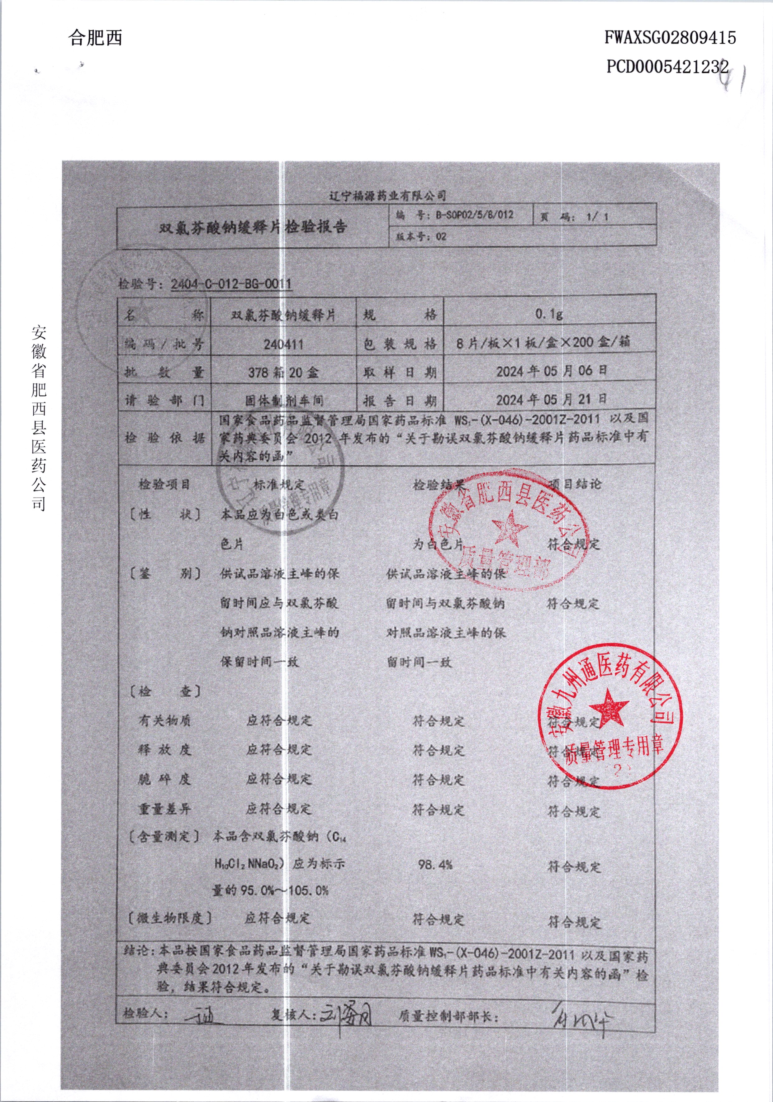 双氯芬酸钠缓释片 | 0.1g*8片 | 240411 | 查看详情 |
