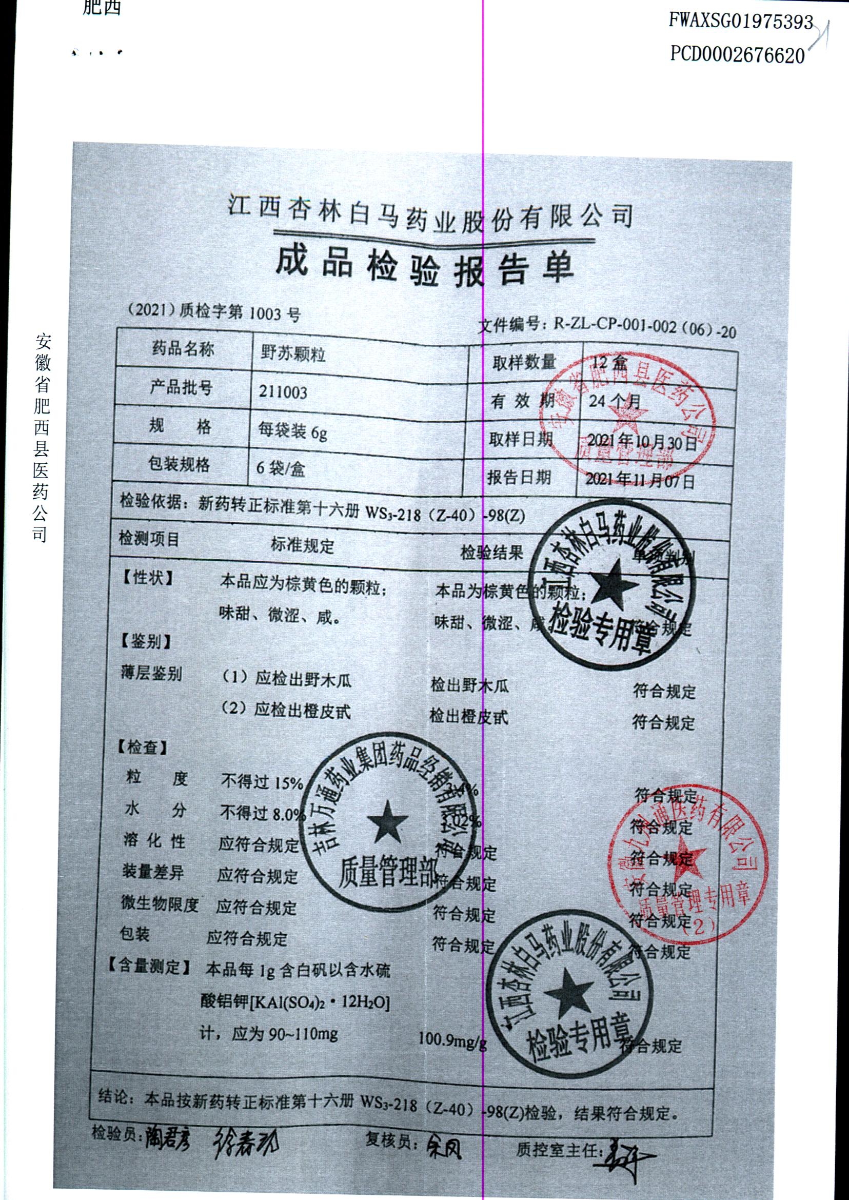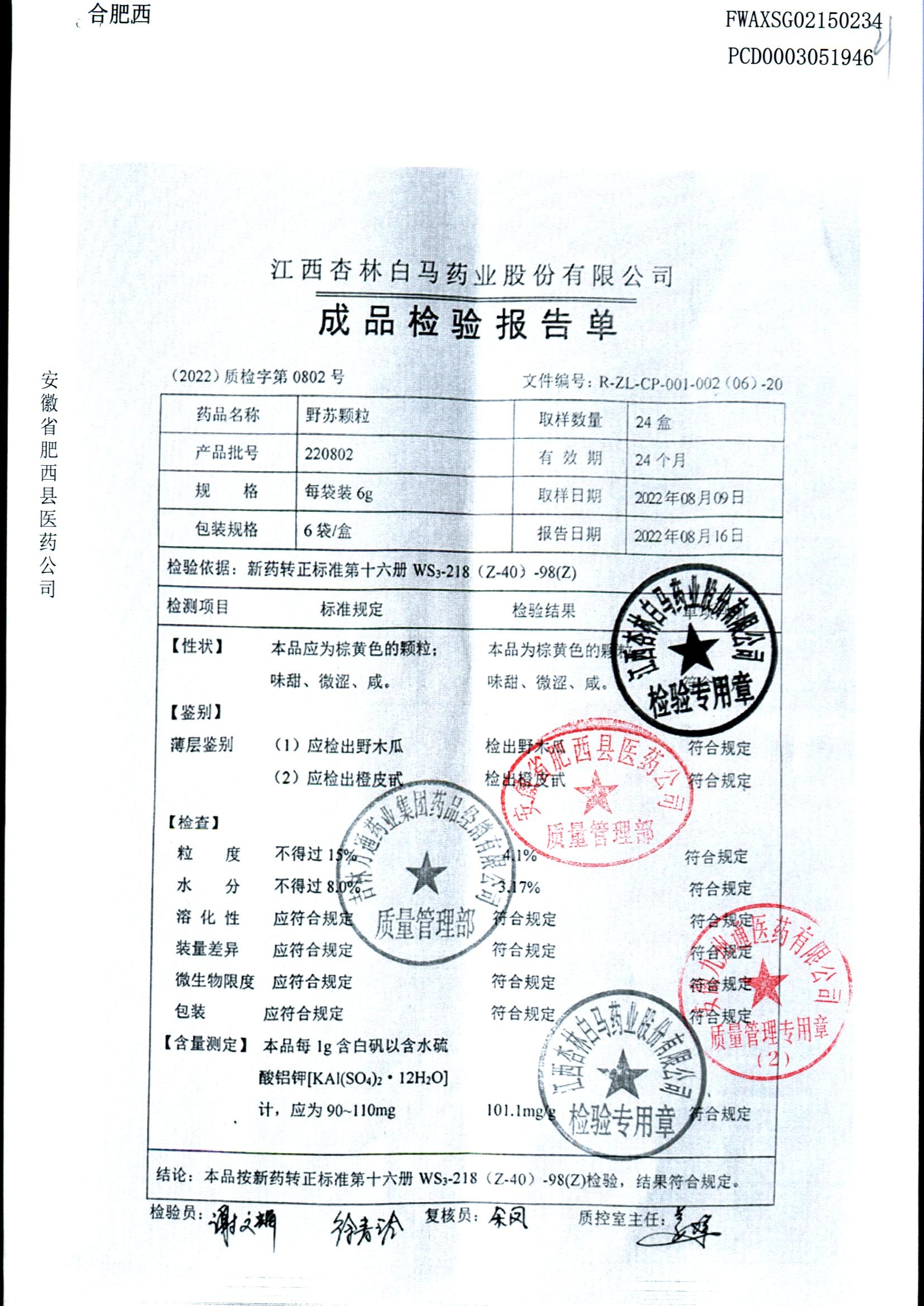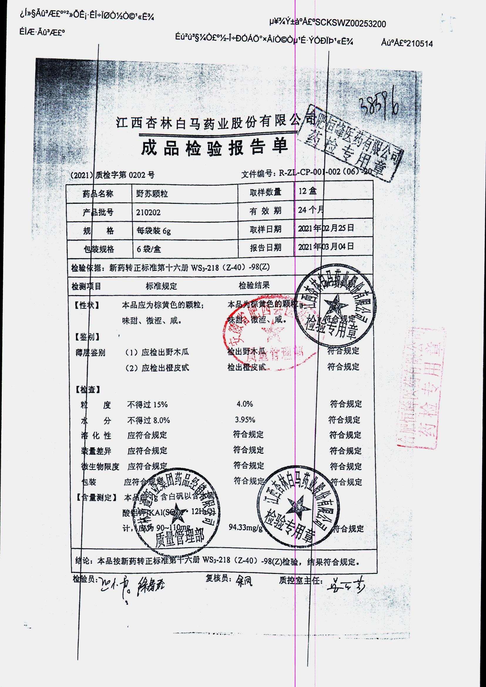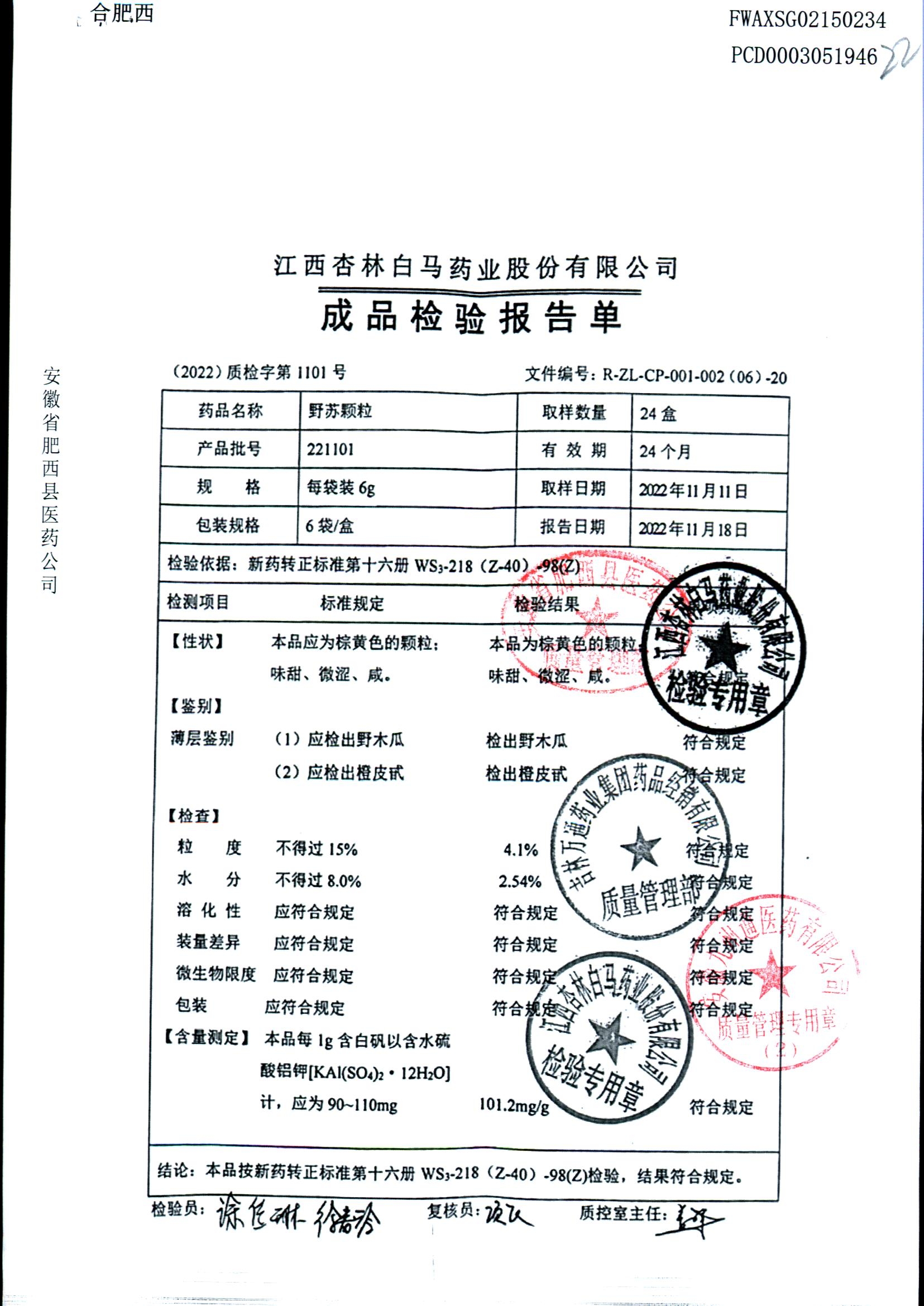 野苏颗粒 | 6g*6袋 | 220802 | 查看详情 |