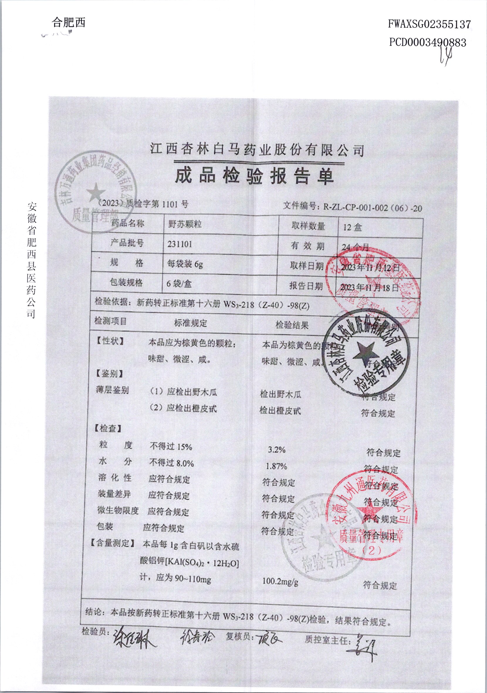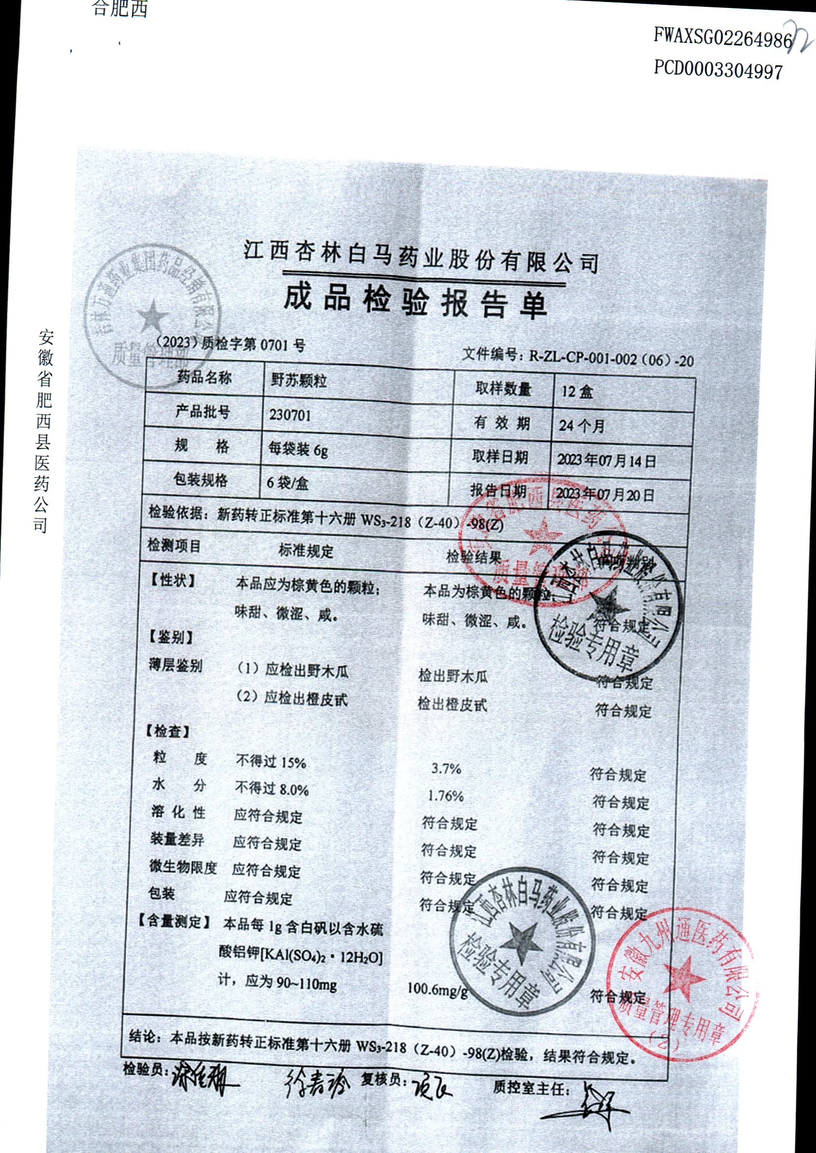 野苏颗粒 | 6g*6袋 | 230701 | 查看详情 |