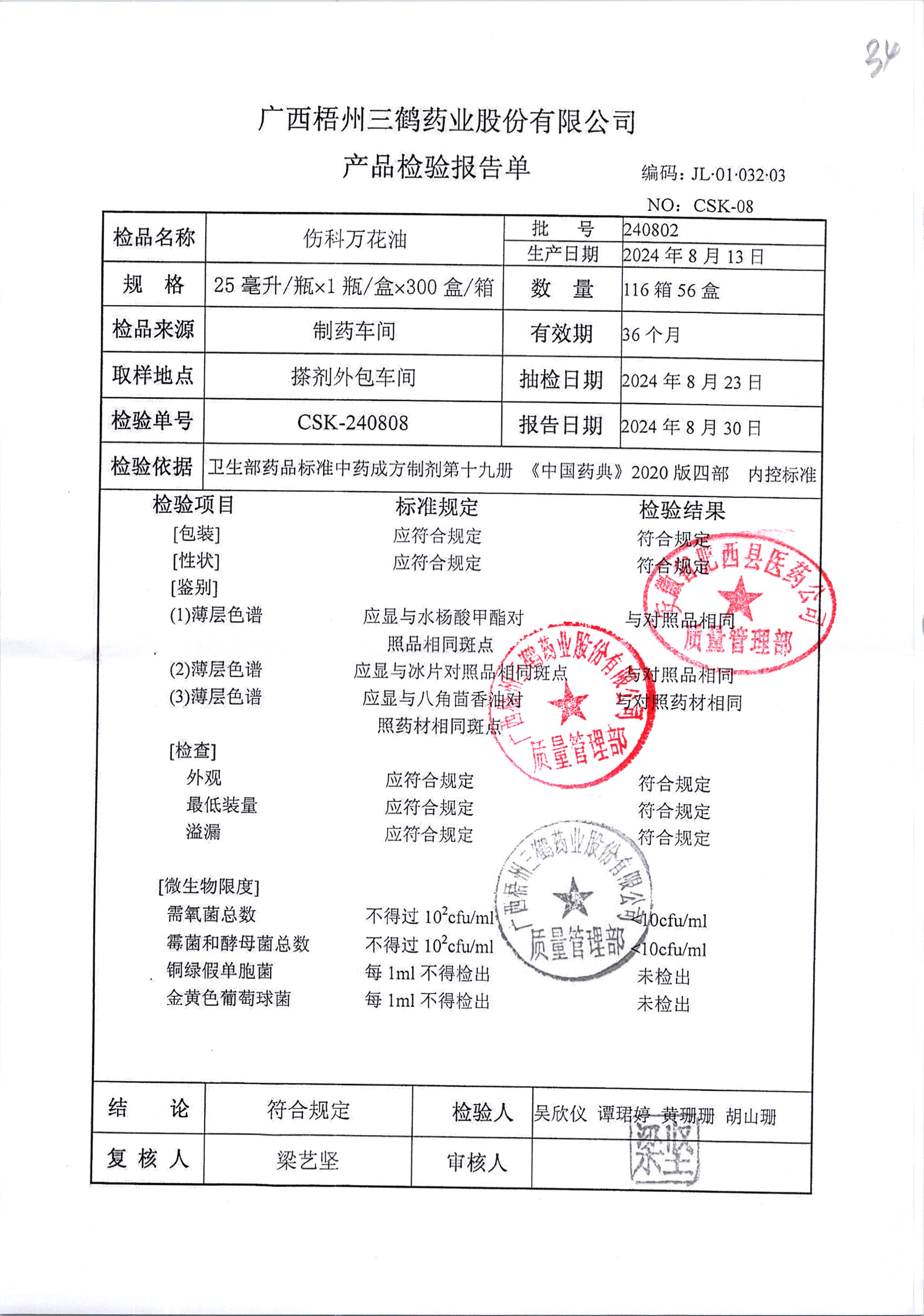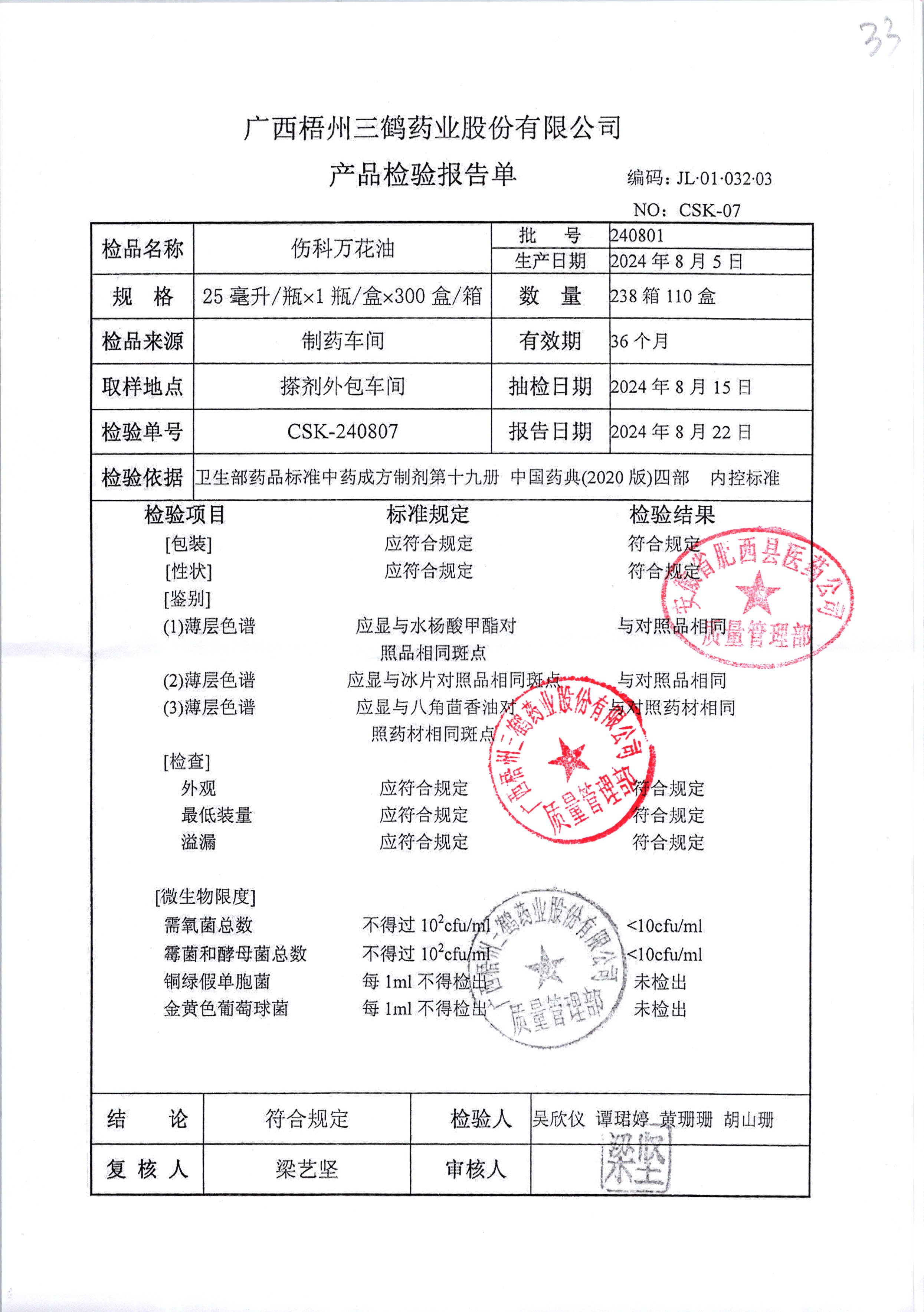 伤科万花油 | 25ml | 240802 | 查看详情 |